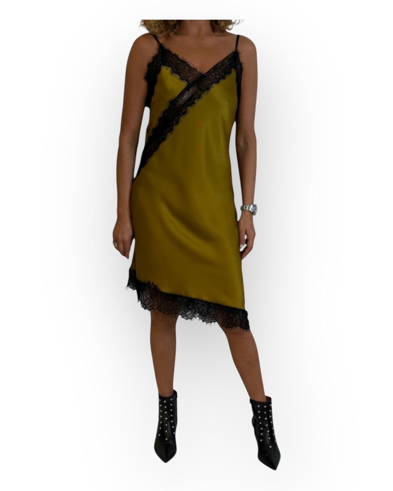 ABITO ASSIMETRICO TENSIONE IN CON BORDO IN PIZZO