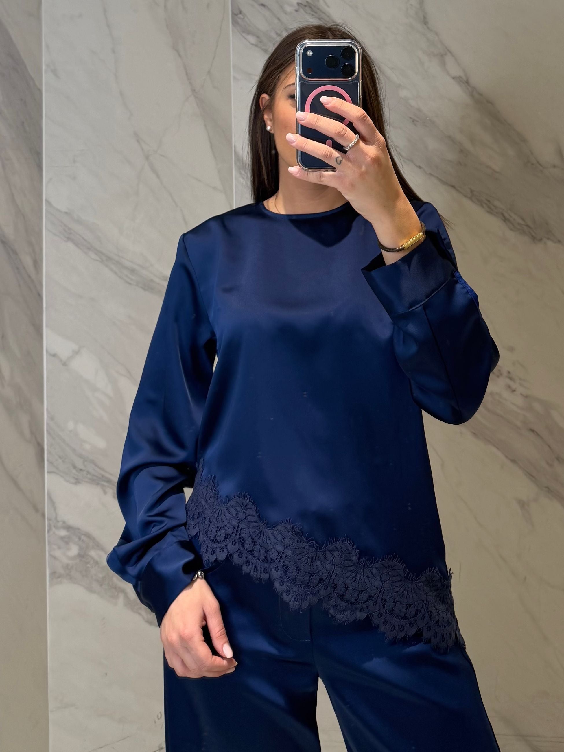 BLUSA CON PIZZO TRASVERSALE.
