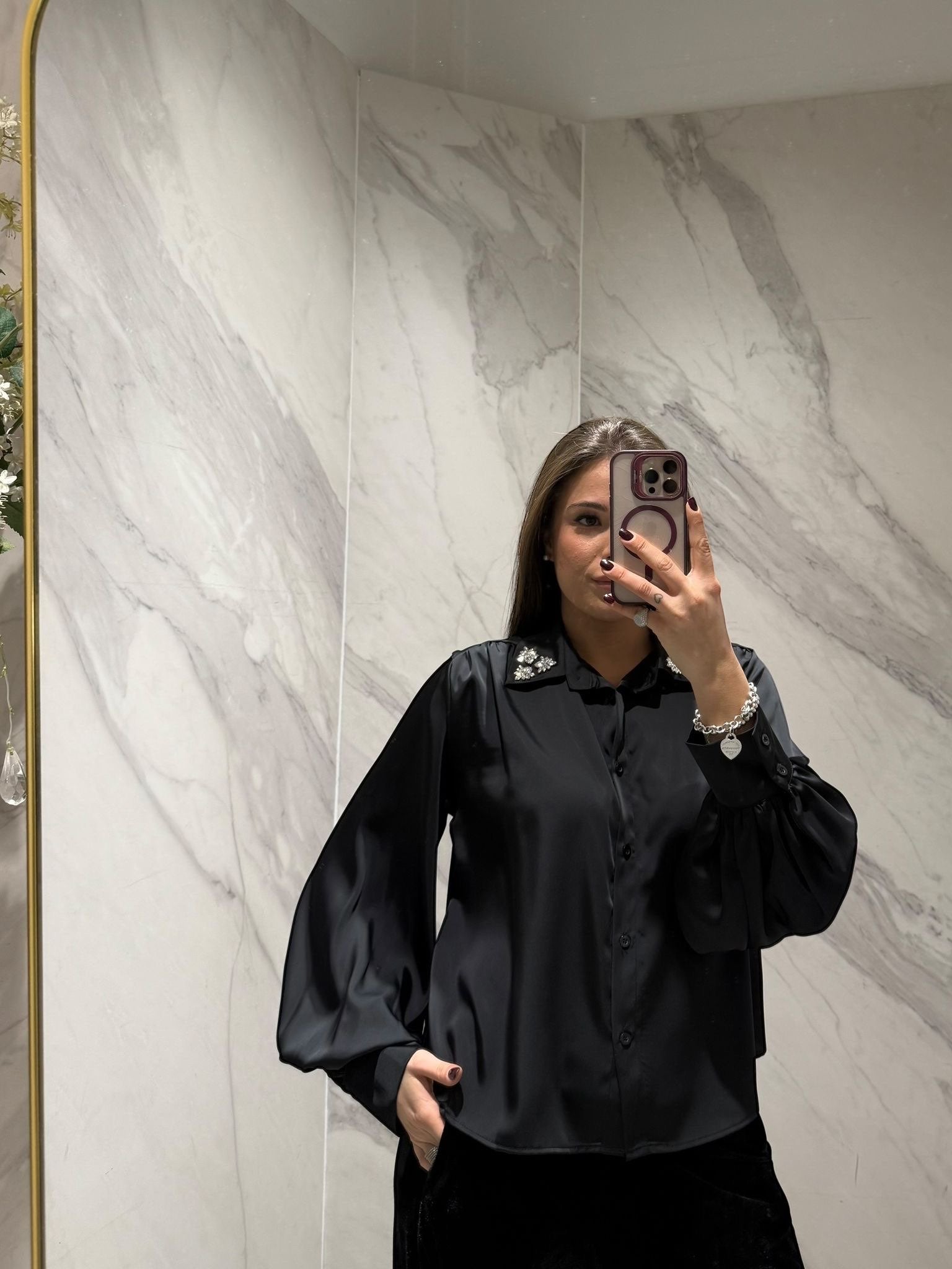 CAMICIA LE STREGHE CON CABUCON SUL COLLETTO E MANICA A PALLONCINO