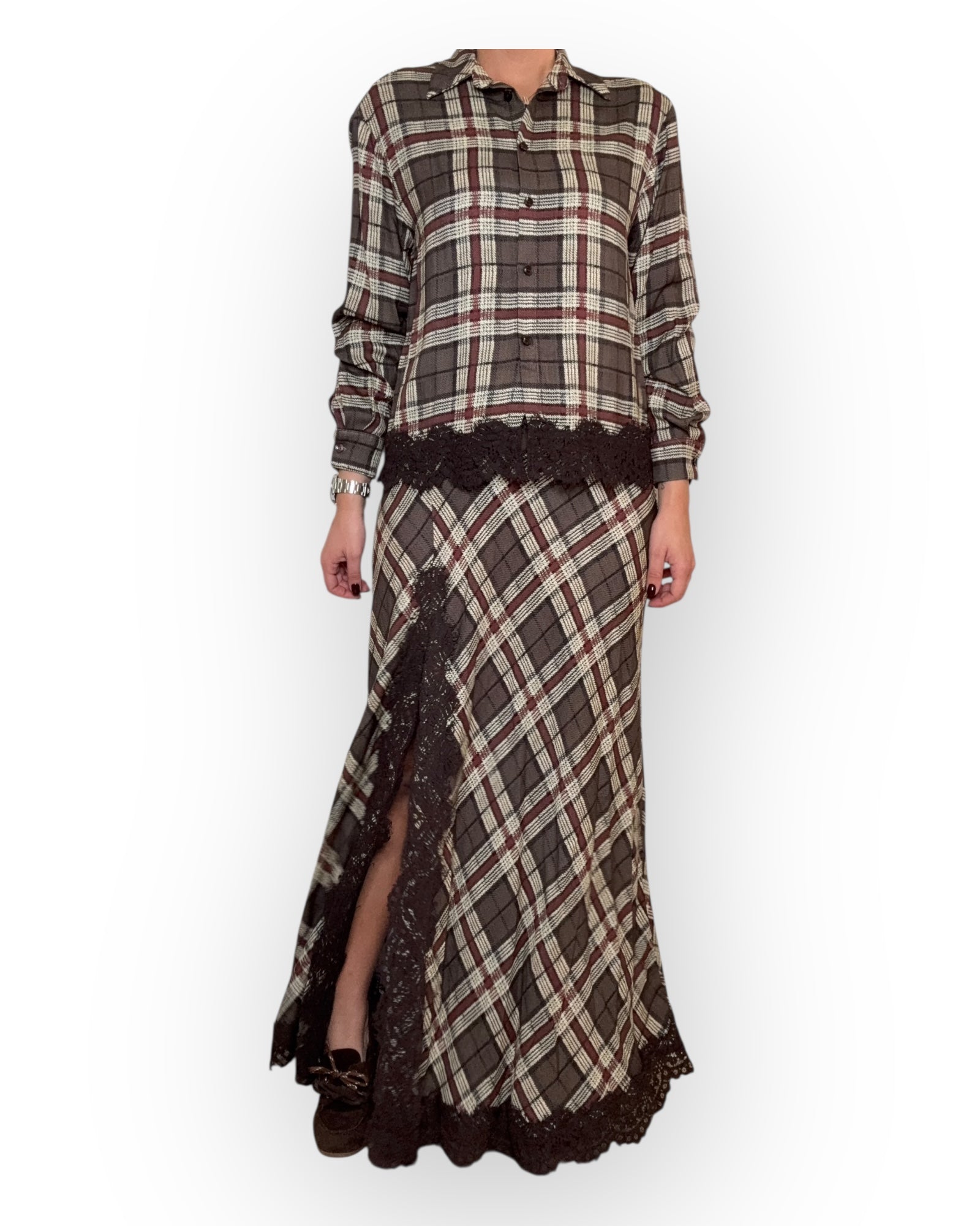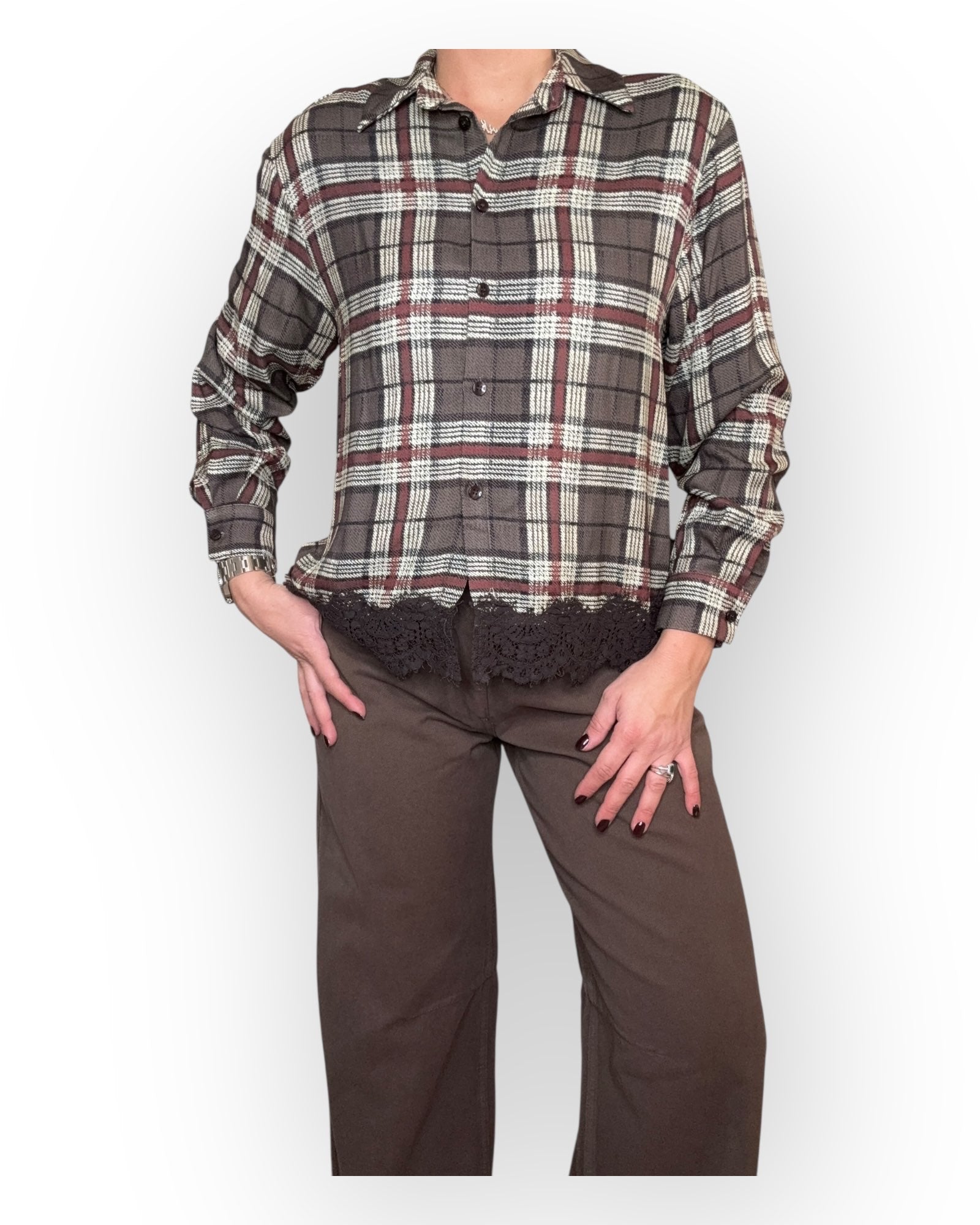 CAMICIA CROP OVER HAVE ONE A FANTASIA CHECK CON PIZZO IN FONDO