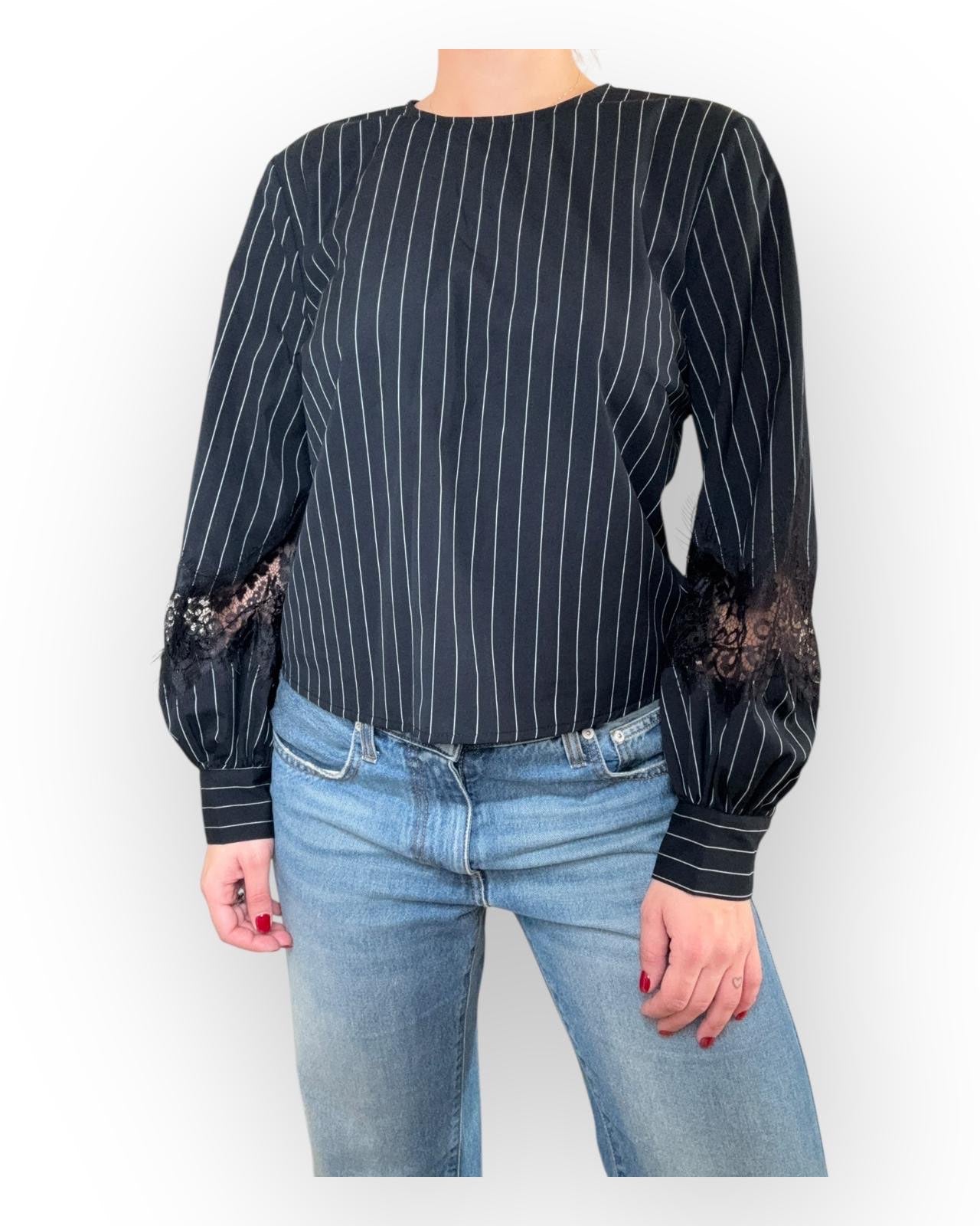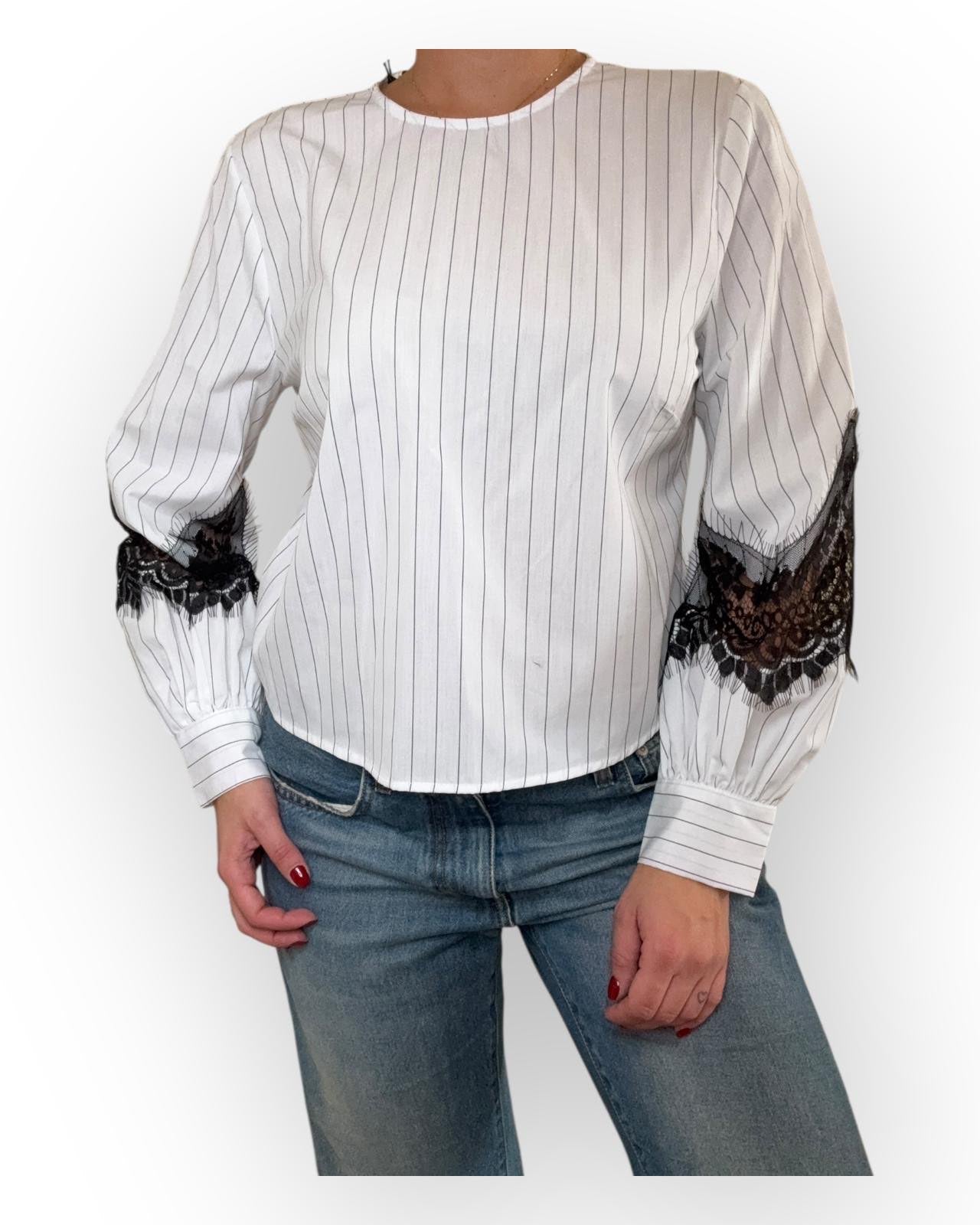 CAMICIA GESSATA CON DETTAGLIO IN PIZZO SULLA MANICA. COMPOSIZIONE: 60% COTONE 40% POLIESTERE