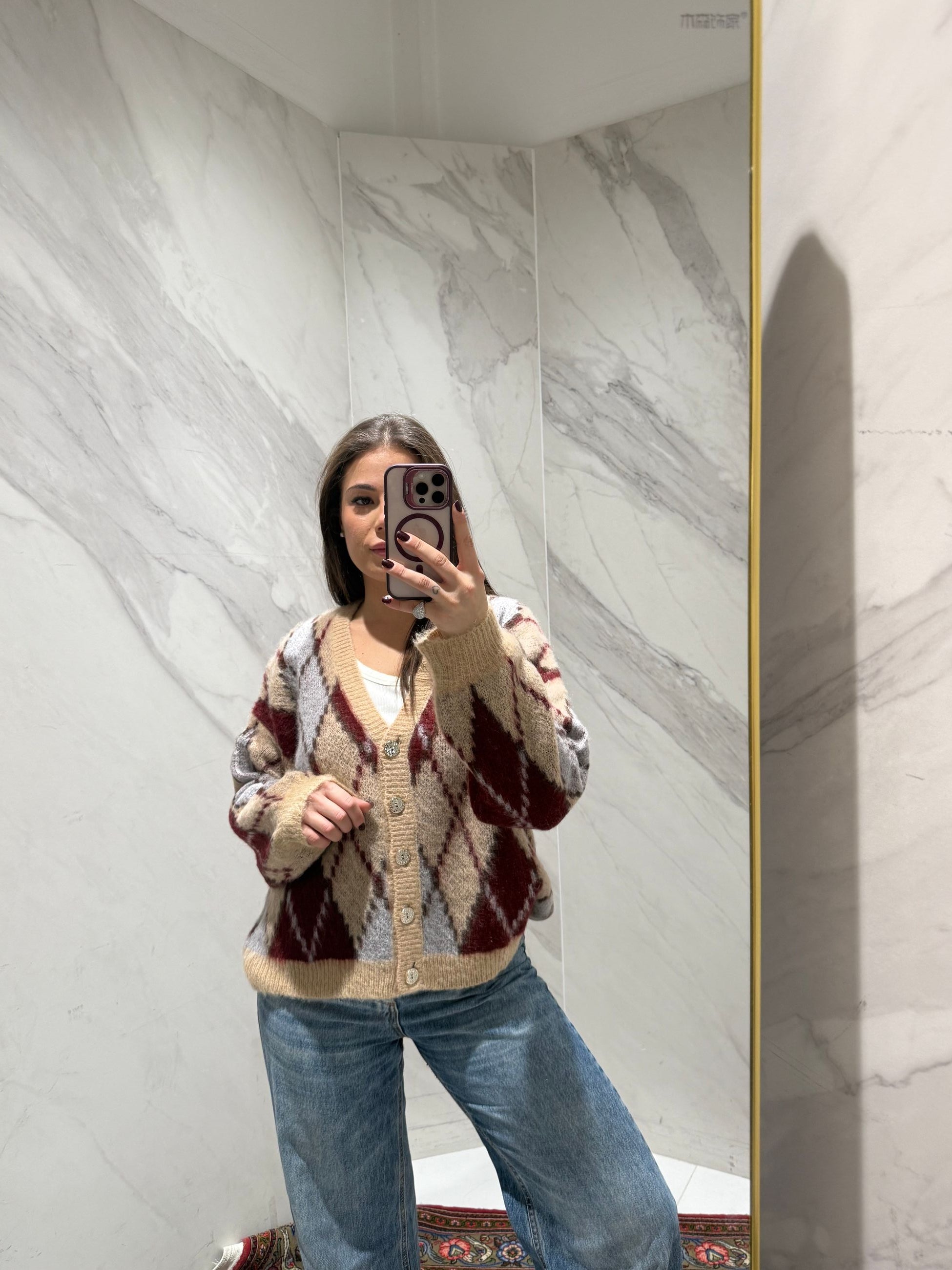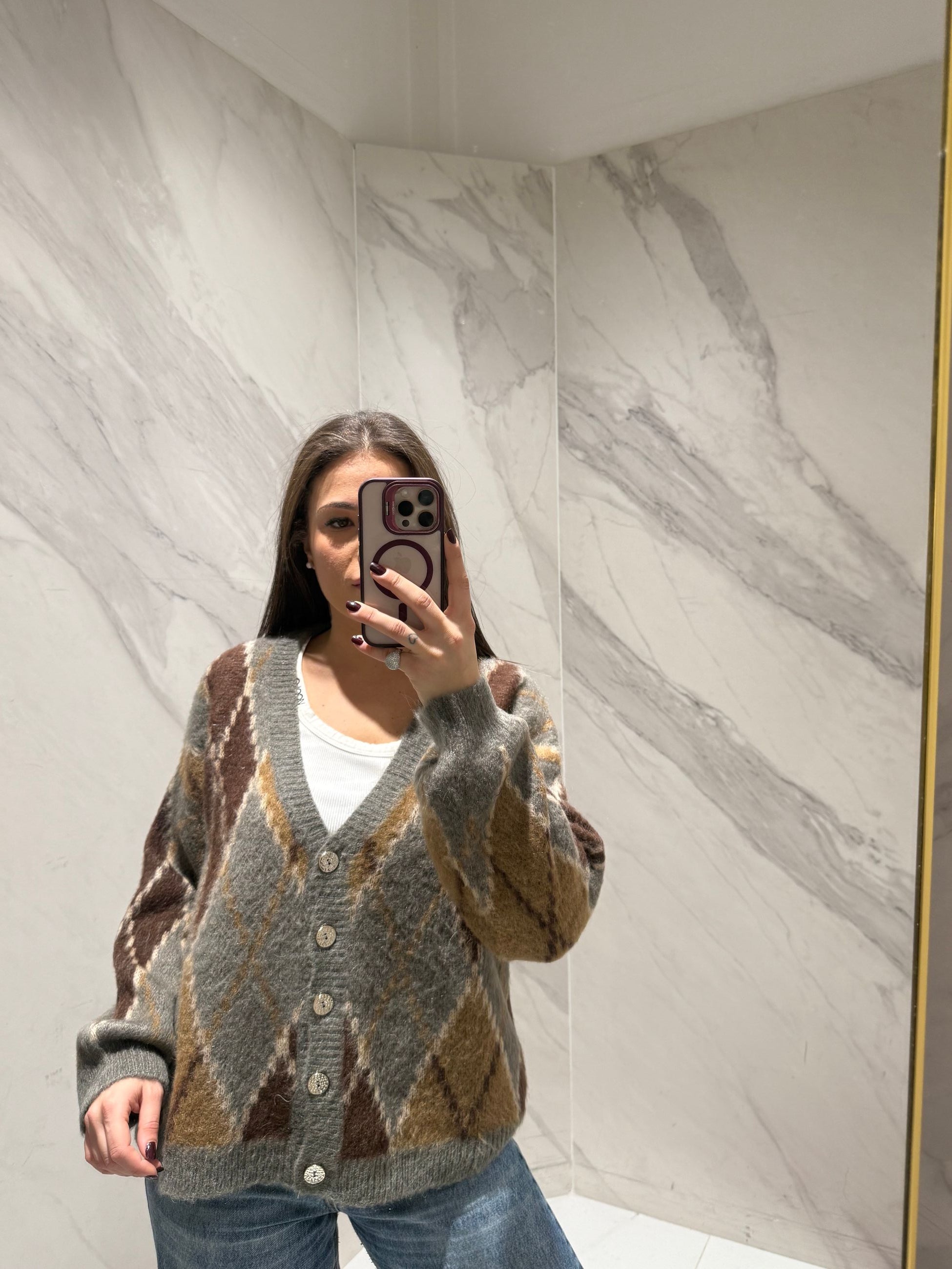 CARDIGAN ROMBI CON BOTTONE MARTELLATO