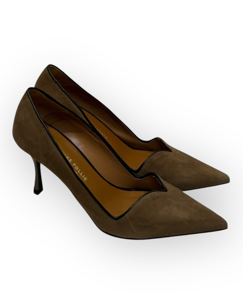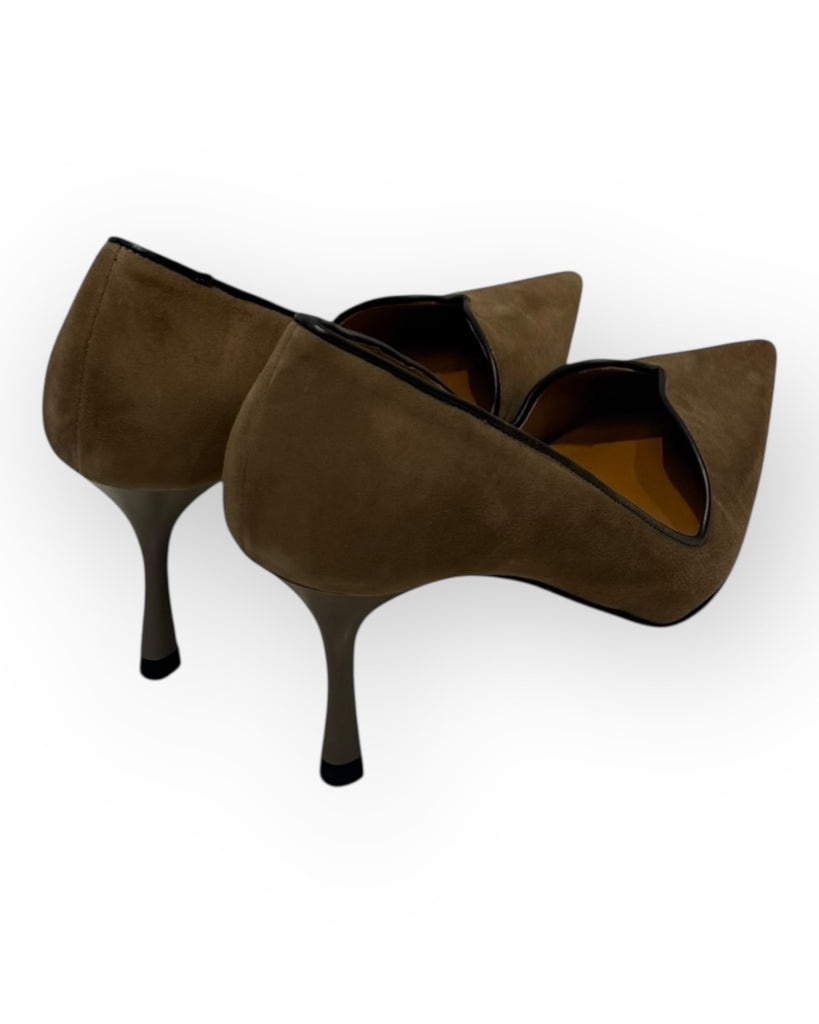 TACCO IN CAMOSCIO, CON RIPORTI IN VERA PELLE, ALTEZZA TACCO 7,0cm