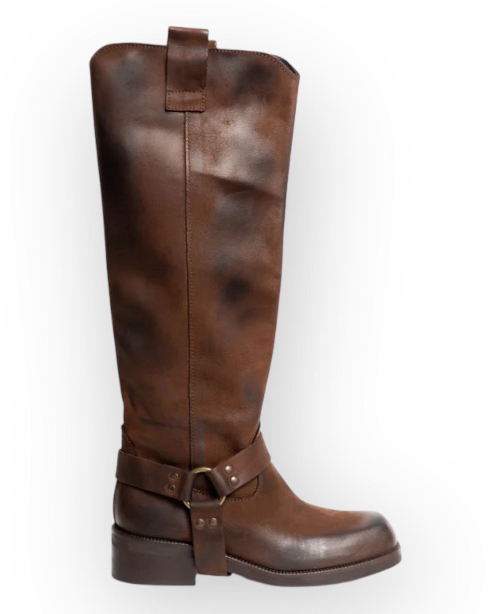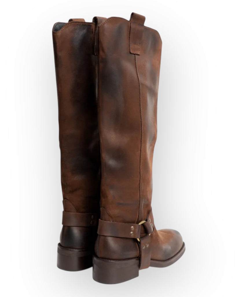 STIVALI BIKER IN NABUK MORO CON STAFFA