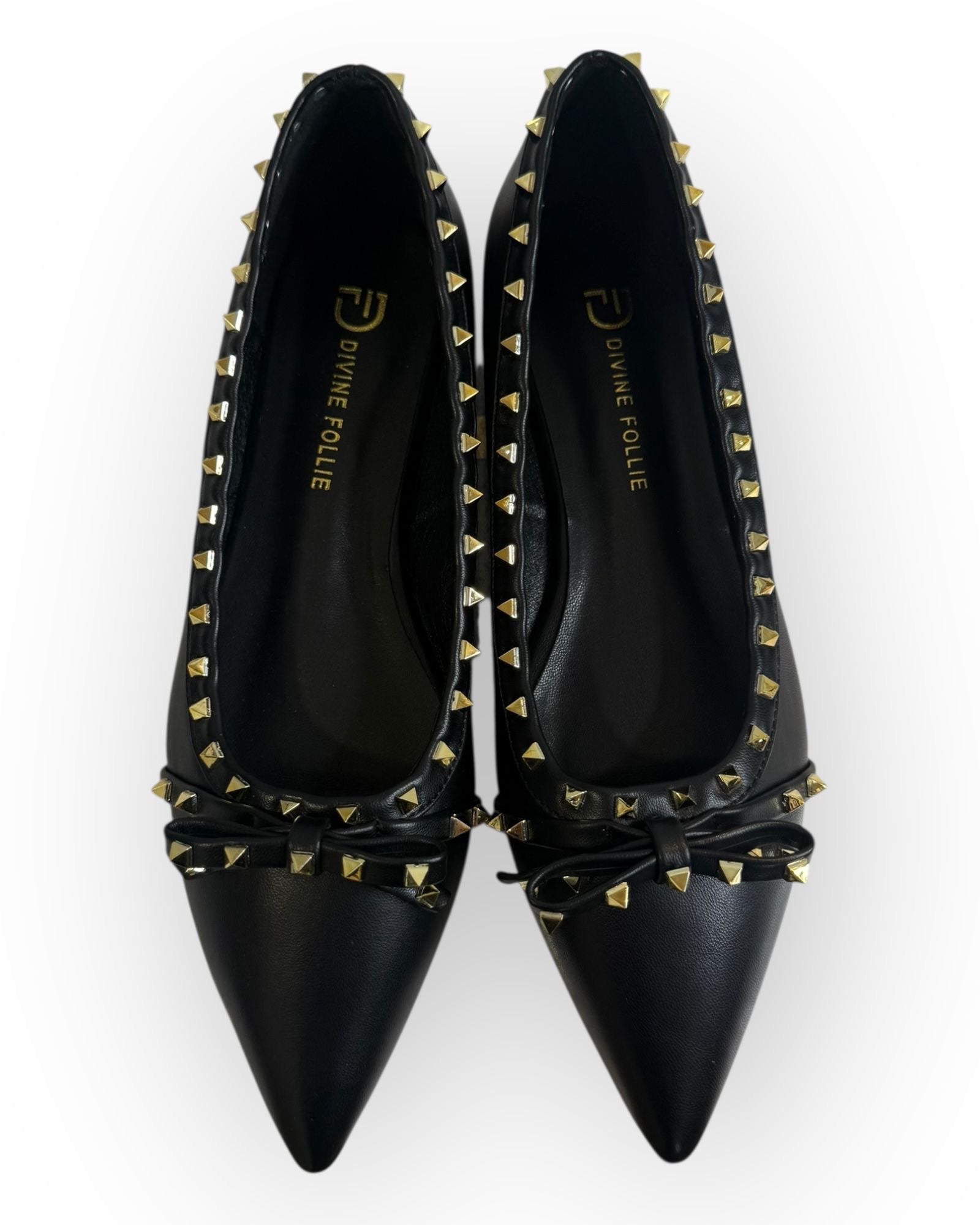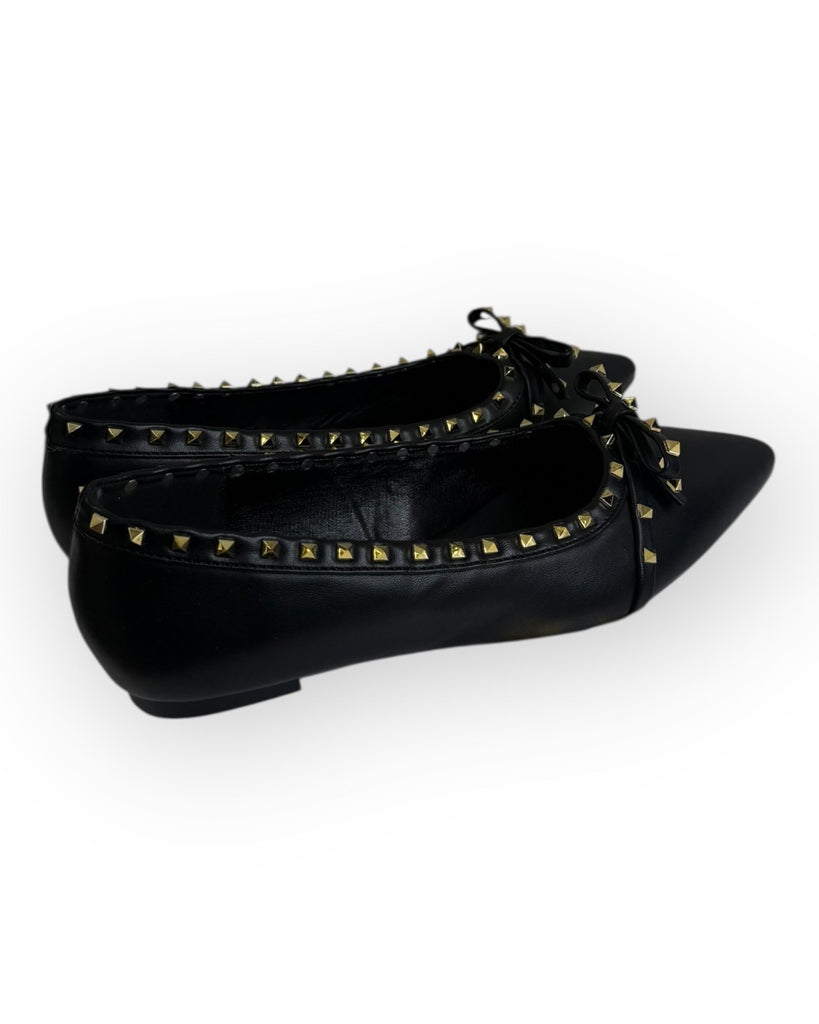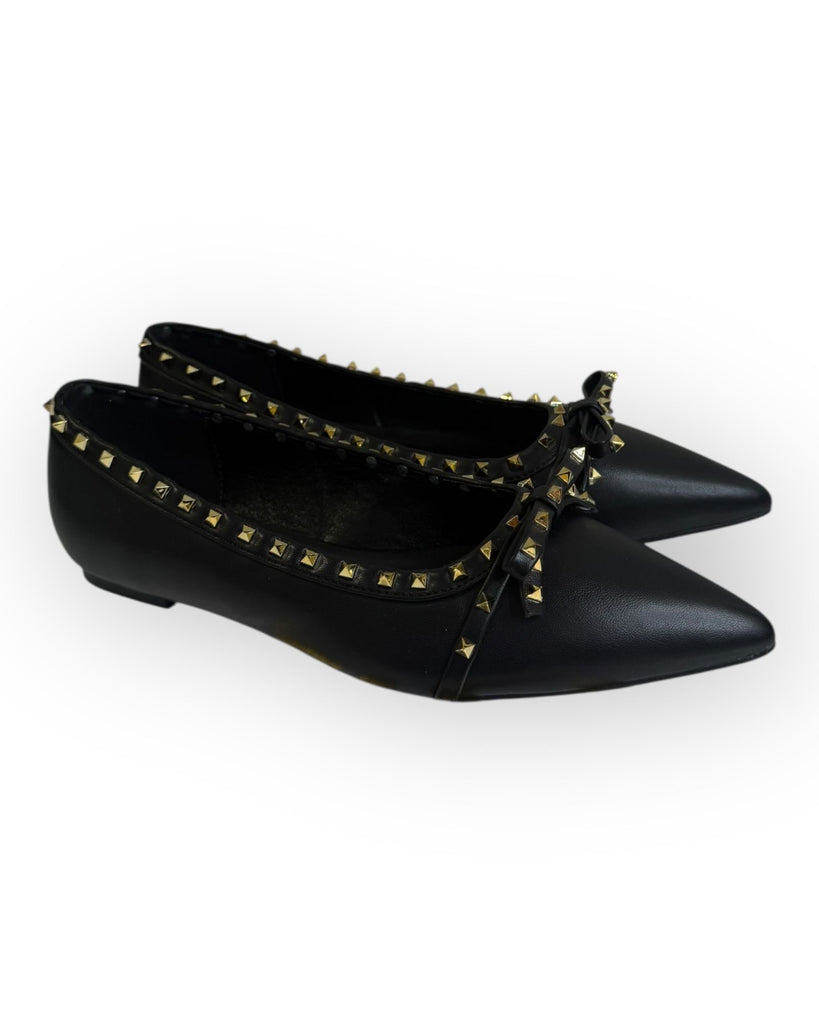 BALLERINA A PUNTA CON FIOCCO E BORCHIE DORATE.