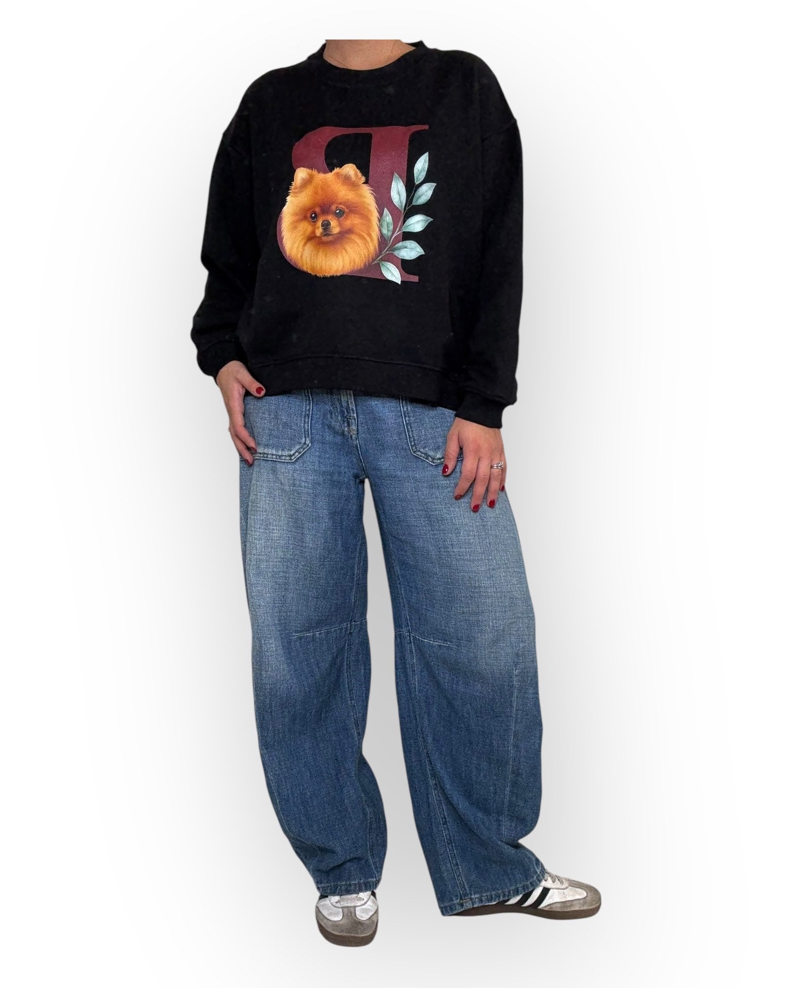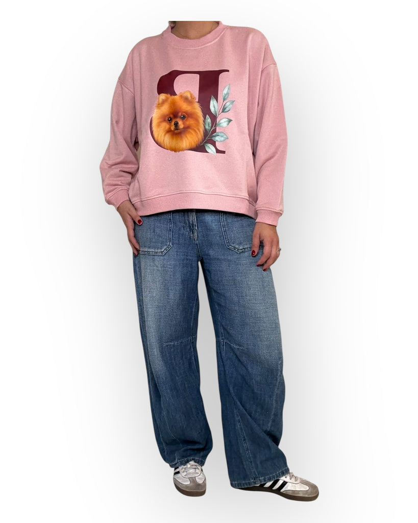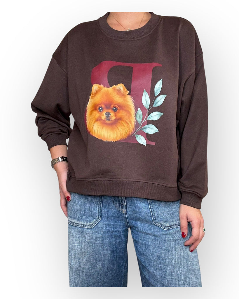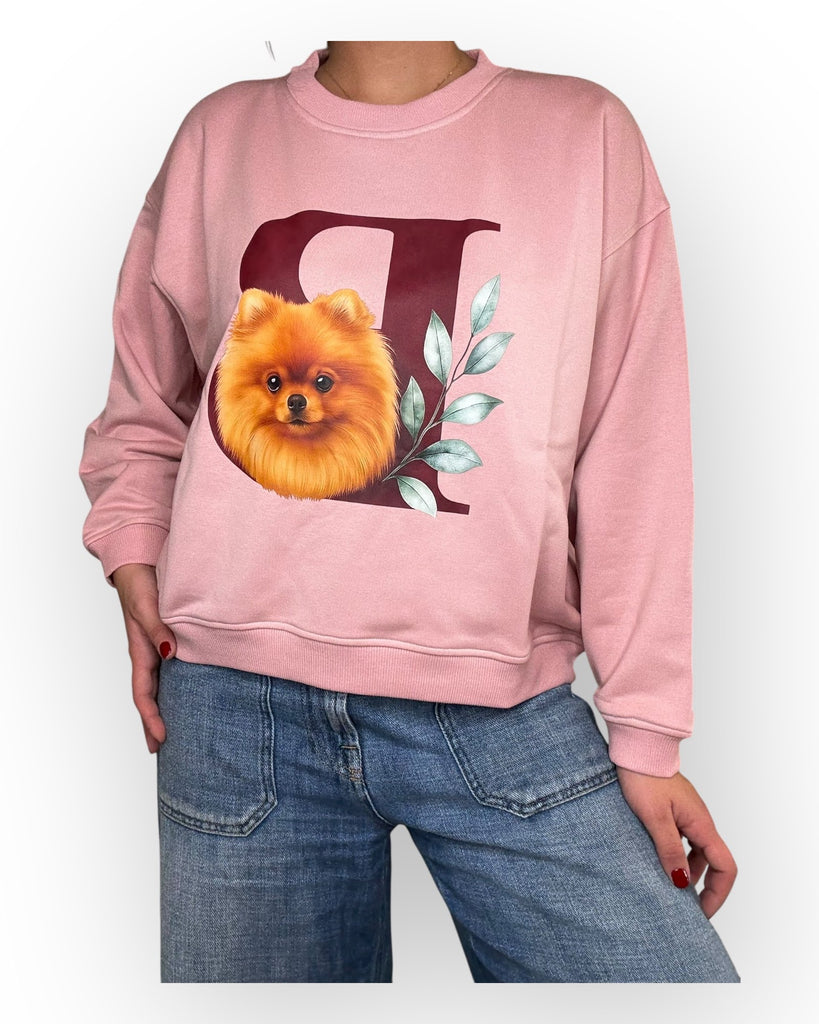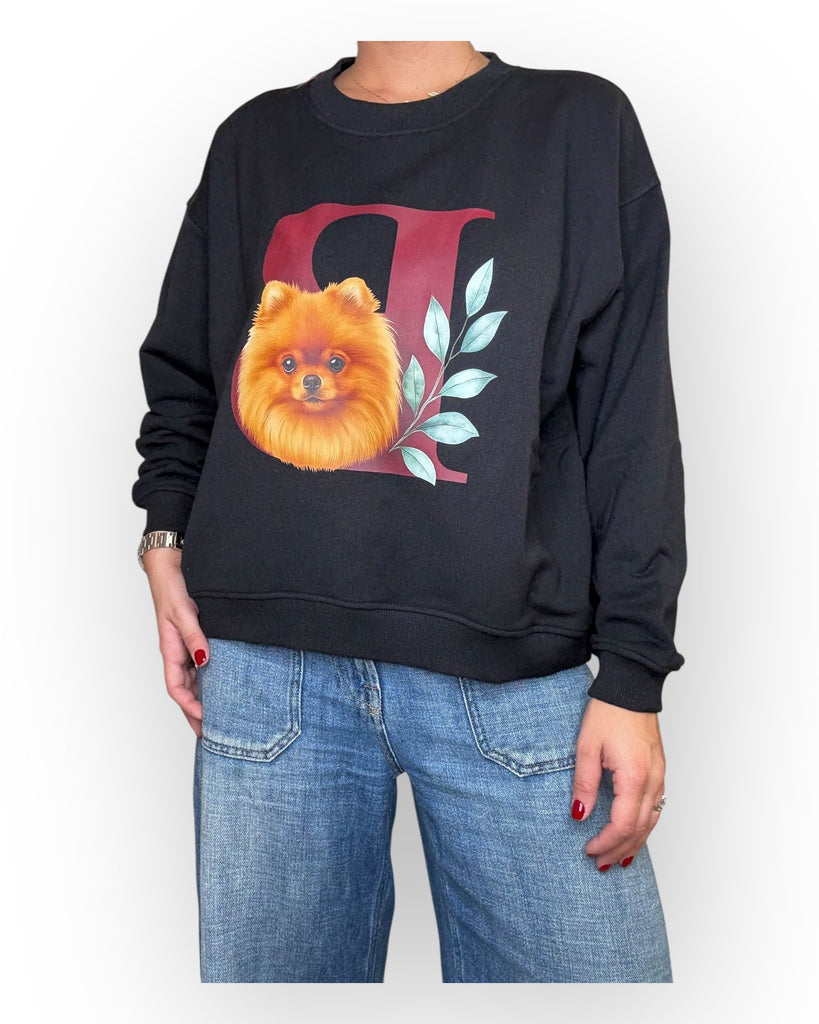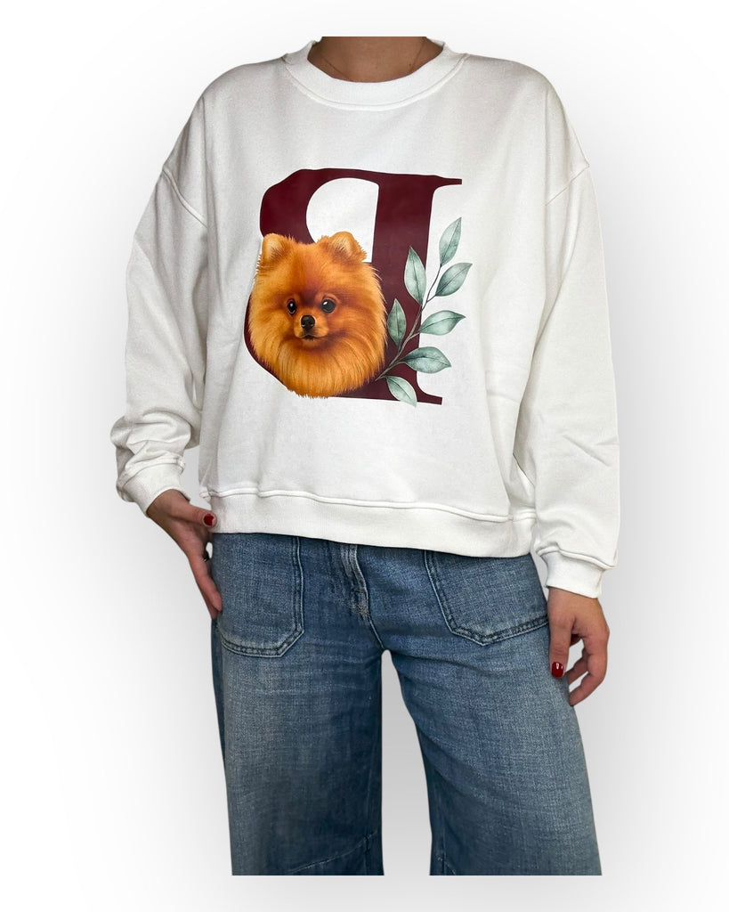 FELPA CON STAMPA DI SPITZ DI POMERANIA CON LETTERA B.