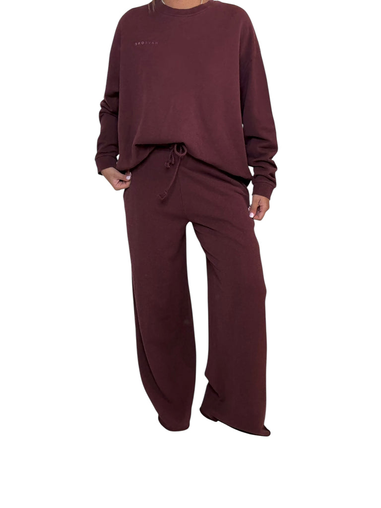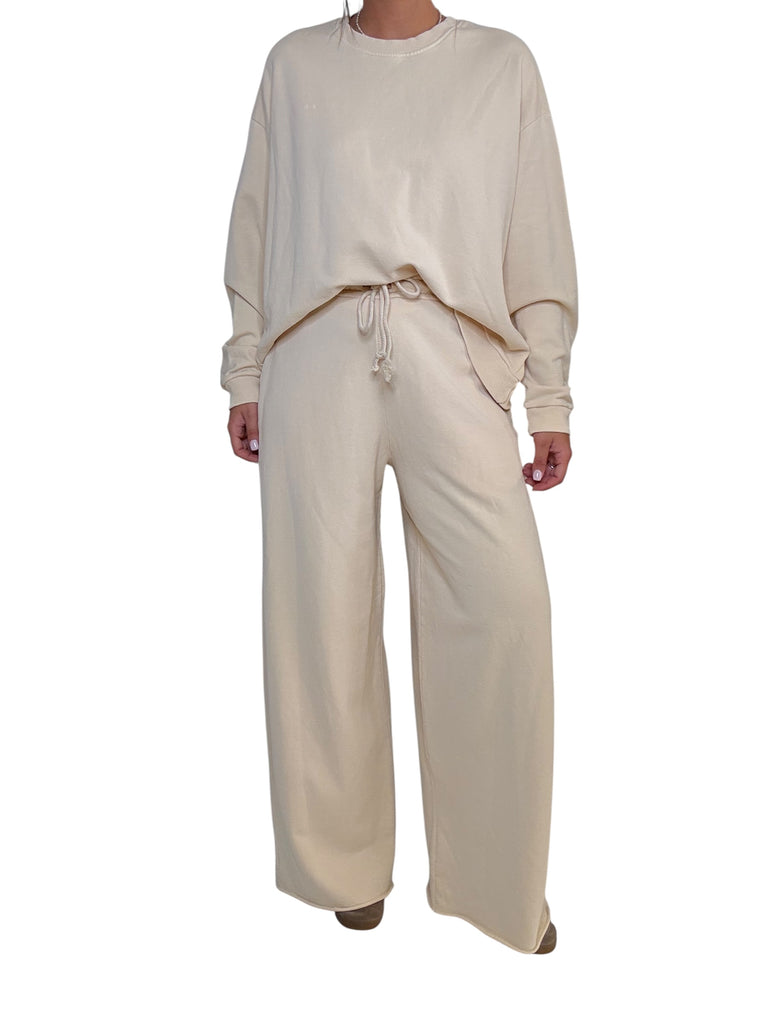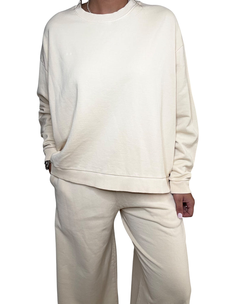 Felpa garzata girocollo con stampa laterale , elastico in vita, modello over