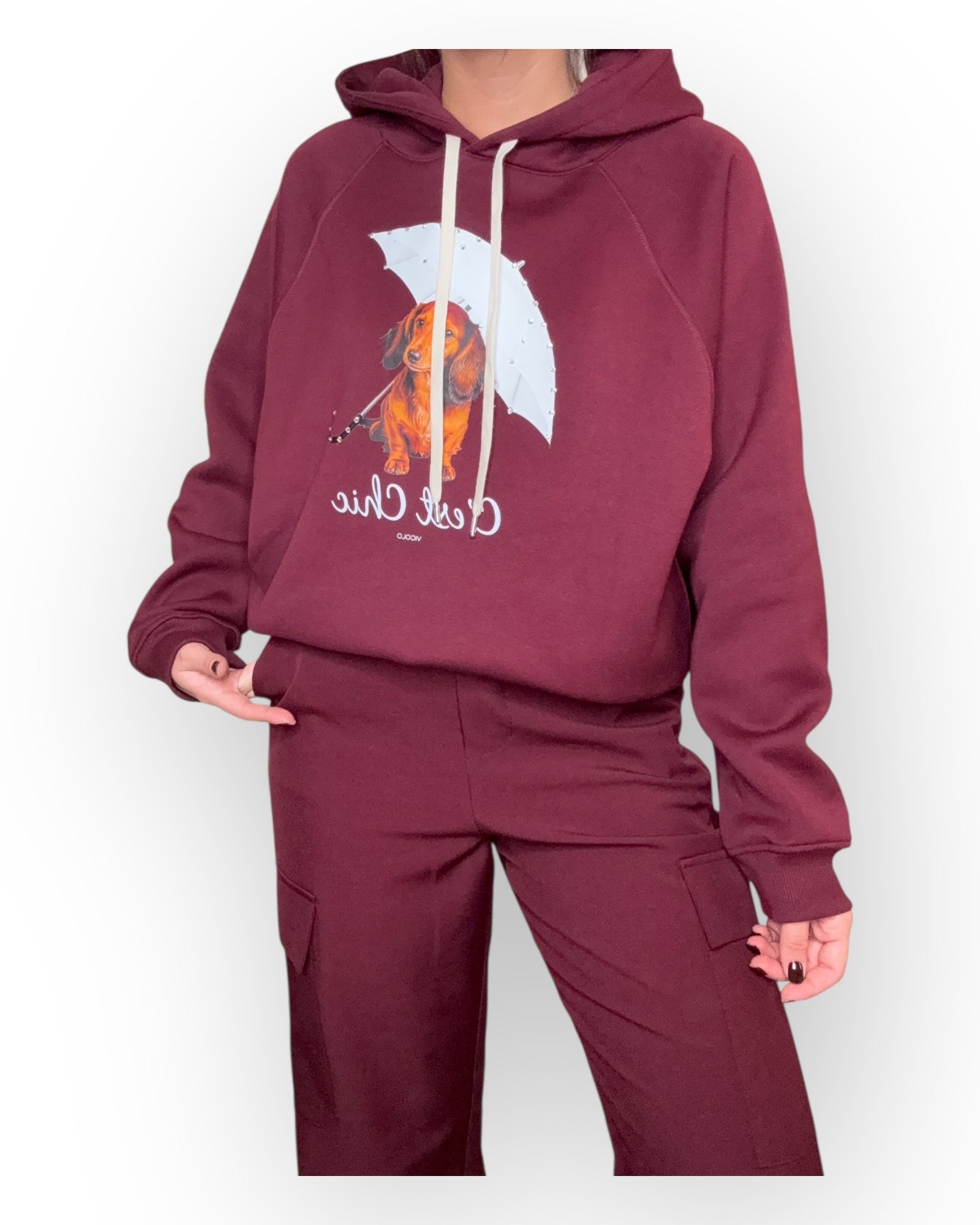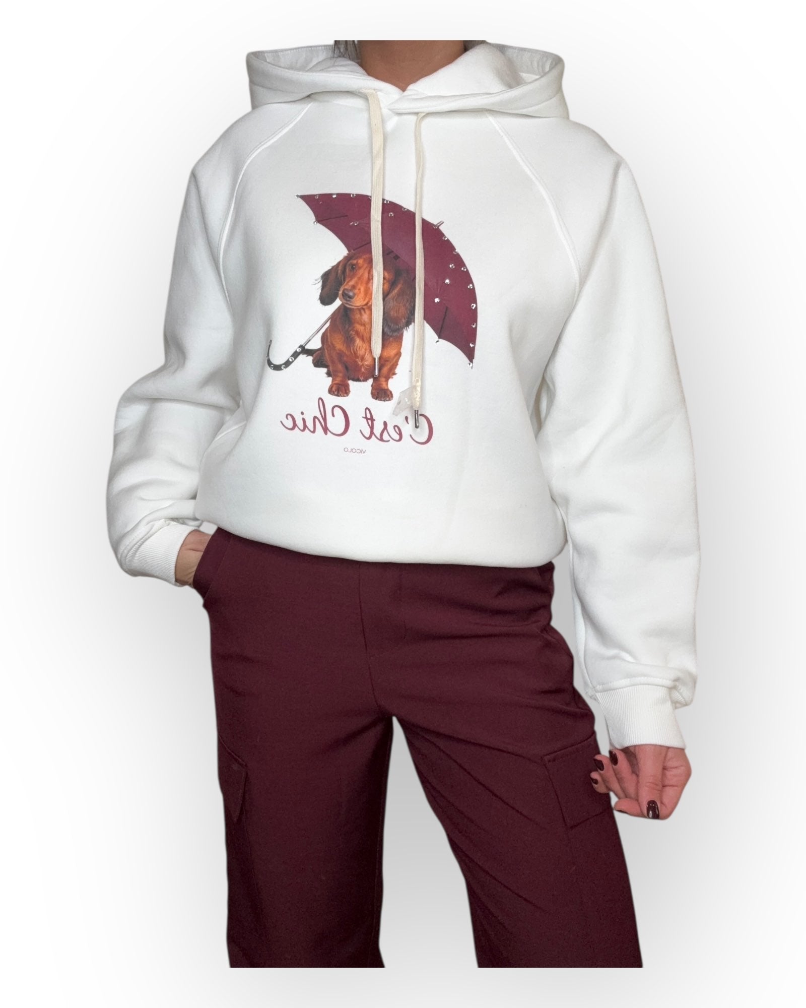 FELPA OVER CON CAPPUCCIO , STAMPA BASSOTTO.