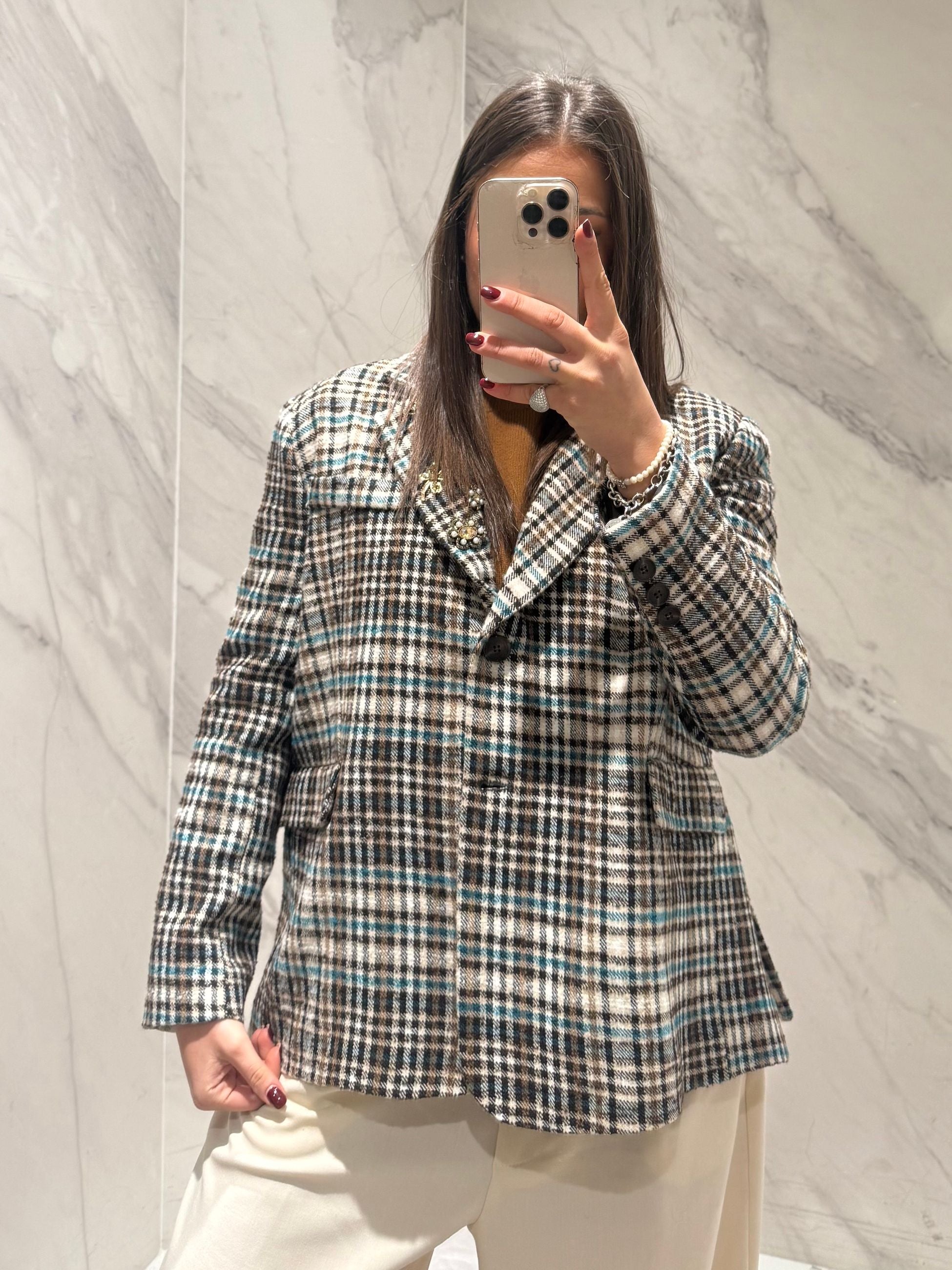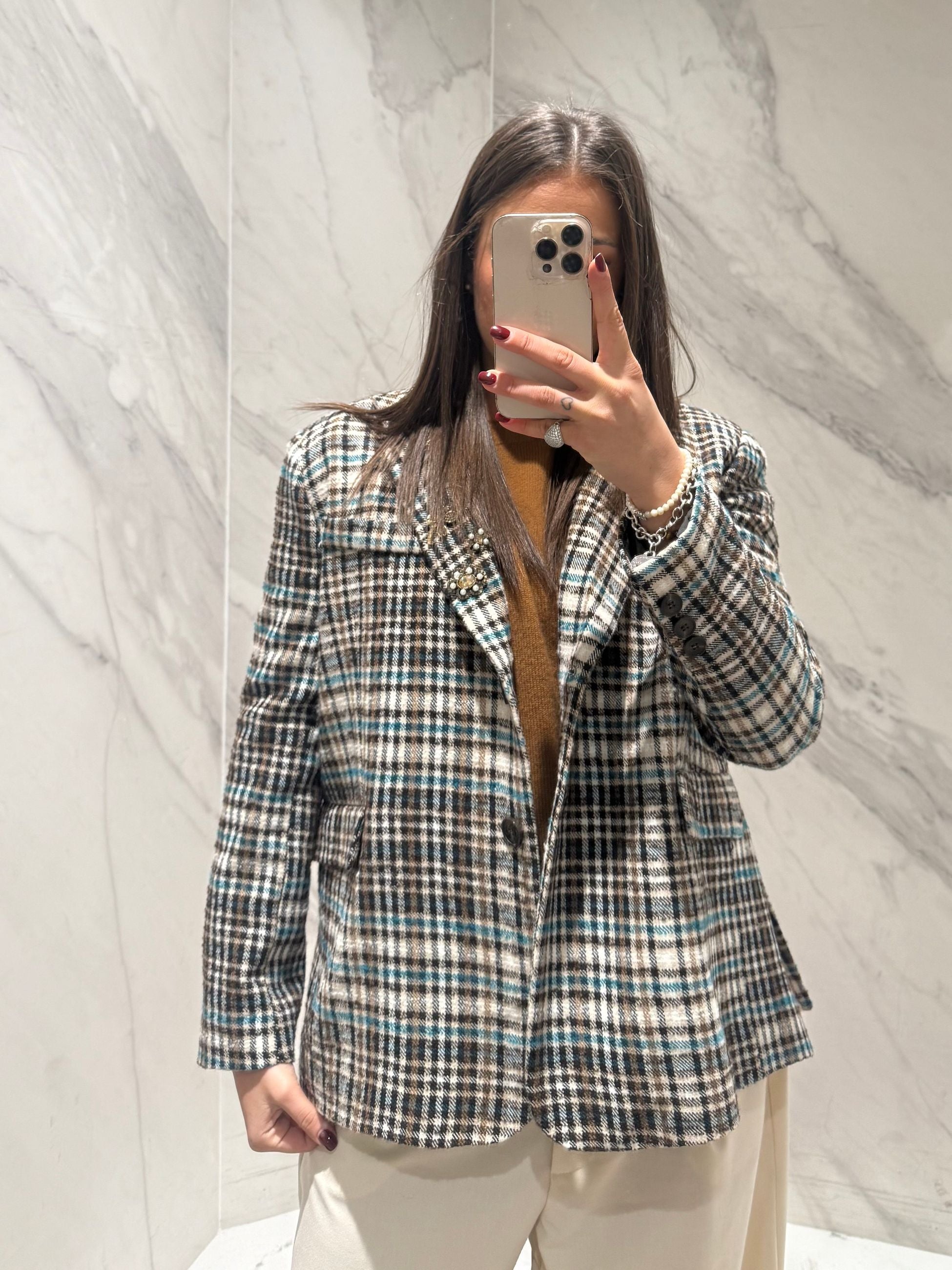 BLAZER MONOPETTO OVER FANTASIA PIED DE POULE COLORI:PANNA,CELESTE,CAMEL,MORO