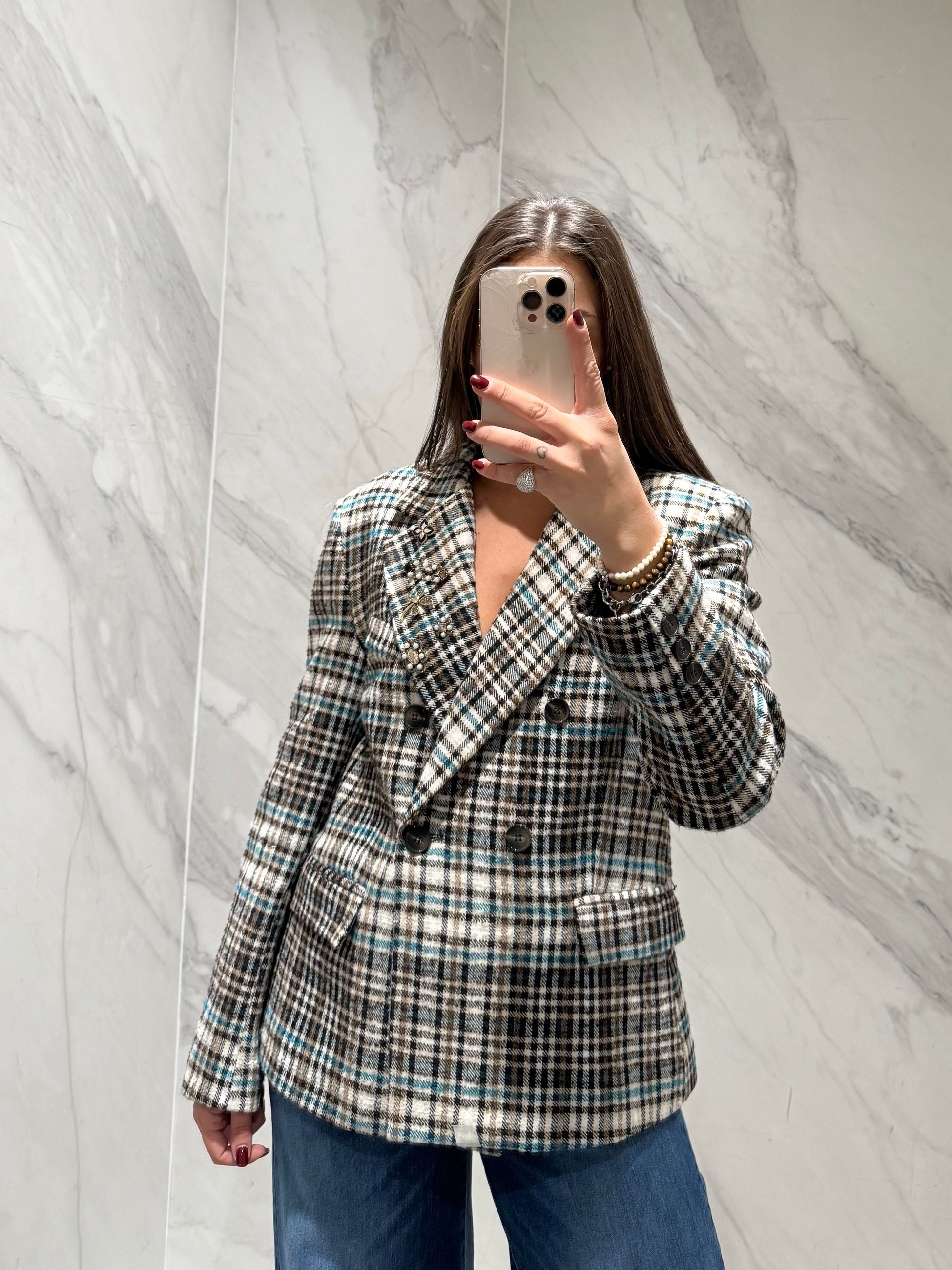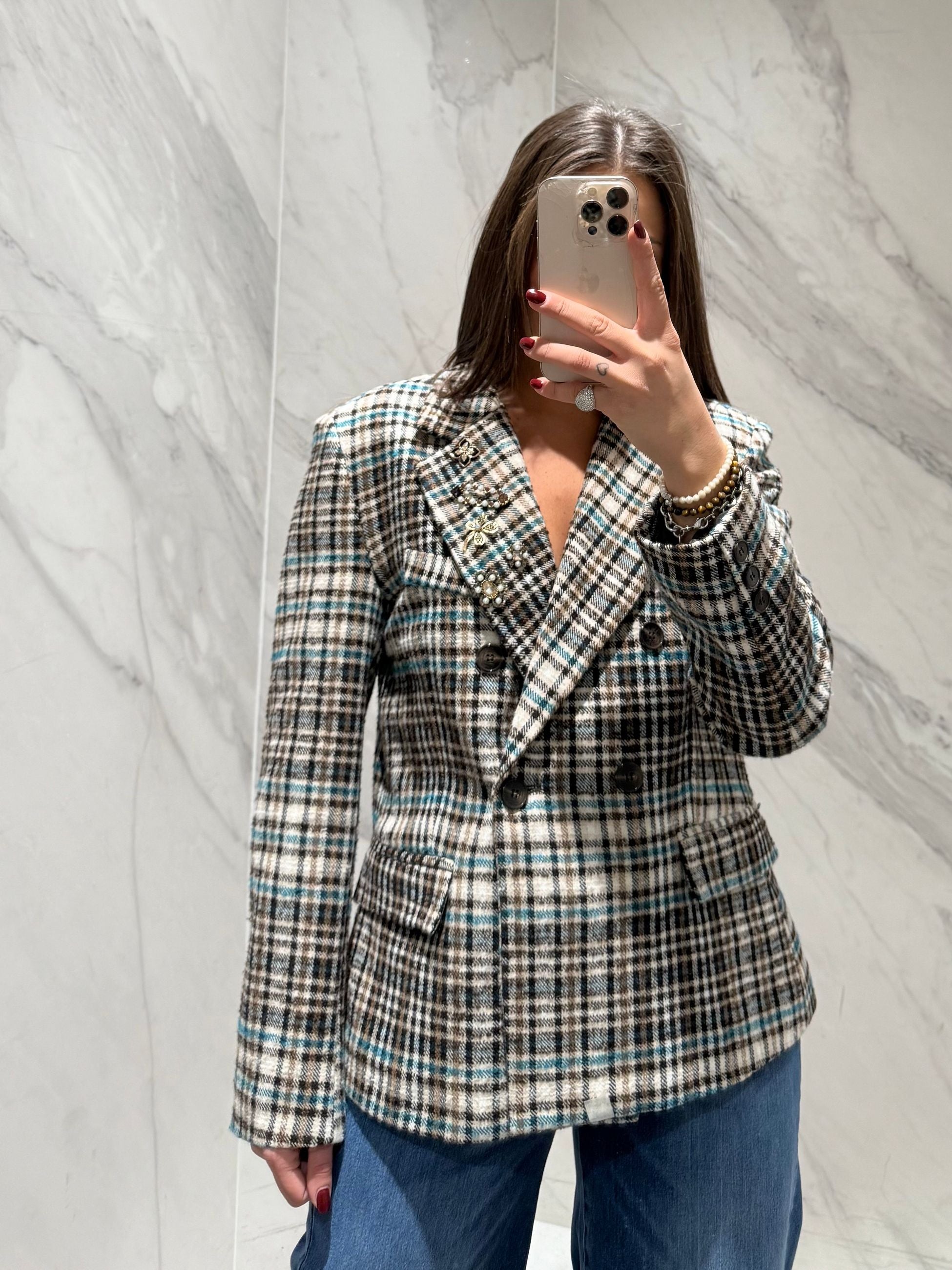 BLAZER DOPPIOPETTO OVER FANTASIA PIED DE POULE COLORI:PANNA,CELESTE,CAMEL,MORO