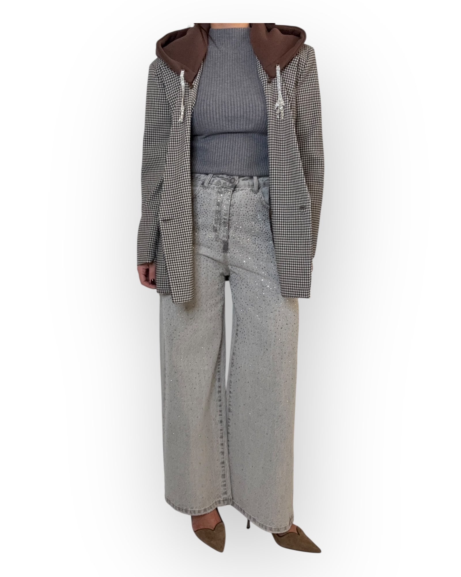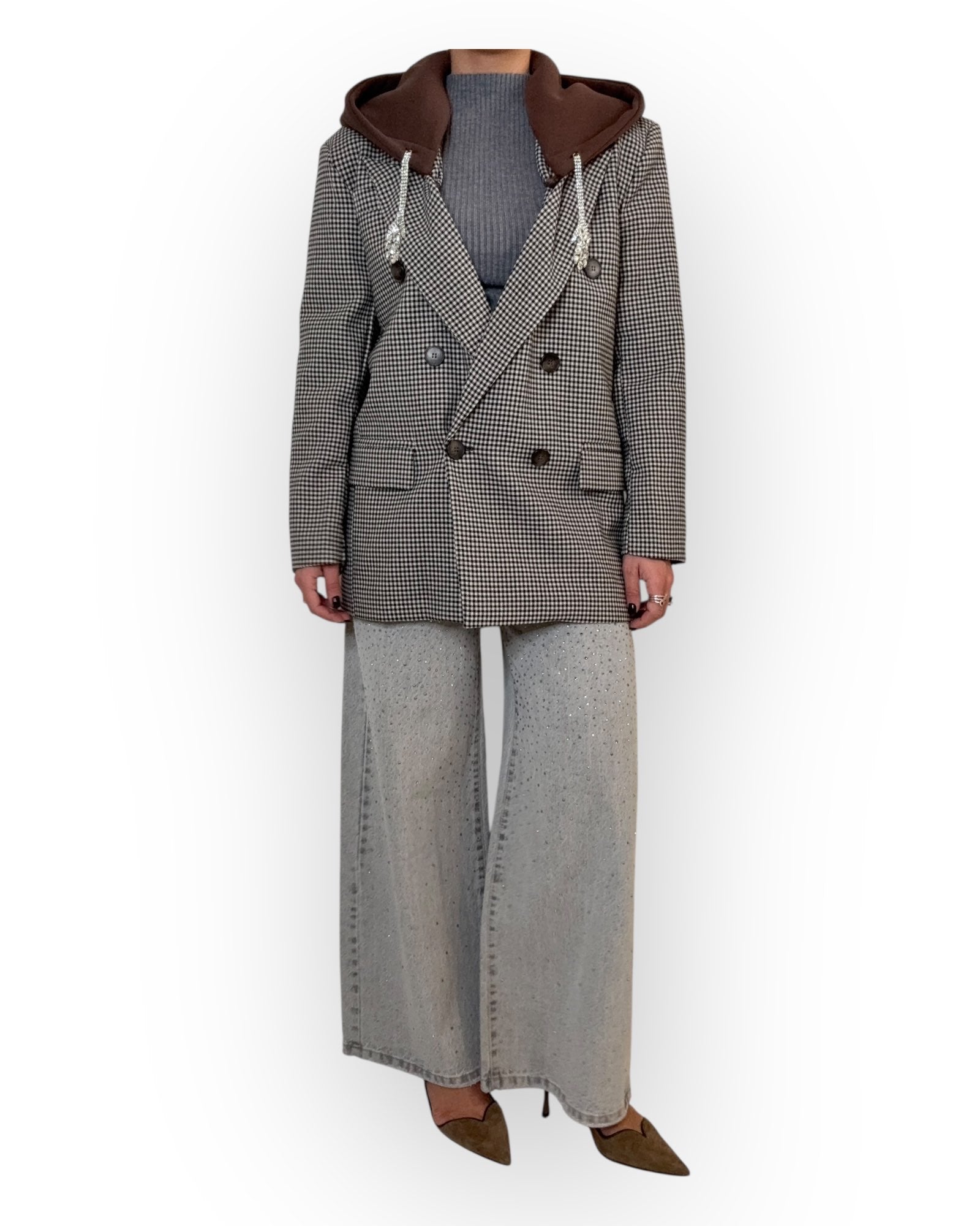 GIACCA CON CAPUCCIO REMOVIBILE CON STRASS.