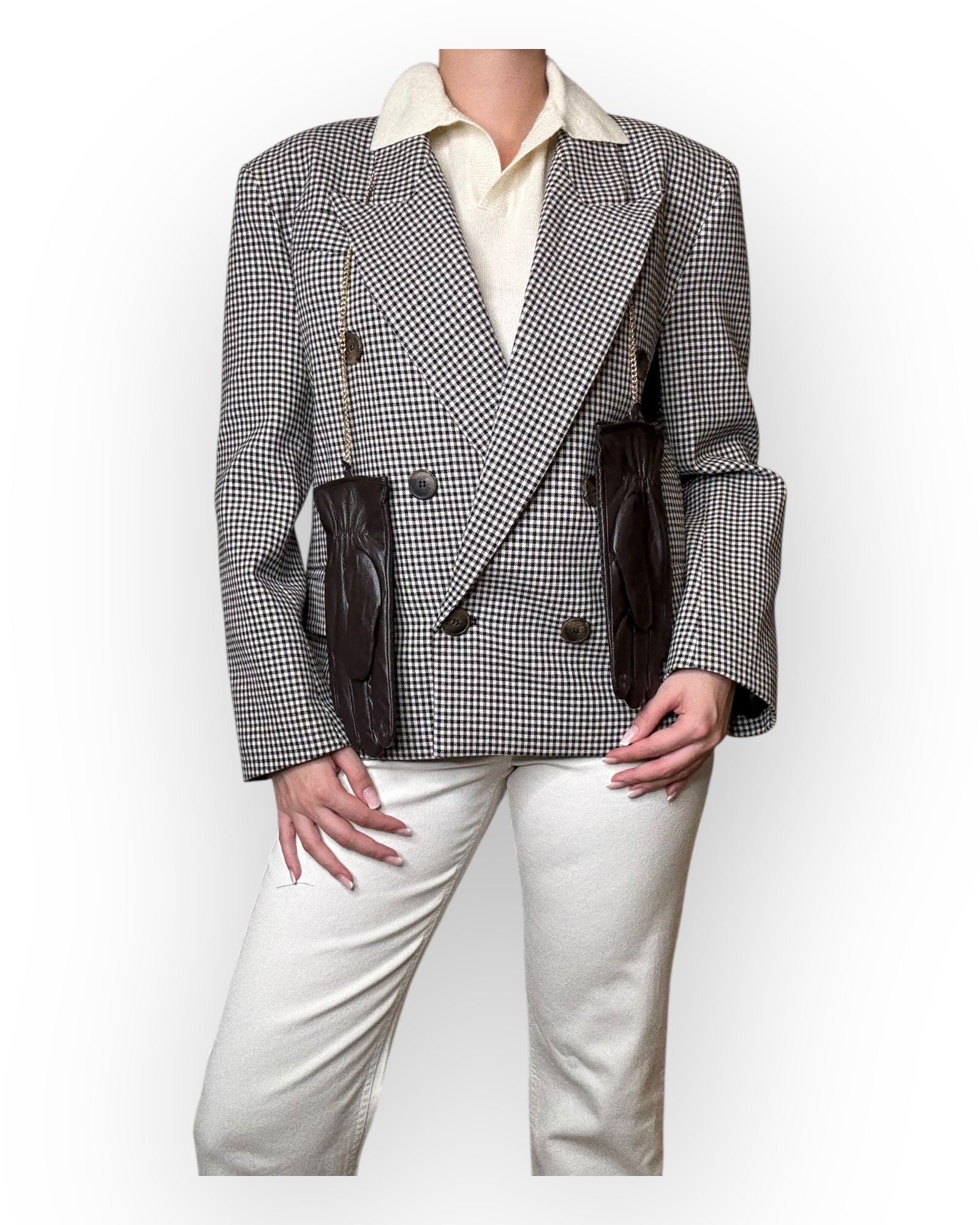 GIACCA DOPPIOPETTO TENSIONE IN A QUADRI CON GUANTI CON CATENE