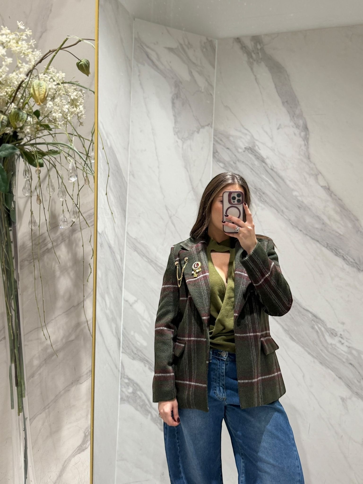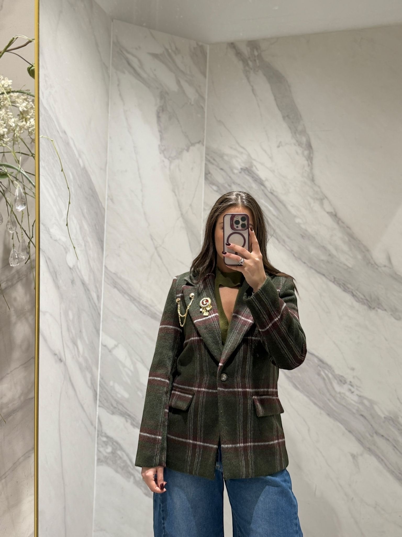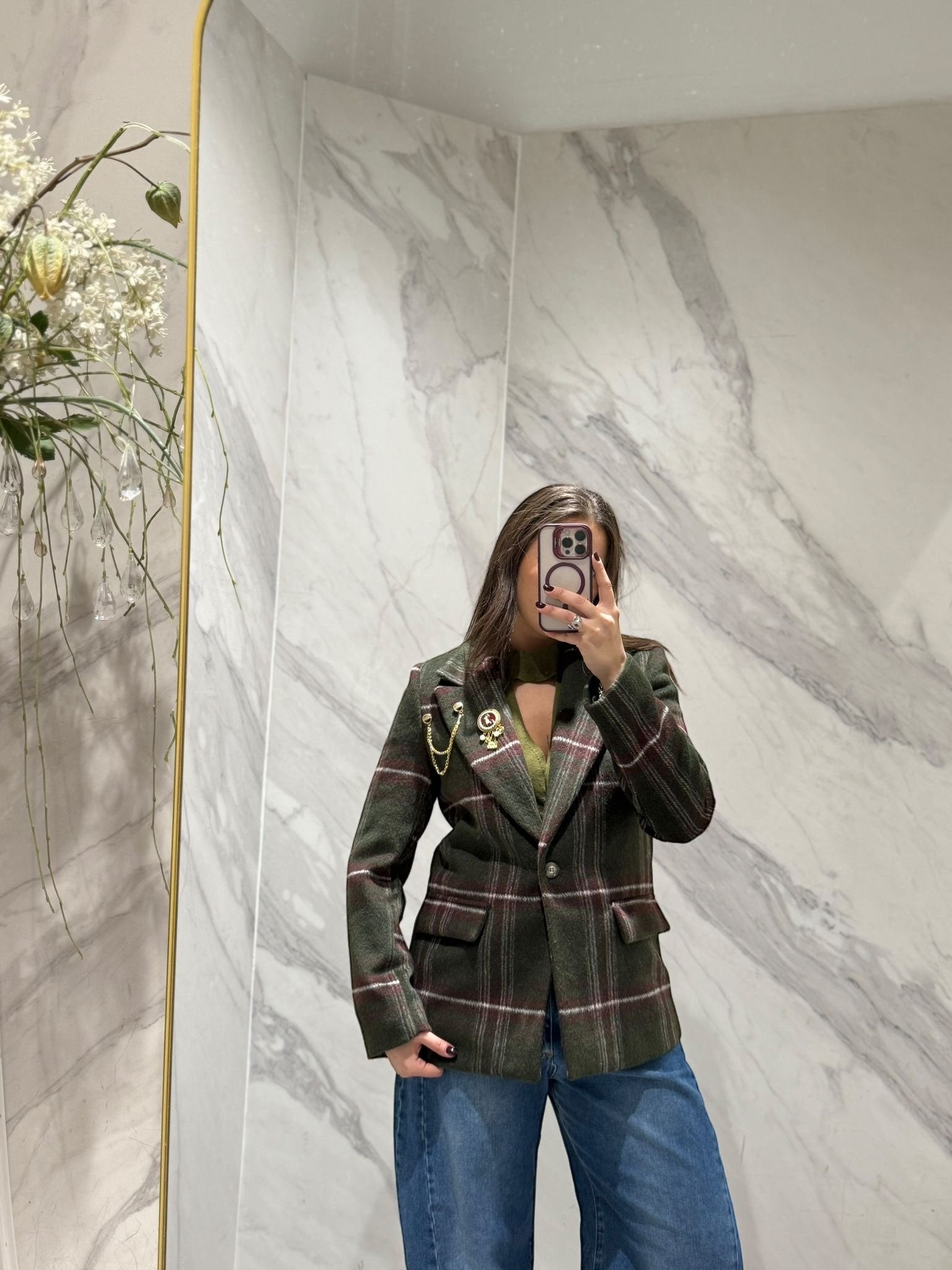 GIACCA CHECK MONO BOTTONE CON SPILLE SUL REVER.