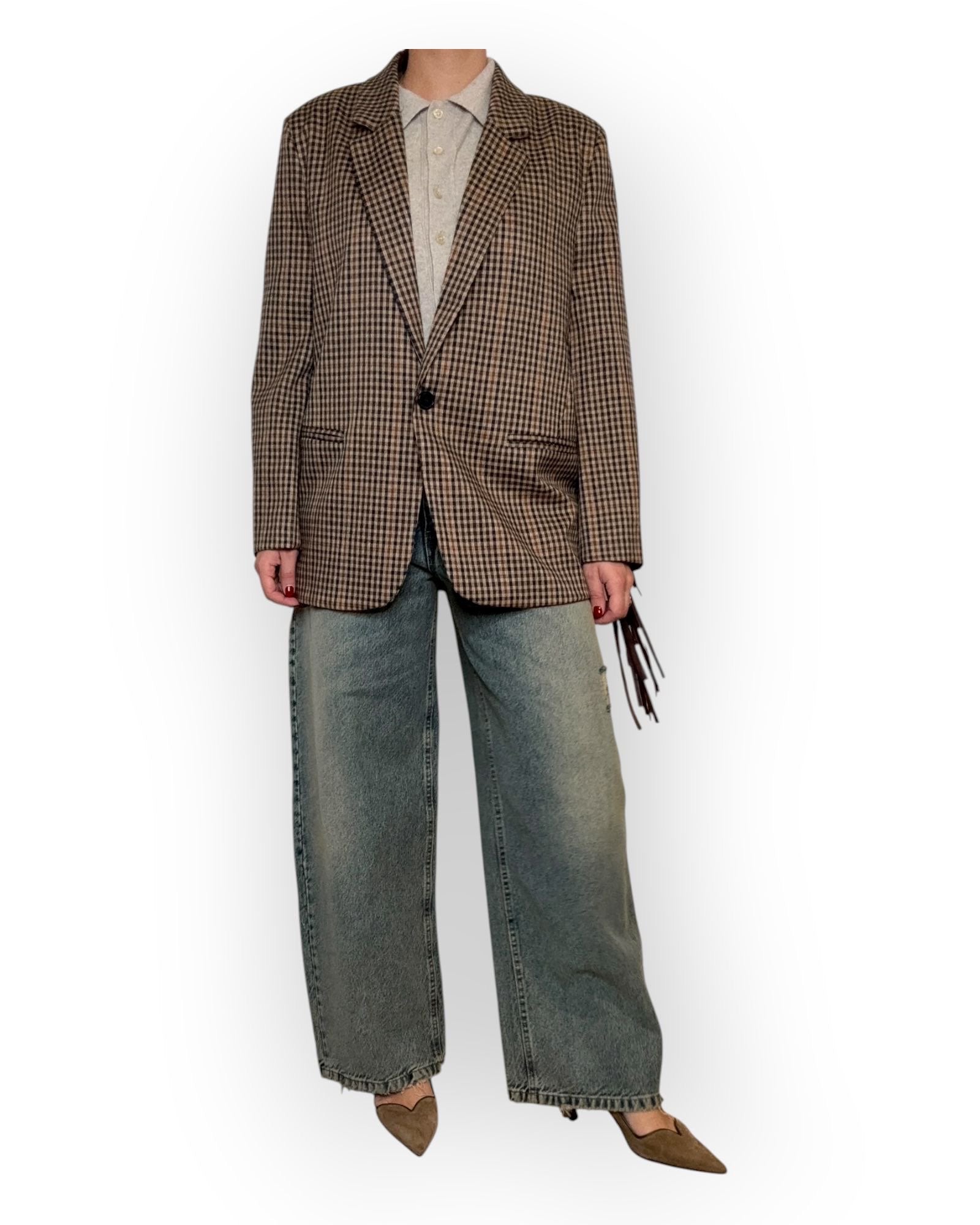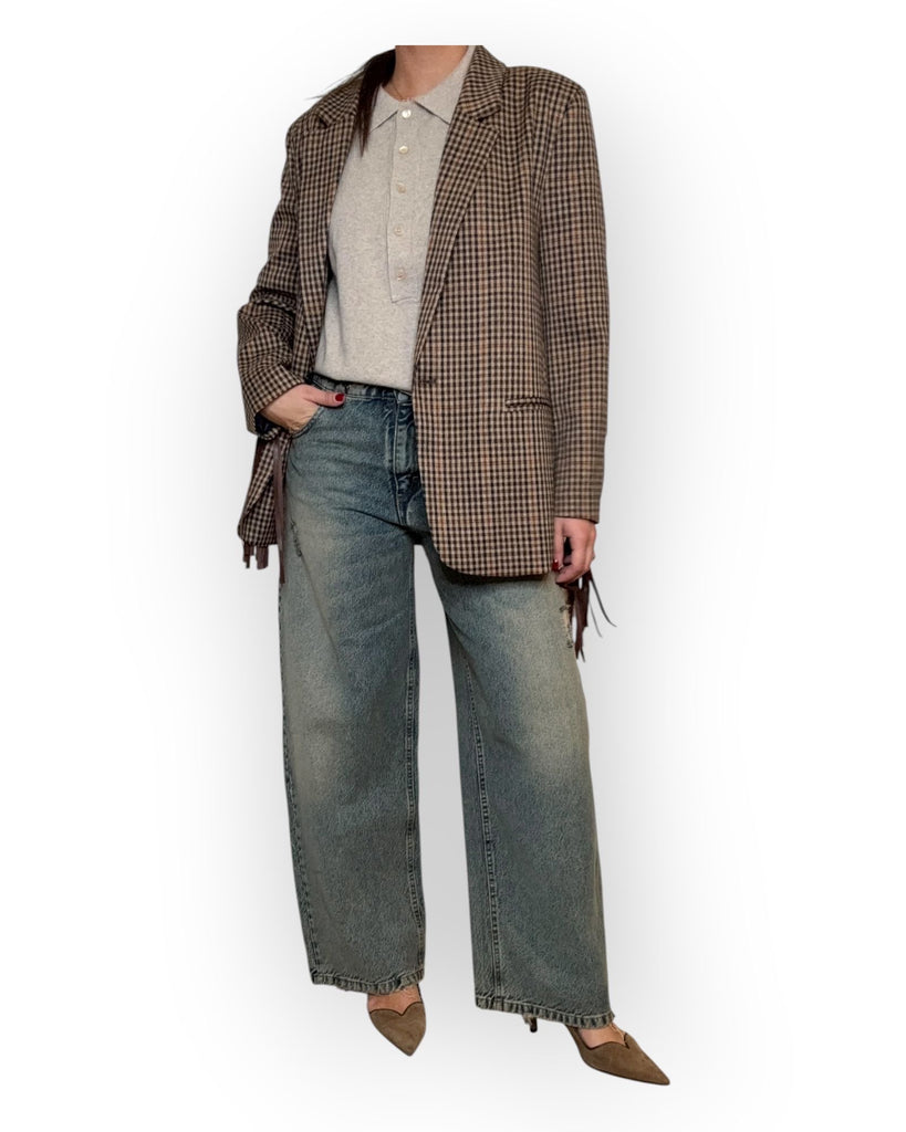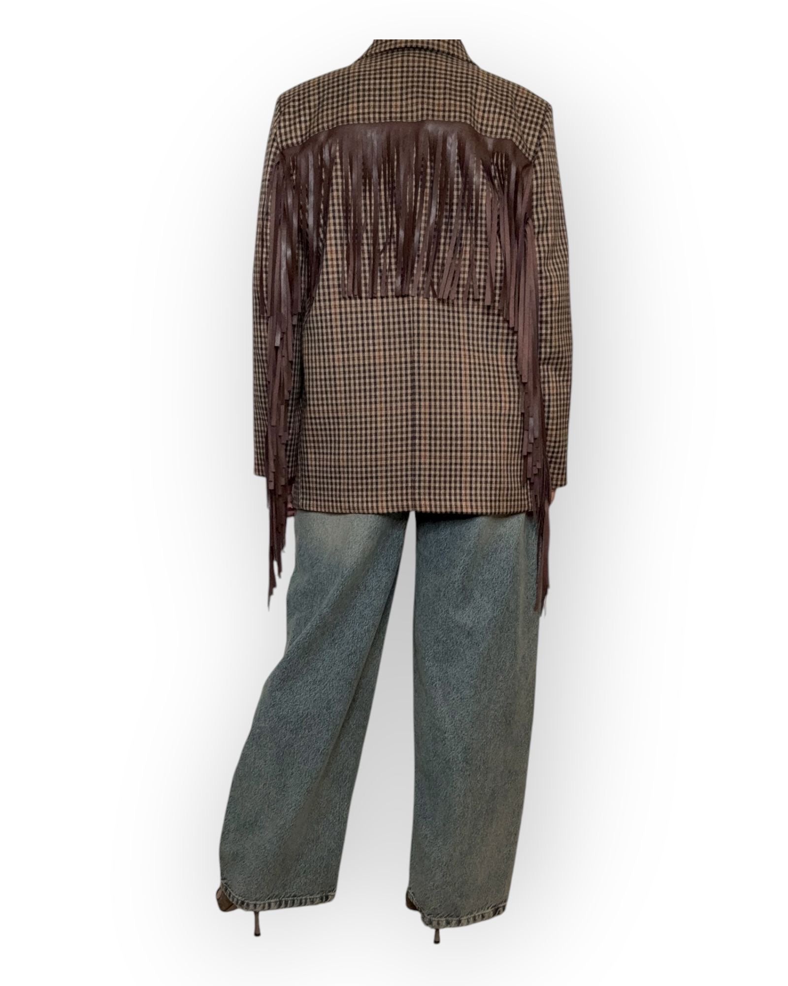GIACCA A QUADRI CON FRANGE SUL RETRO.