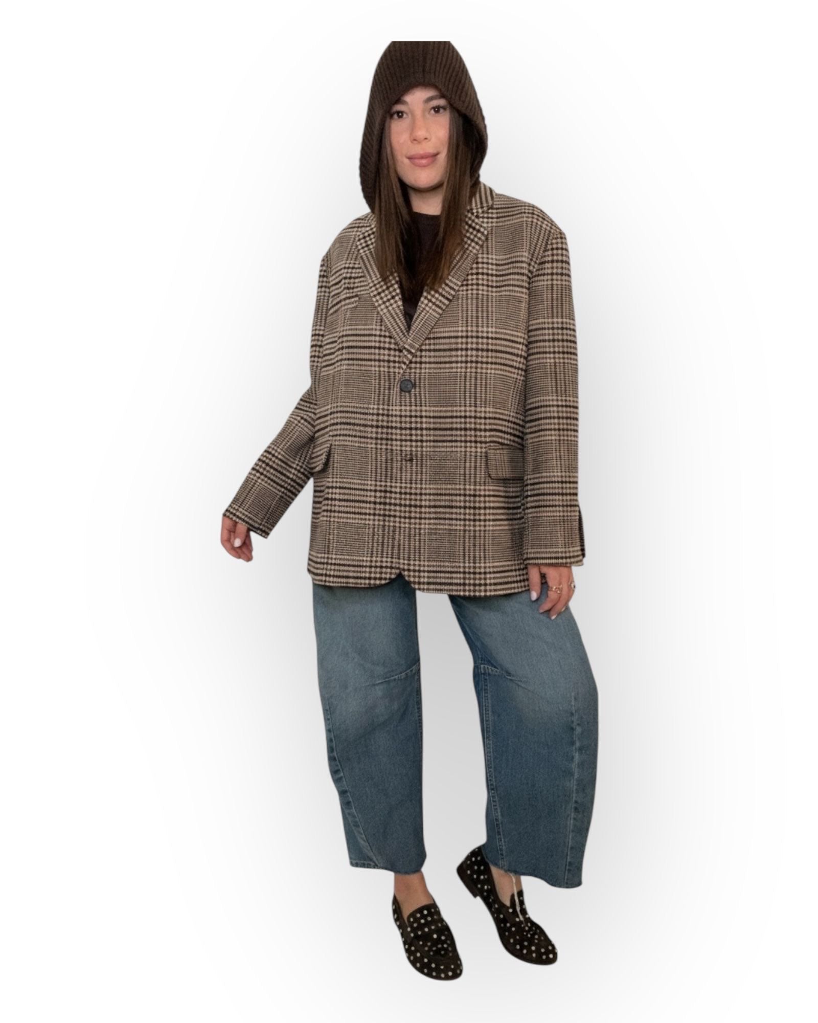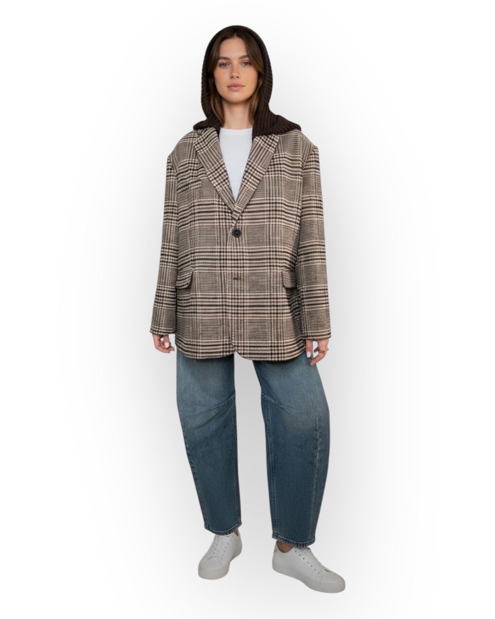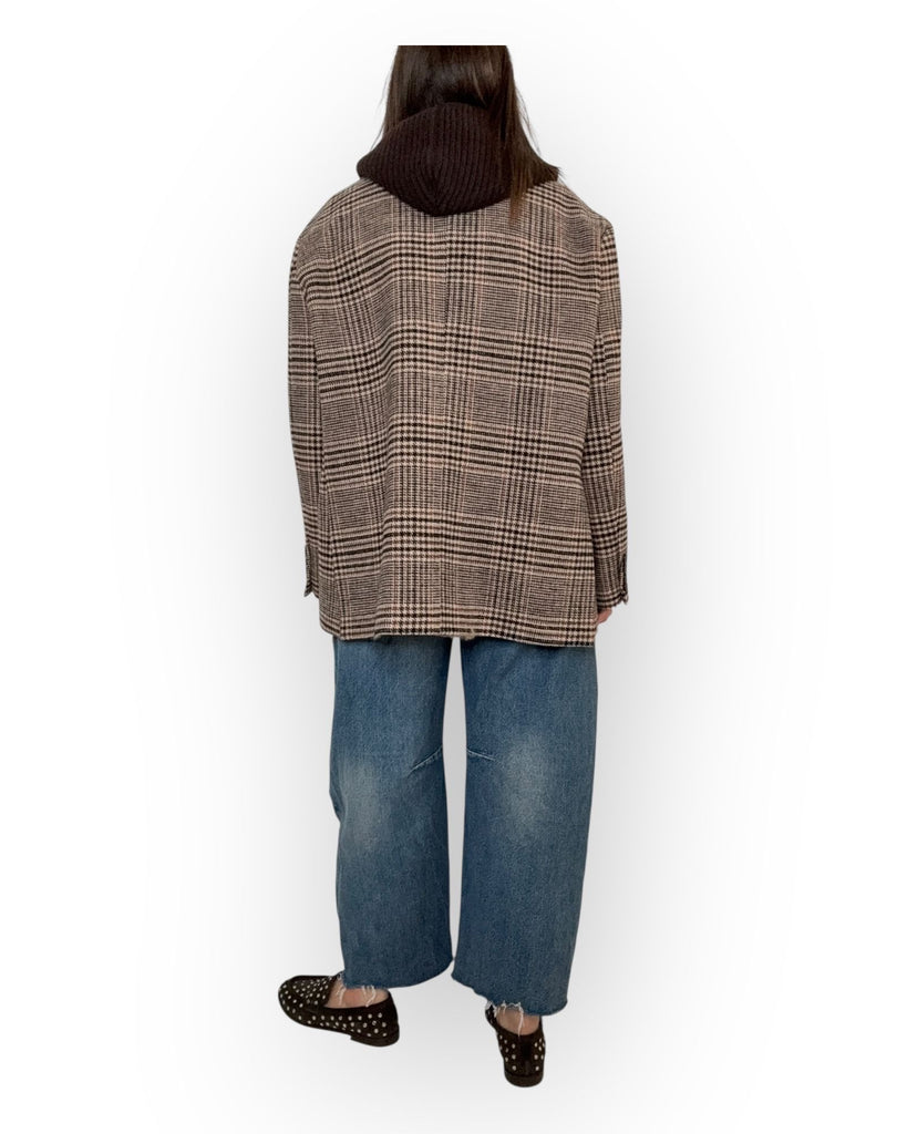 GIACCA CAPPOTTO VICOLO A FANTASIA CON SPACCHI SUL RETRO E CAPPUCCIO IN MISTO LANA REMOVIBILE