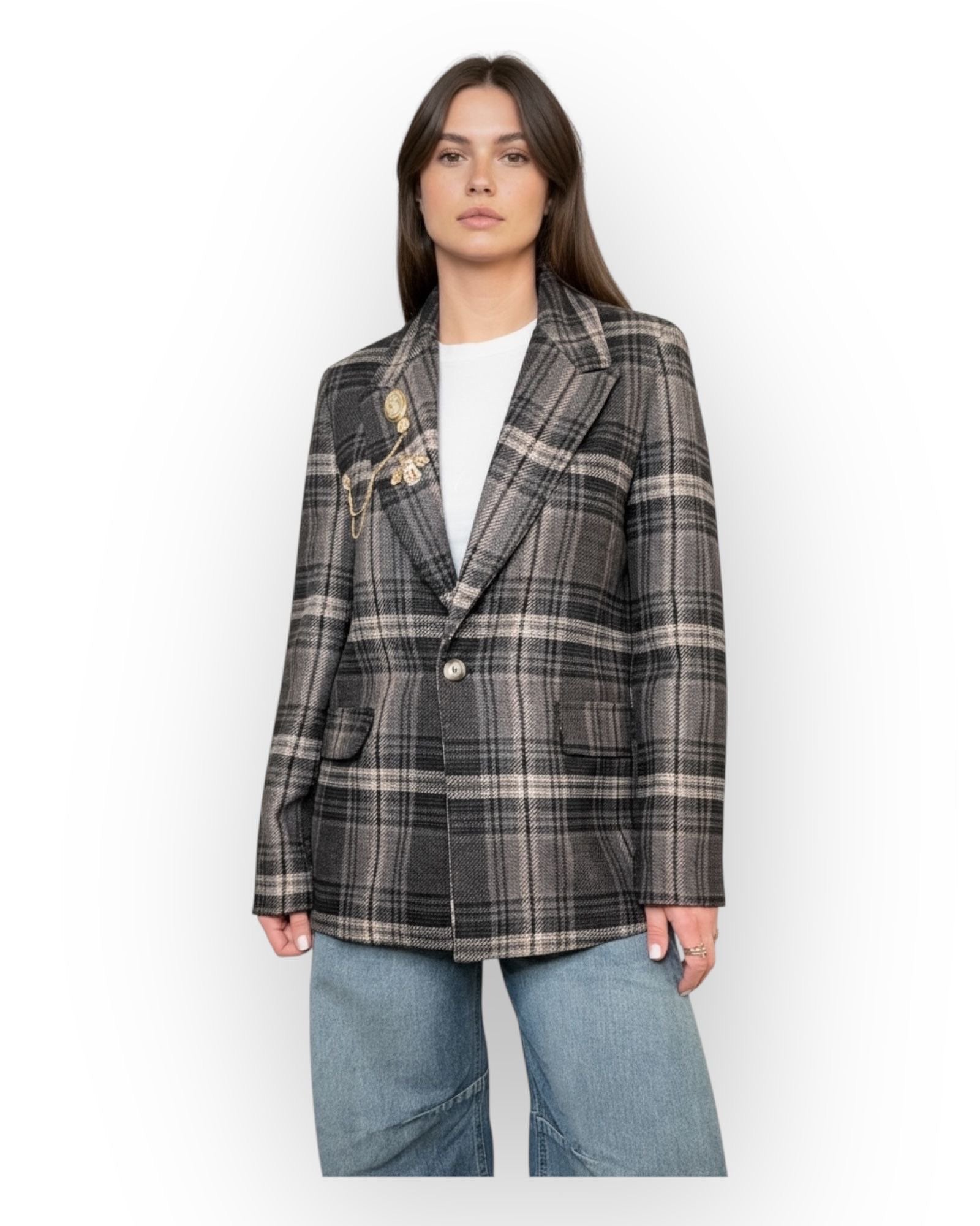 GIACCA A DOPPIOPETTO VICOLO A QUADRI CON SPILLE