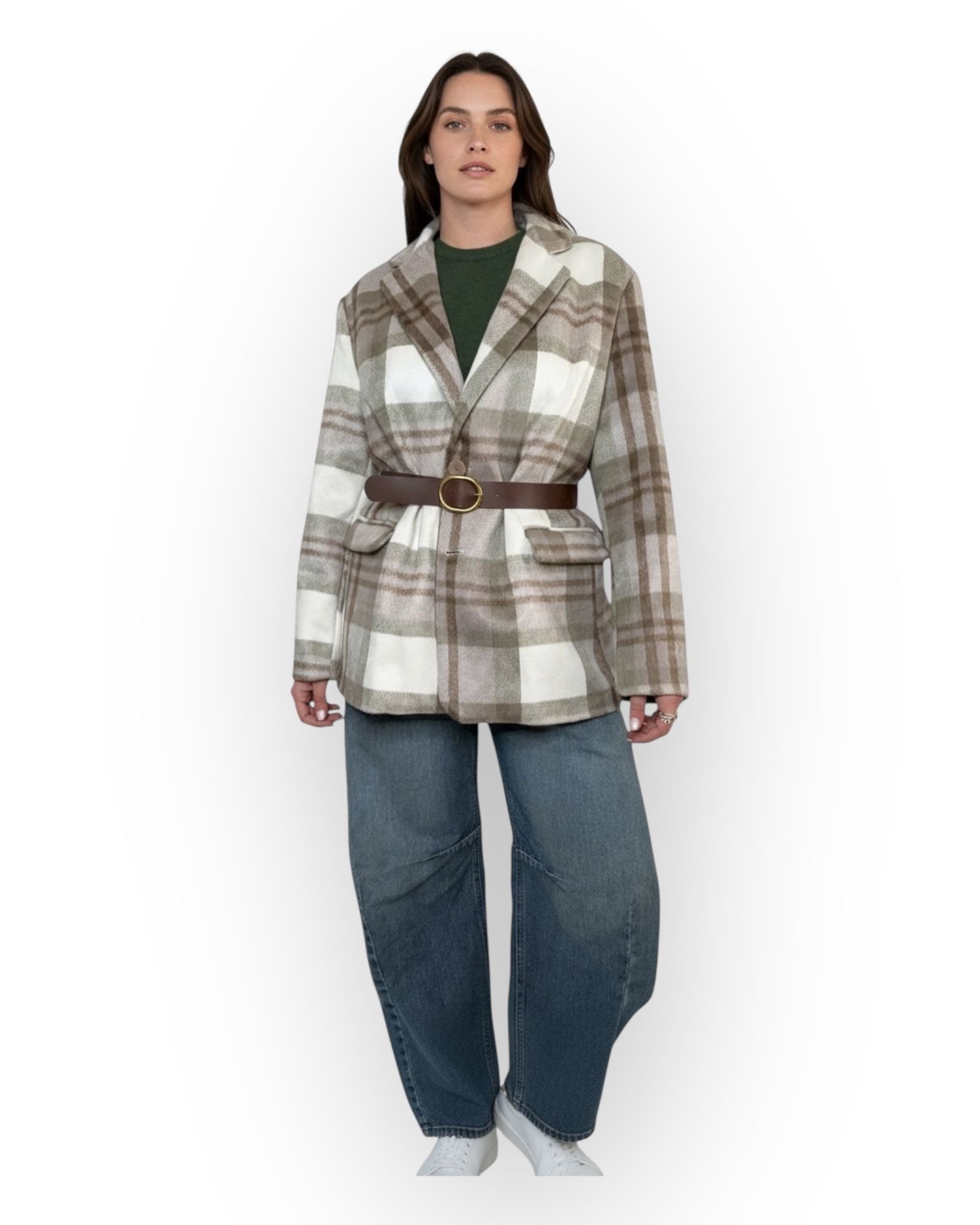 GIACCA CAPPOTTO CHECK VICOLO CON CINTURA IN VITA