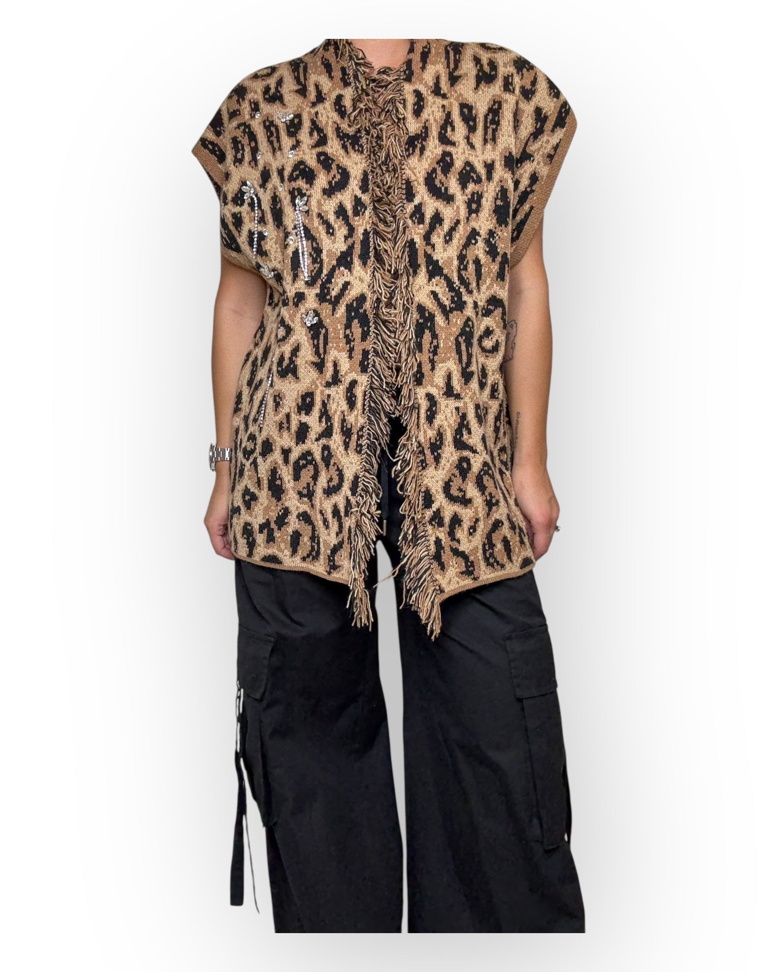 GILET ALANUI ,MACULATO, CON CABOCHON LATERALE, MACULATO