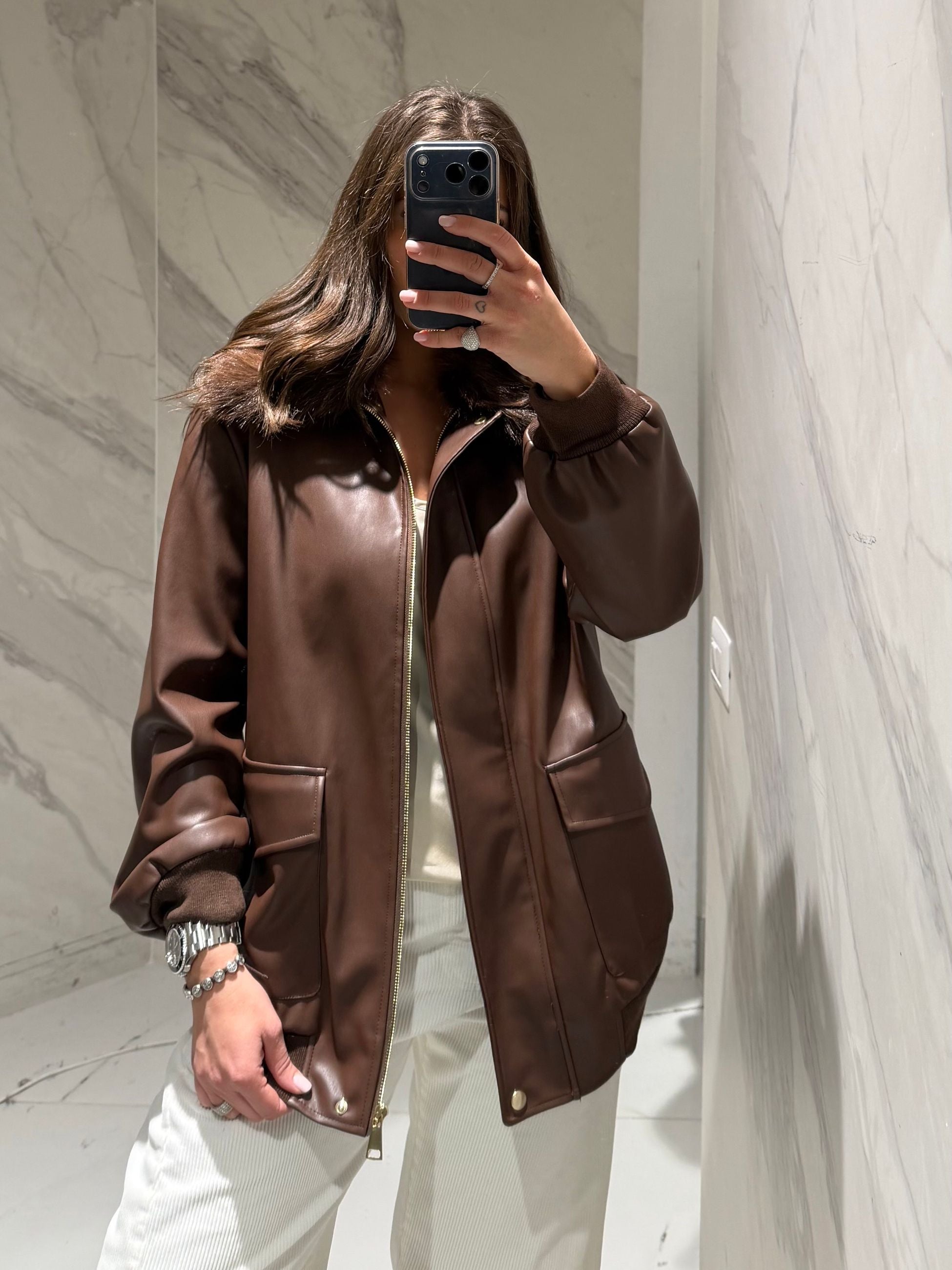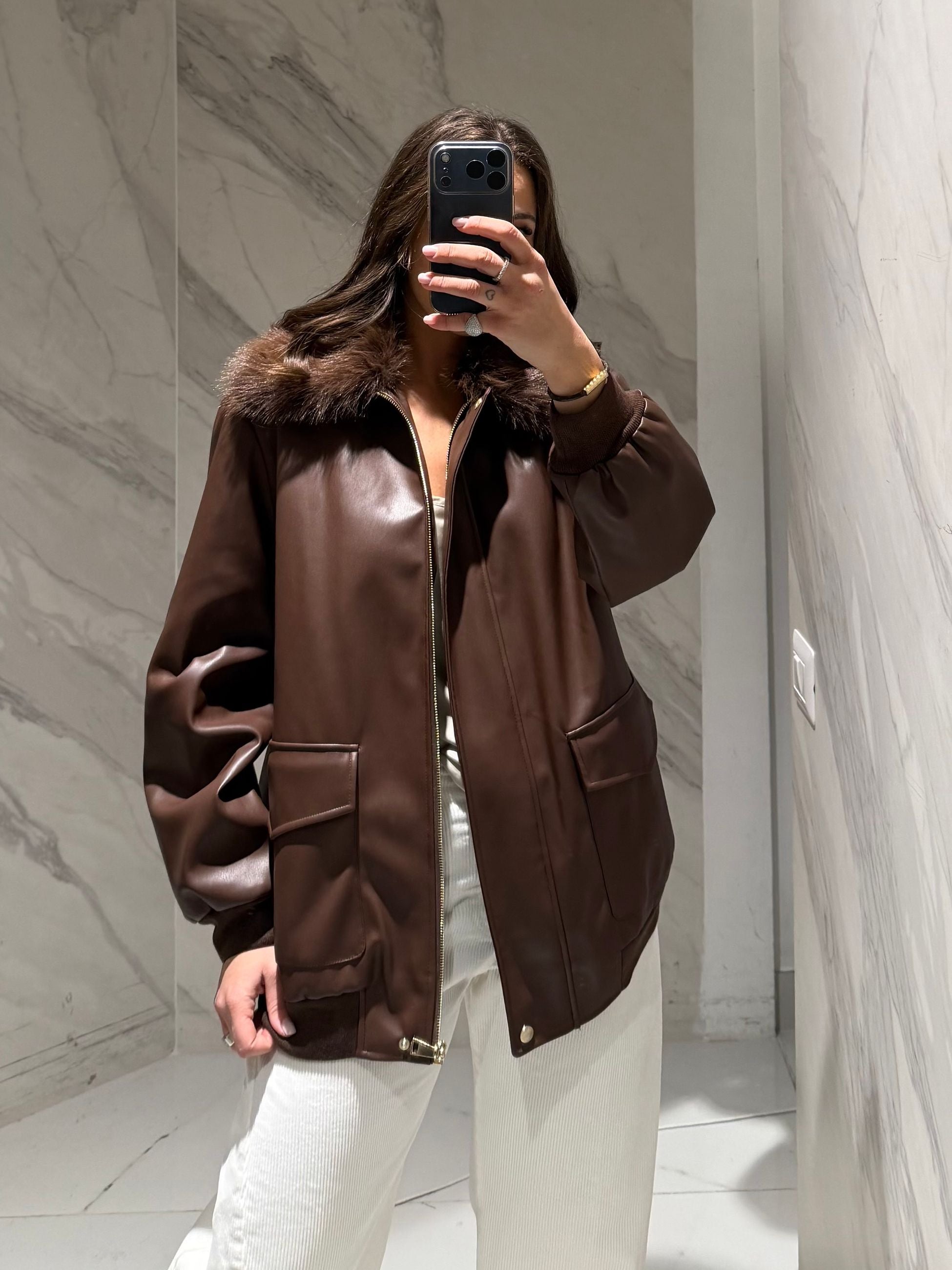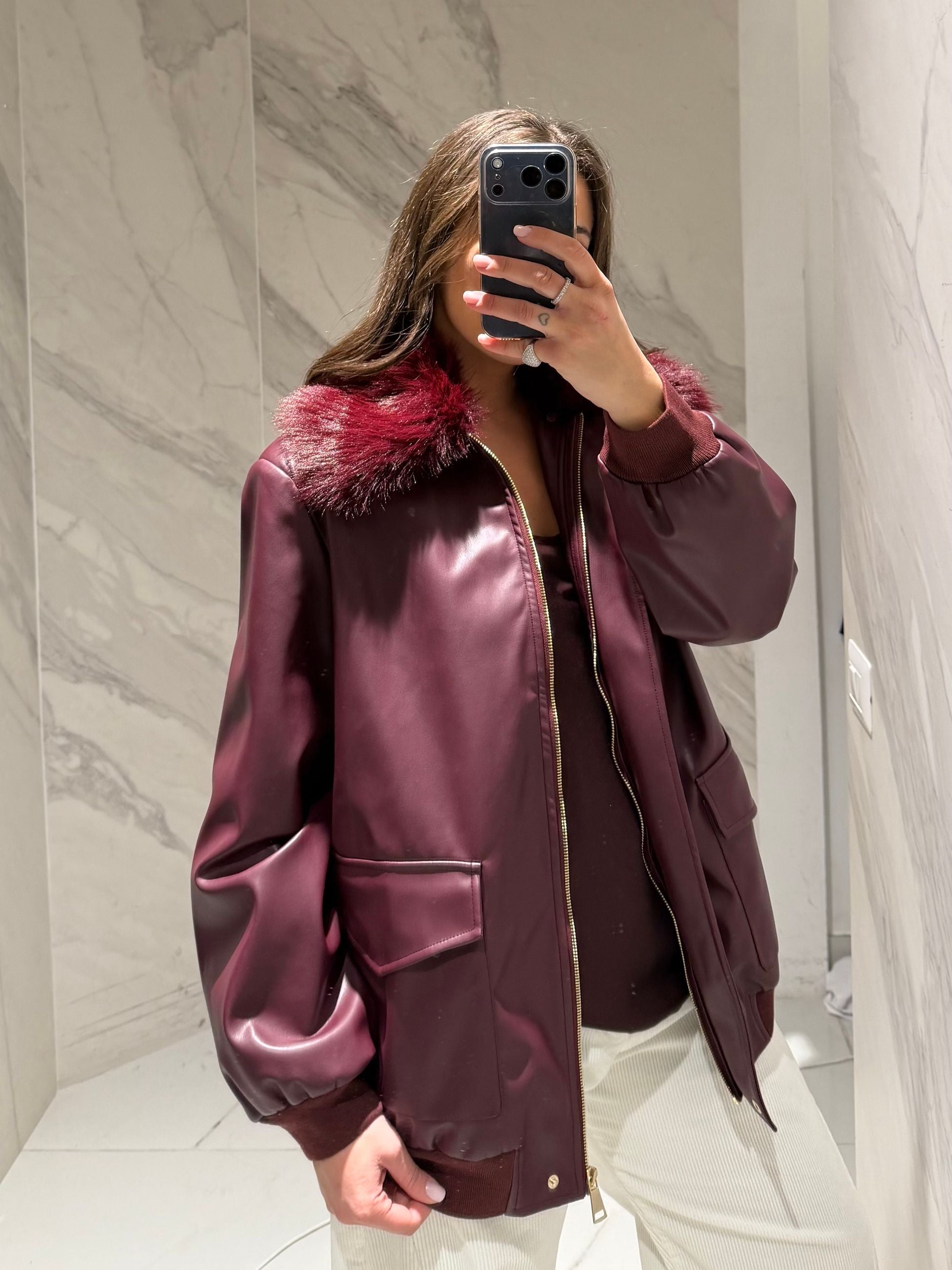 BOMBER IN ECOPELLE, CON ECO PELLICCIA SUL DAVANTI,