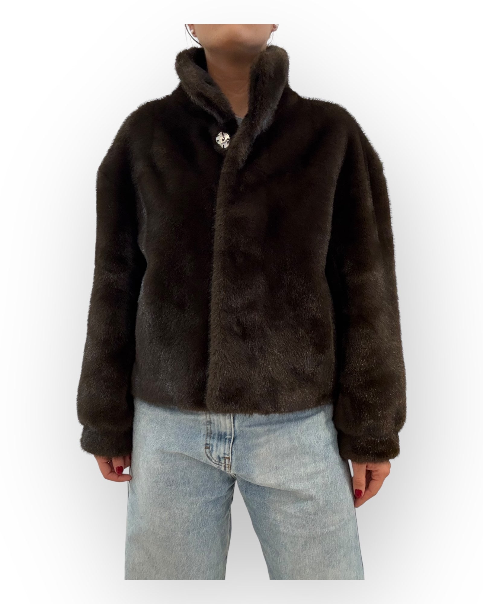 PELLICCIA CON BOTTONI A SCOMPARSA E TASCHE.