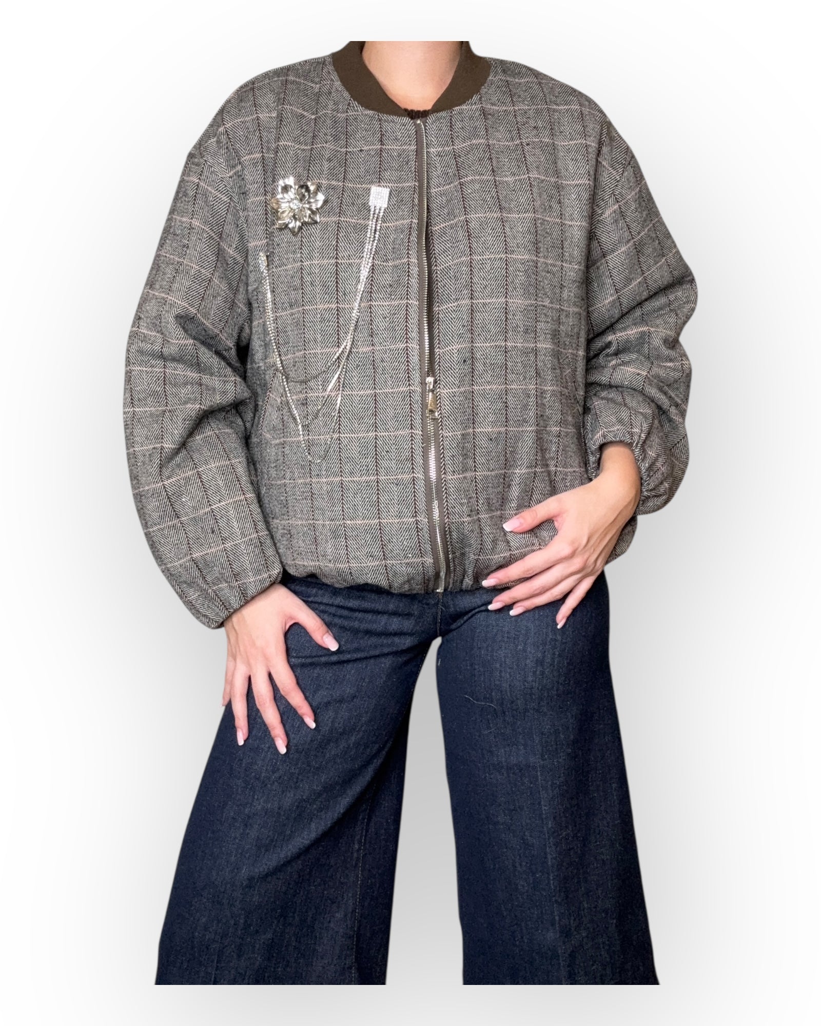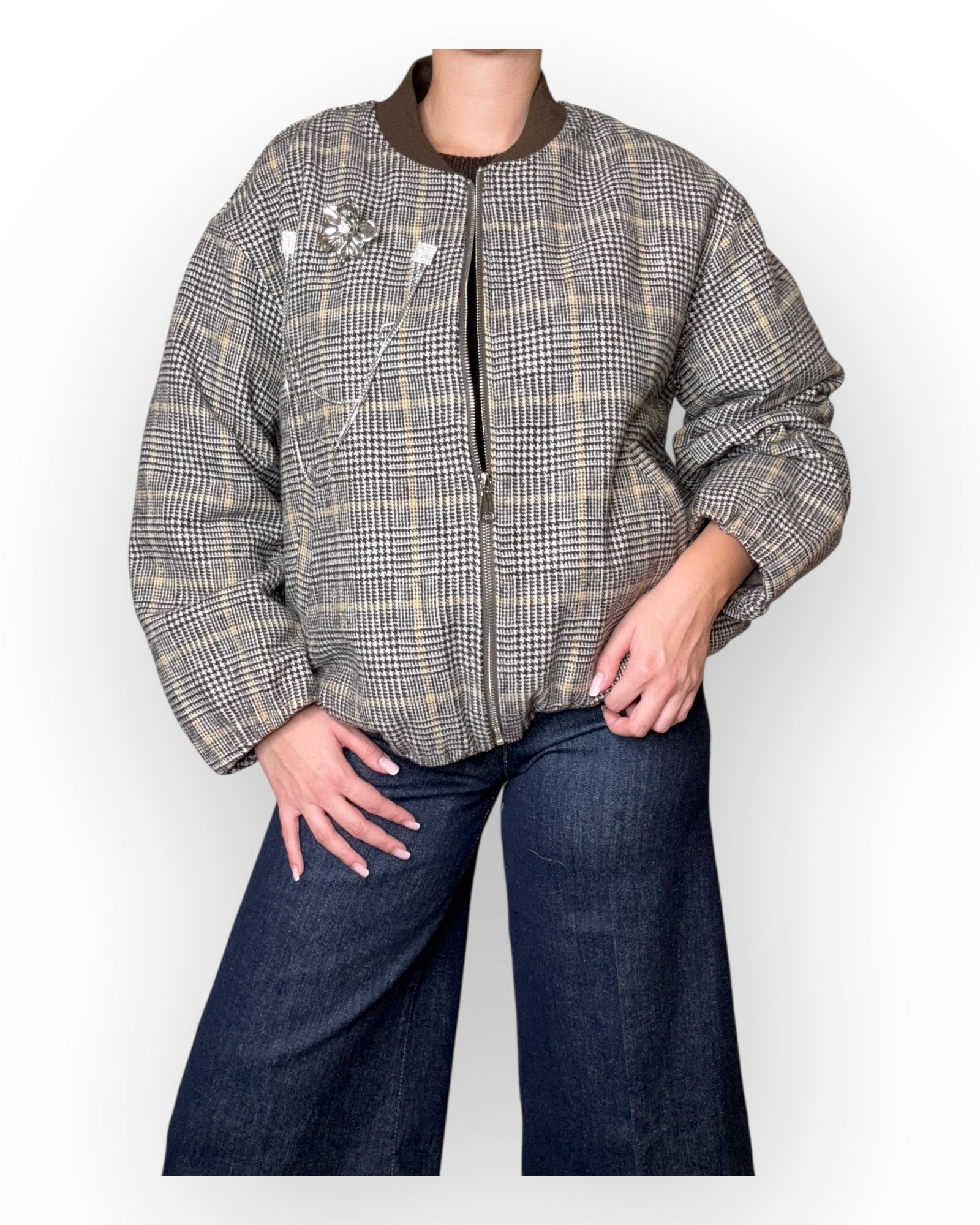 BOMBER YOU DECIDE A FANTASIA CHECK EFFETTO LANOSO CON SPILLE