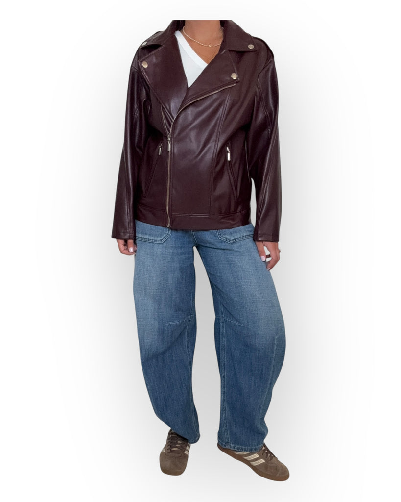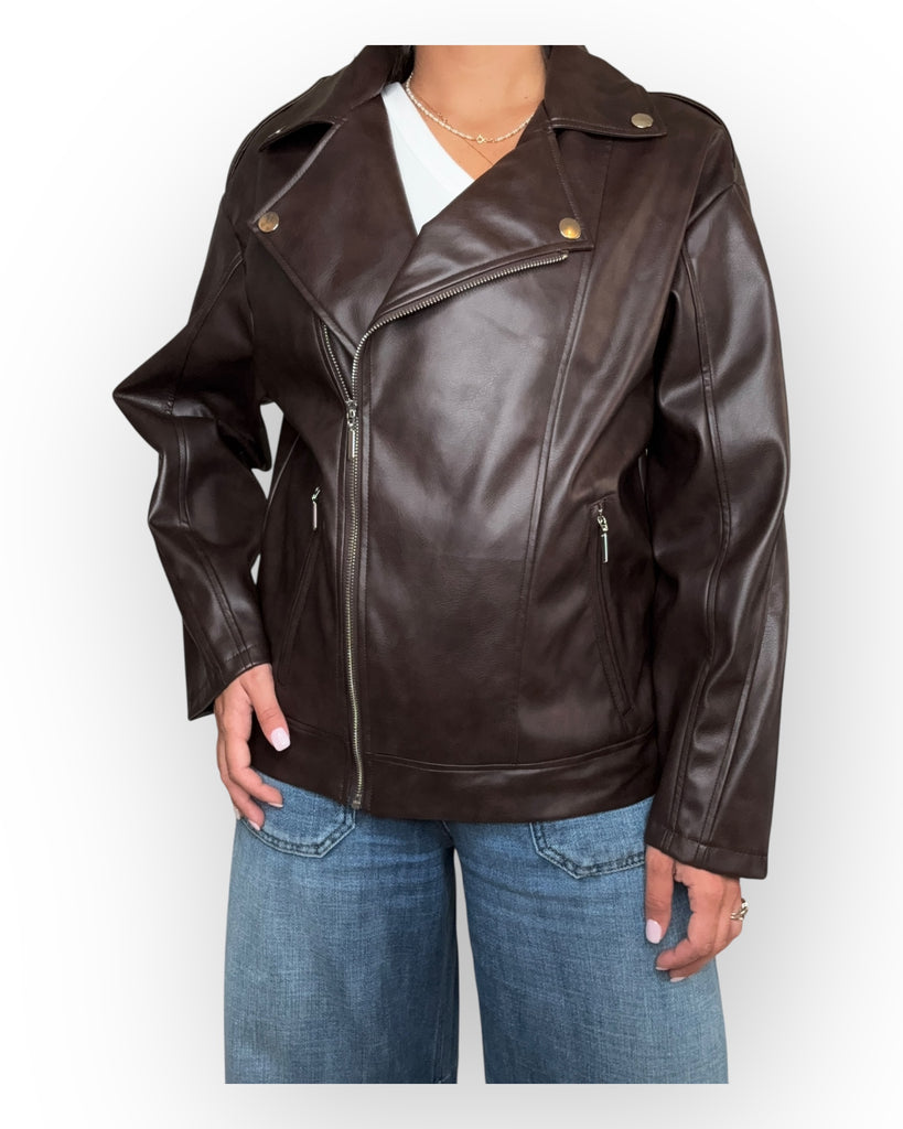 Chiodo in ecopelle modello over chiusura zip sul davanti
