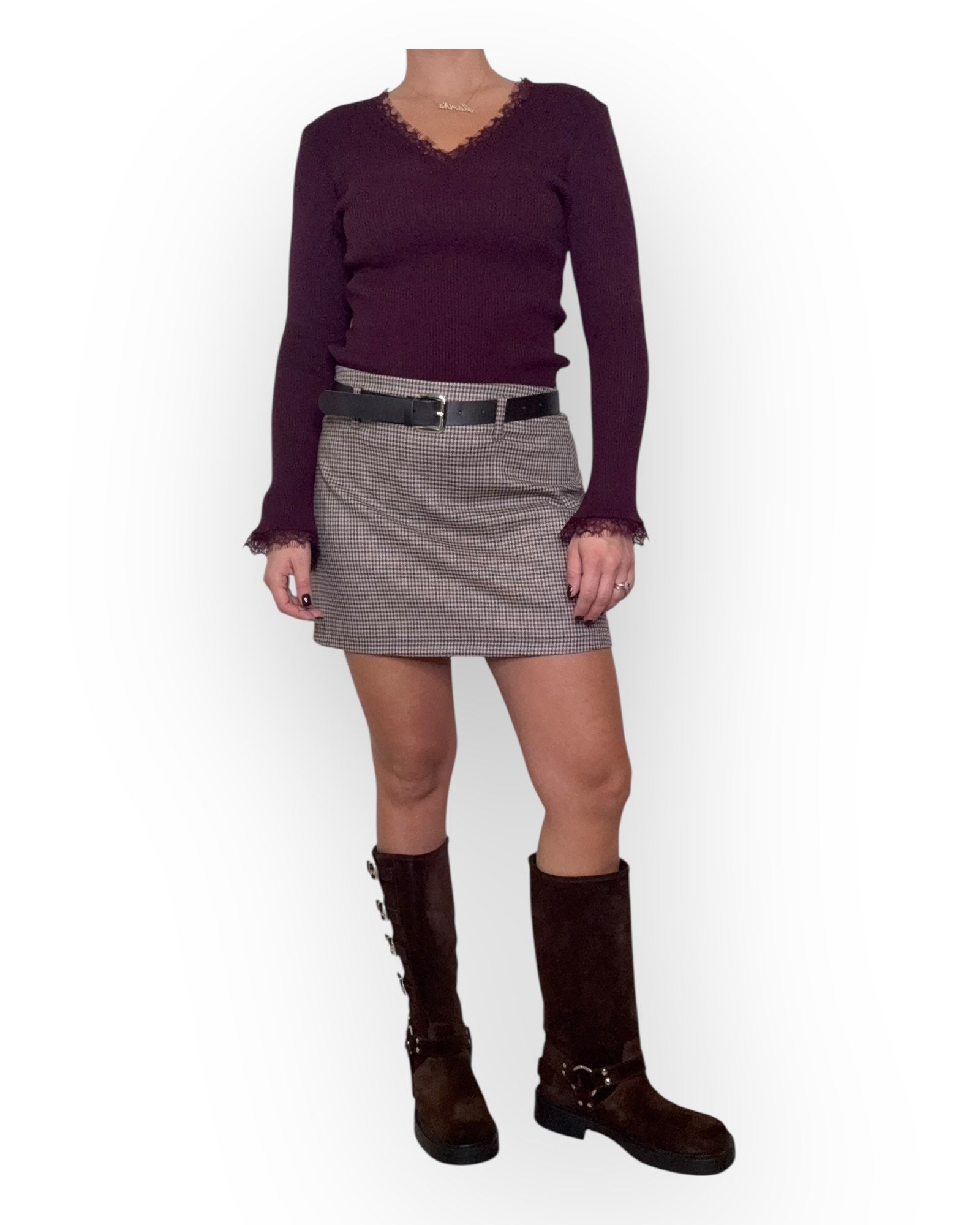 MINIGONNA HAVE ONE A FANTASIA PIED DE POULE CON CINTURA IN VITA