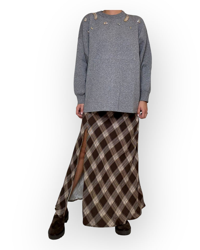 GONNA LUNGA HAVE ONE CON SPACCO LATERALE E CINTURONE,A FANTASIA TARTAN
