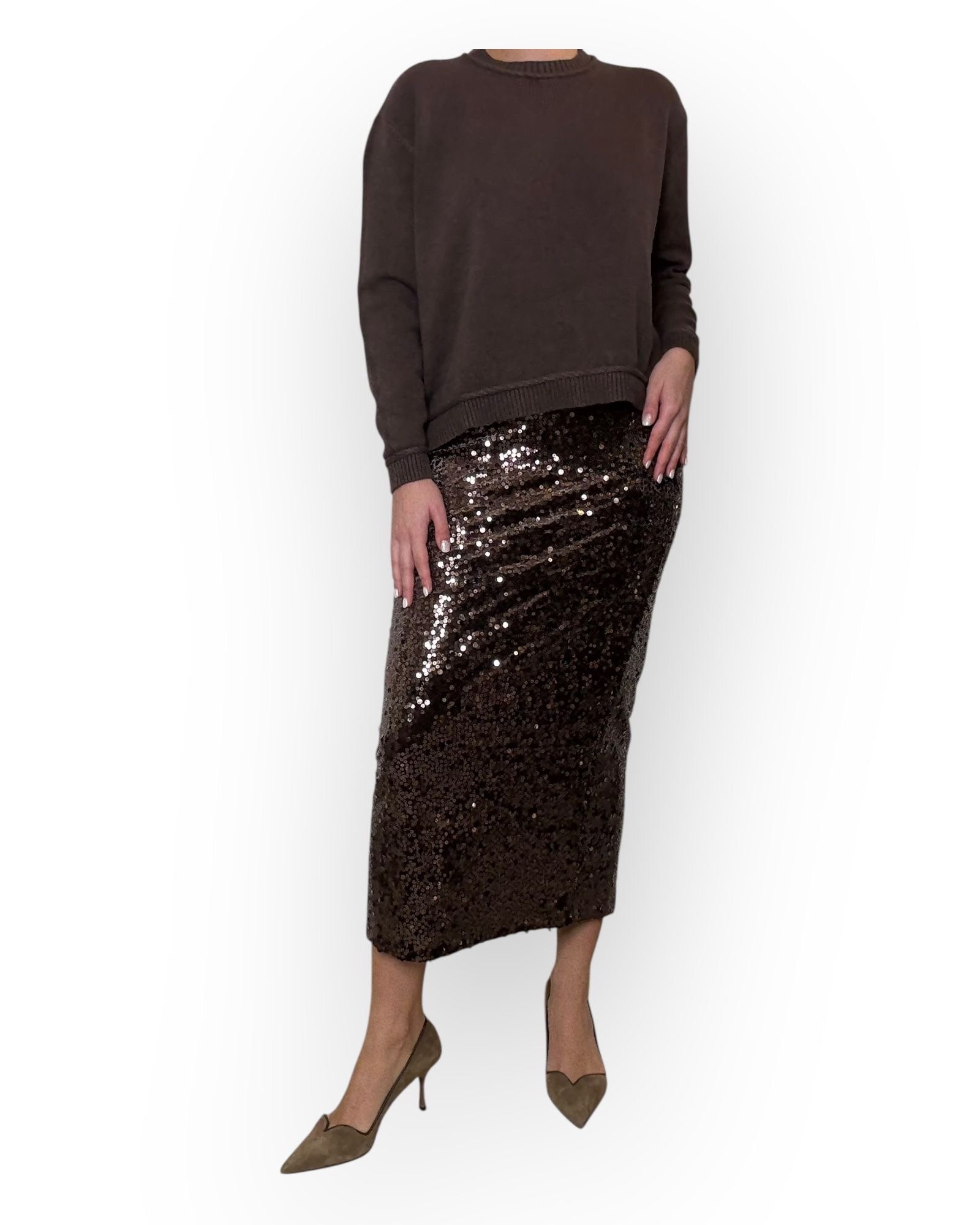 GONNA LONGUETTE HAVE ONE IN PAILETTES CON ZIP DIETRO E SPACCO