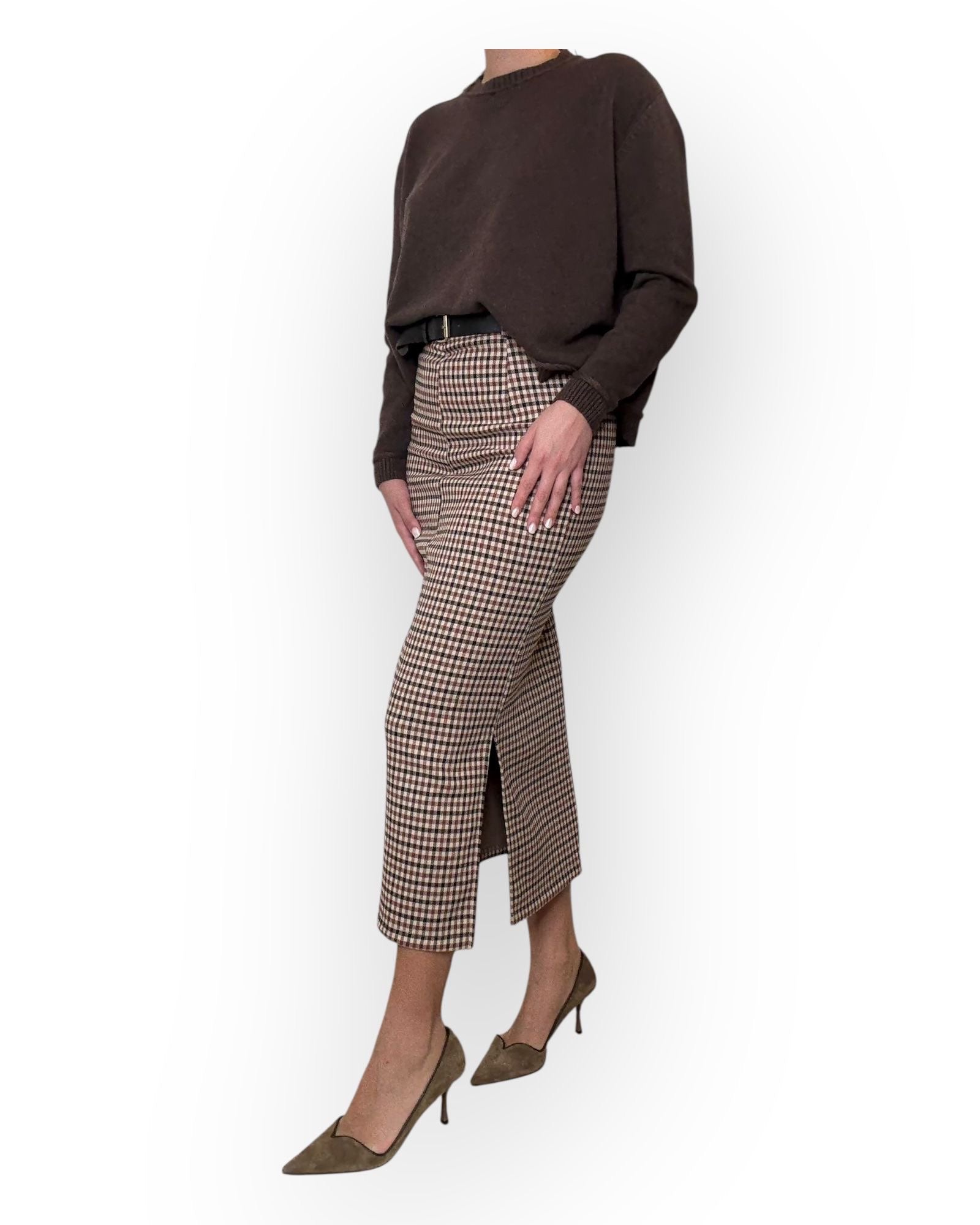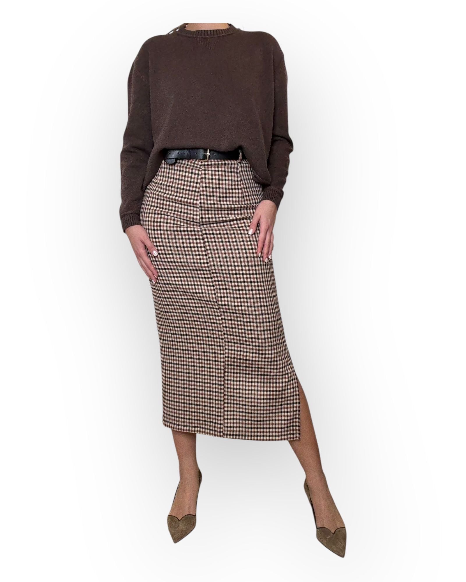 GONNA LONGUETTE HAVE ONE A FANTASIA QUADRETATTA CON CINTURA IN VITA E SPACCO SUL RETRO