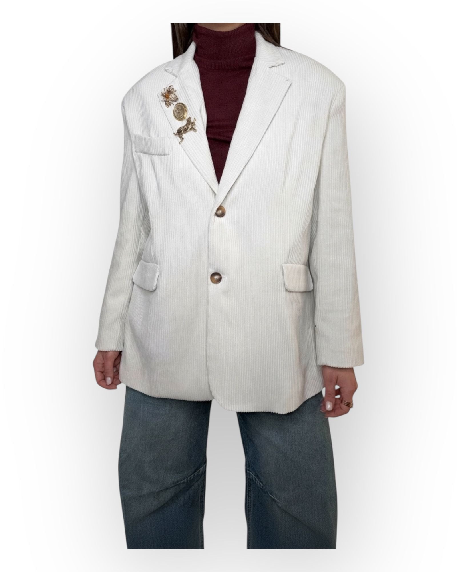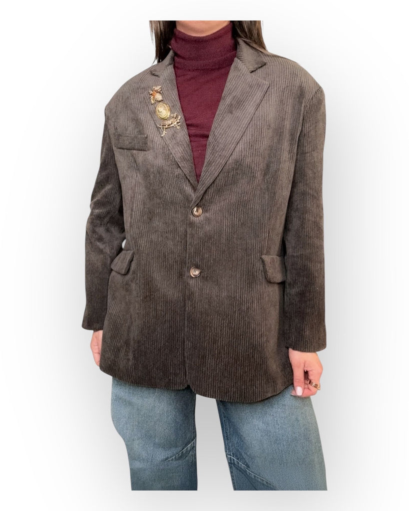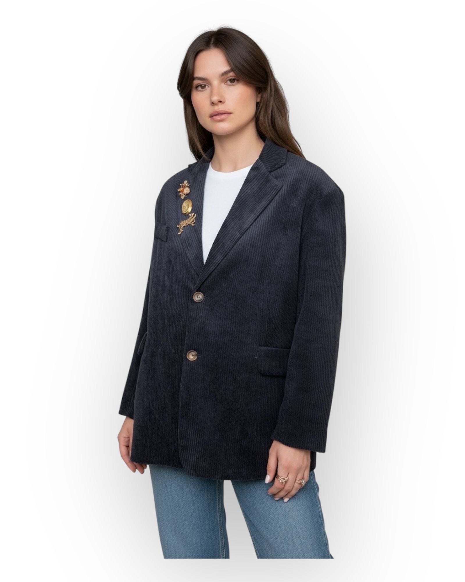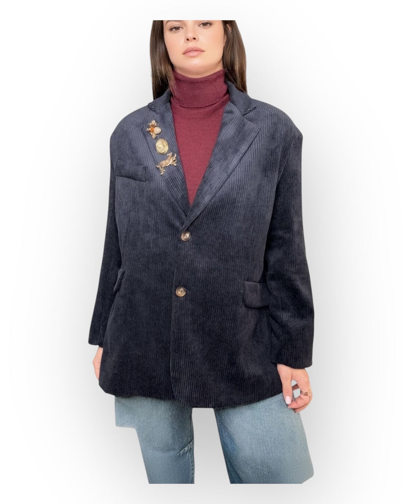 GIACCA OVER MONOPETTO IN VELLUTO CON SPILLE SUL REVER