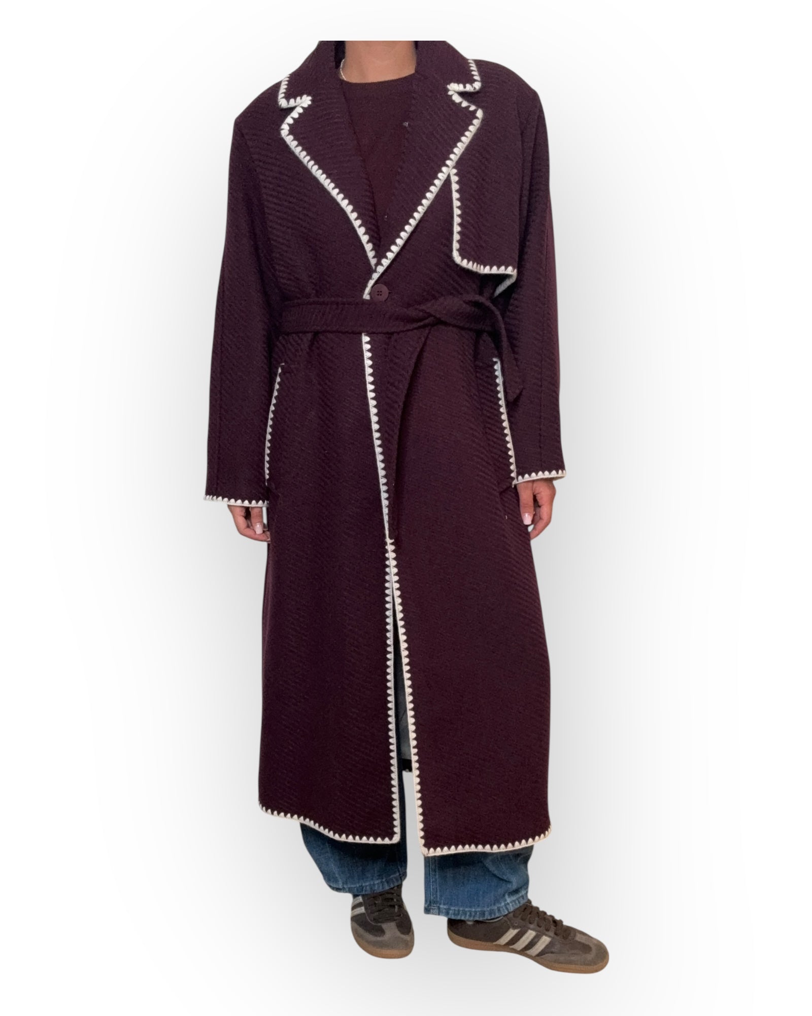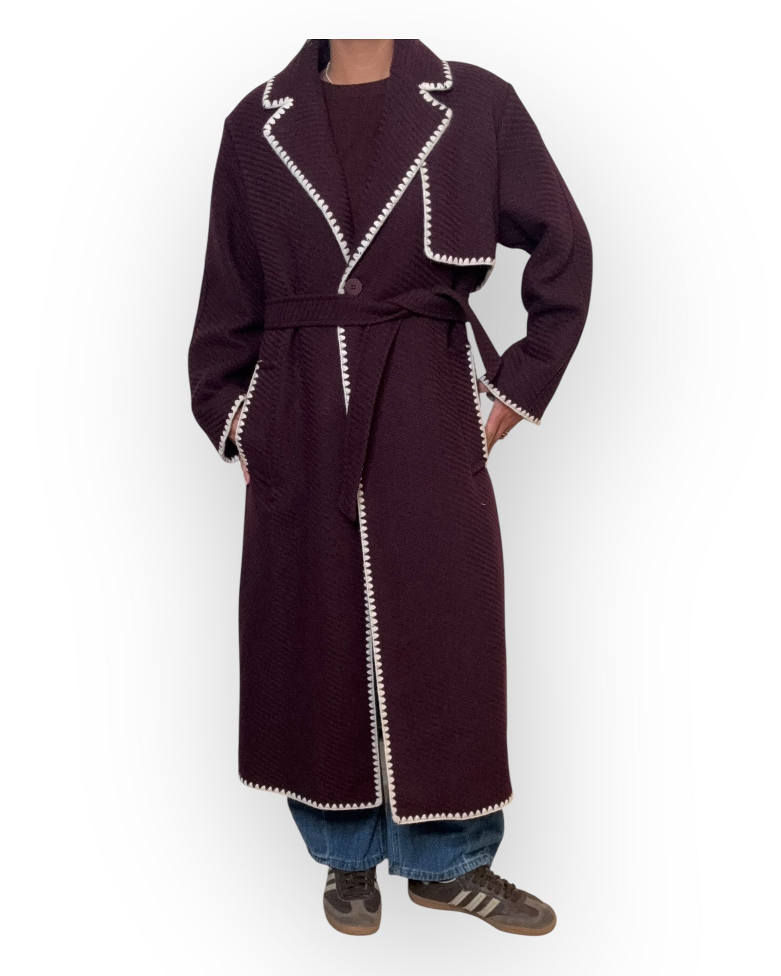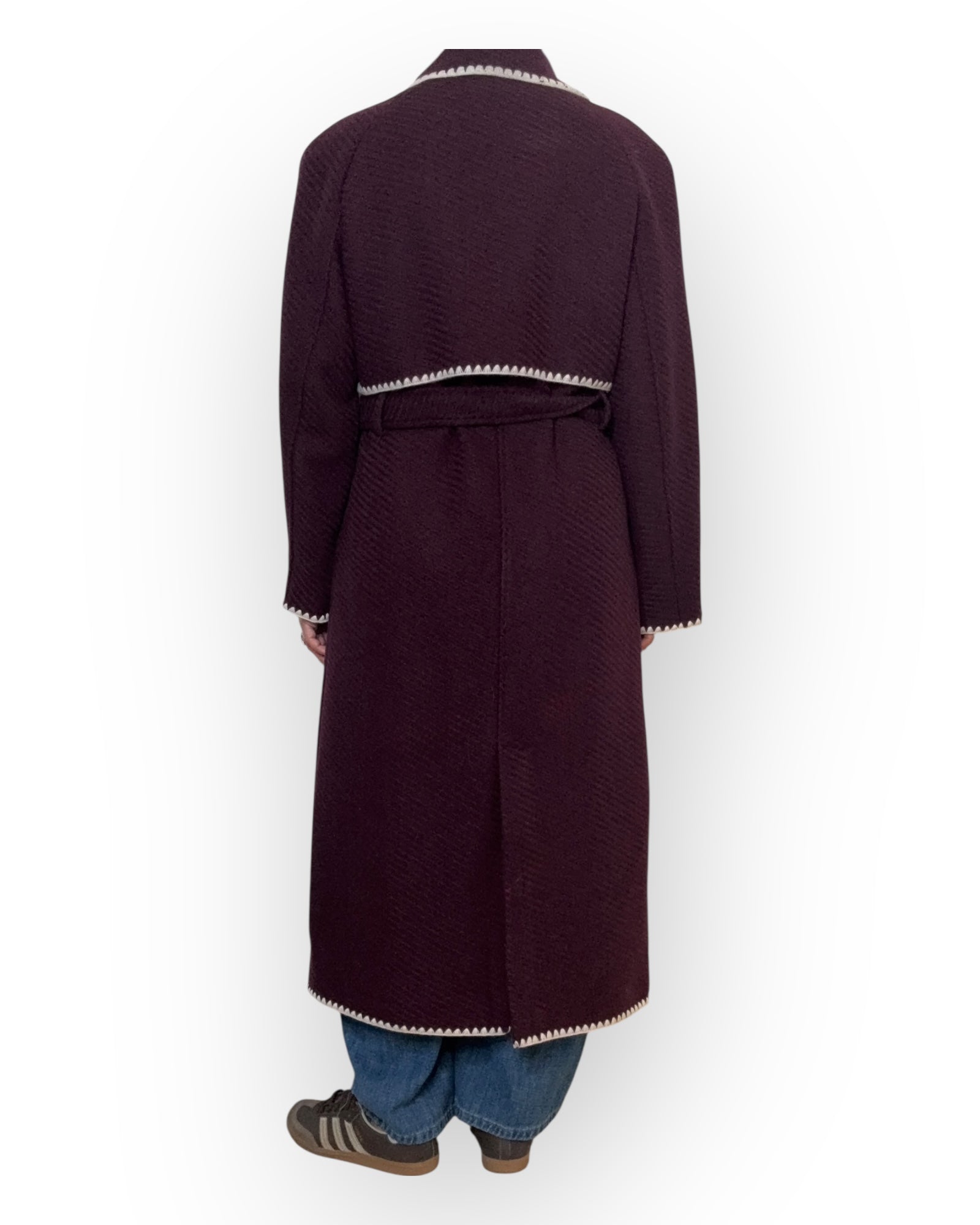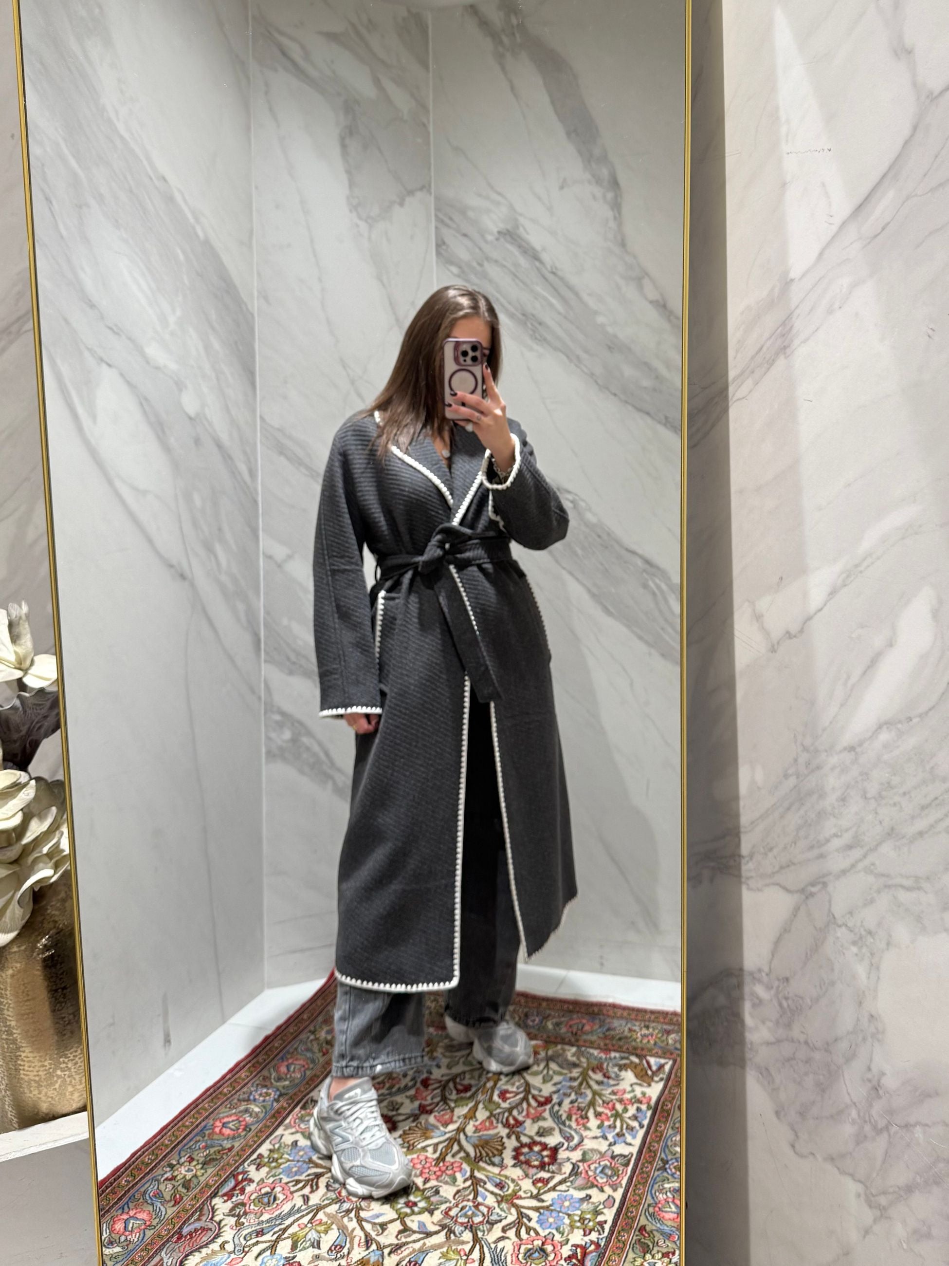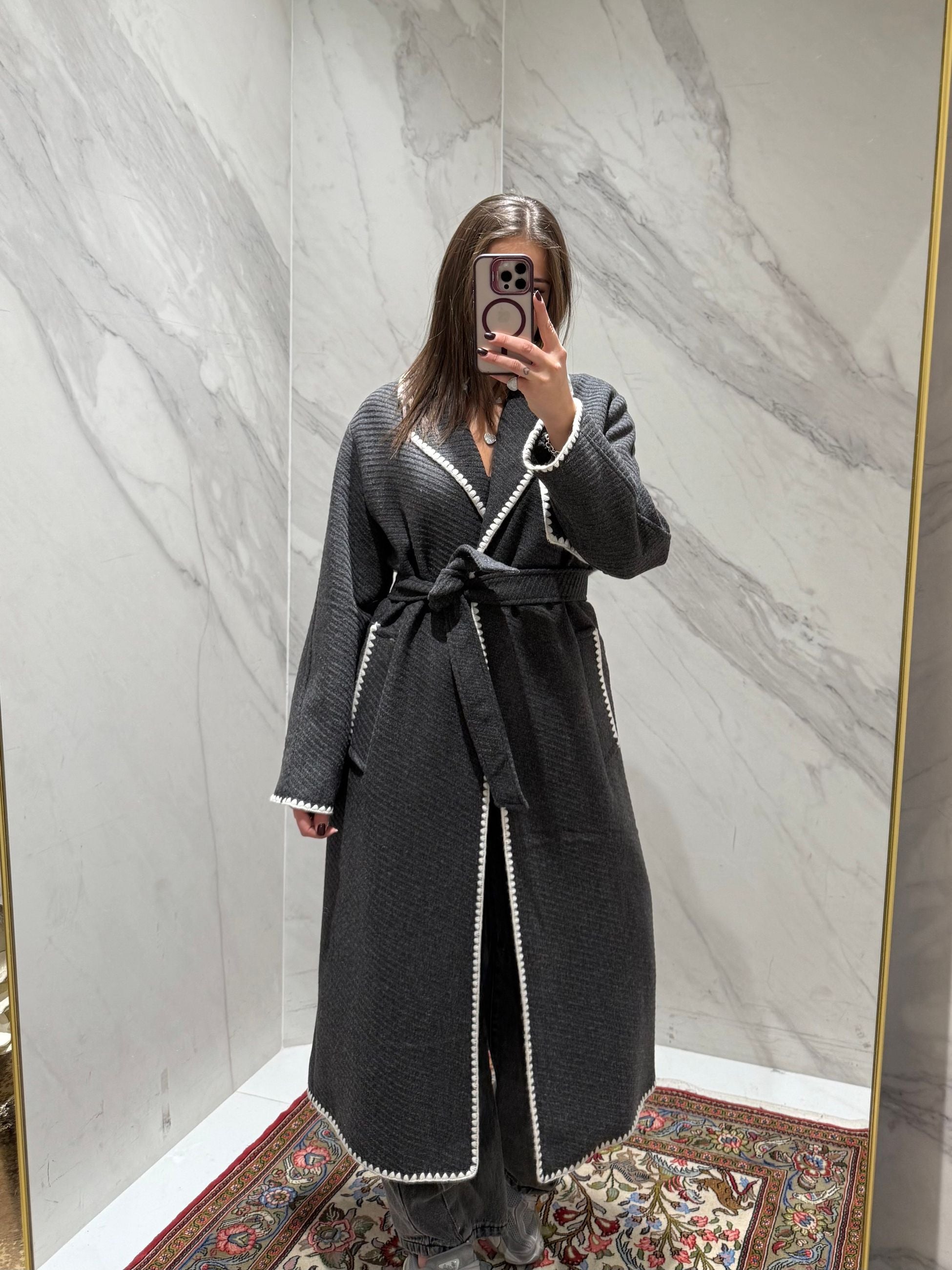 Cappotto modello vestaglia over con riporti in contrasto