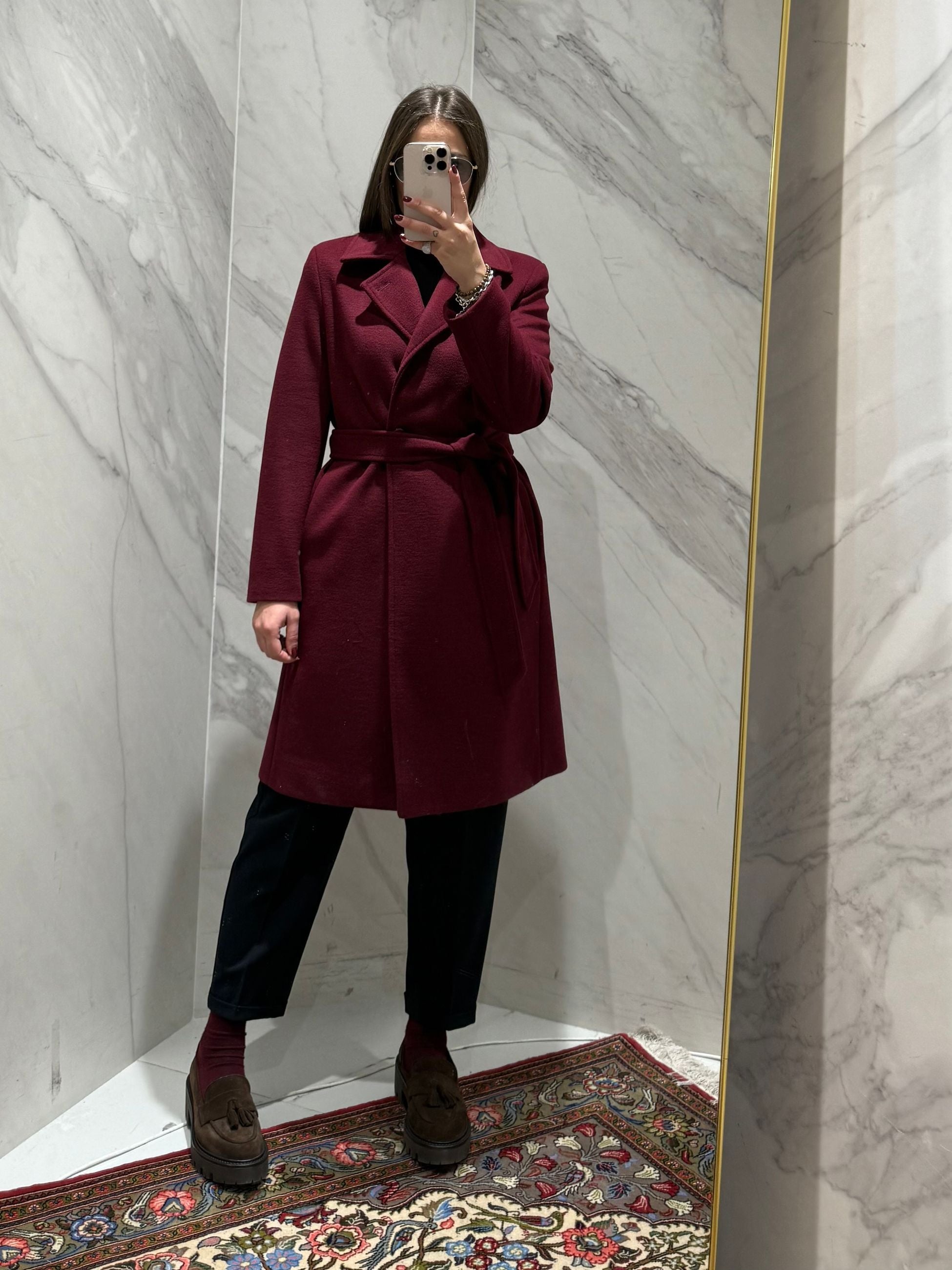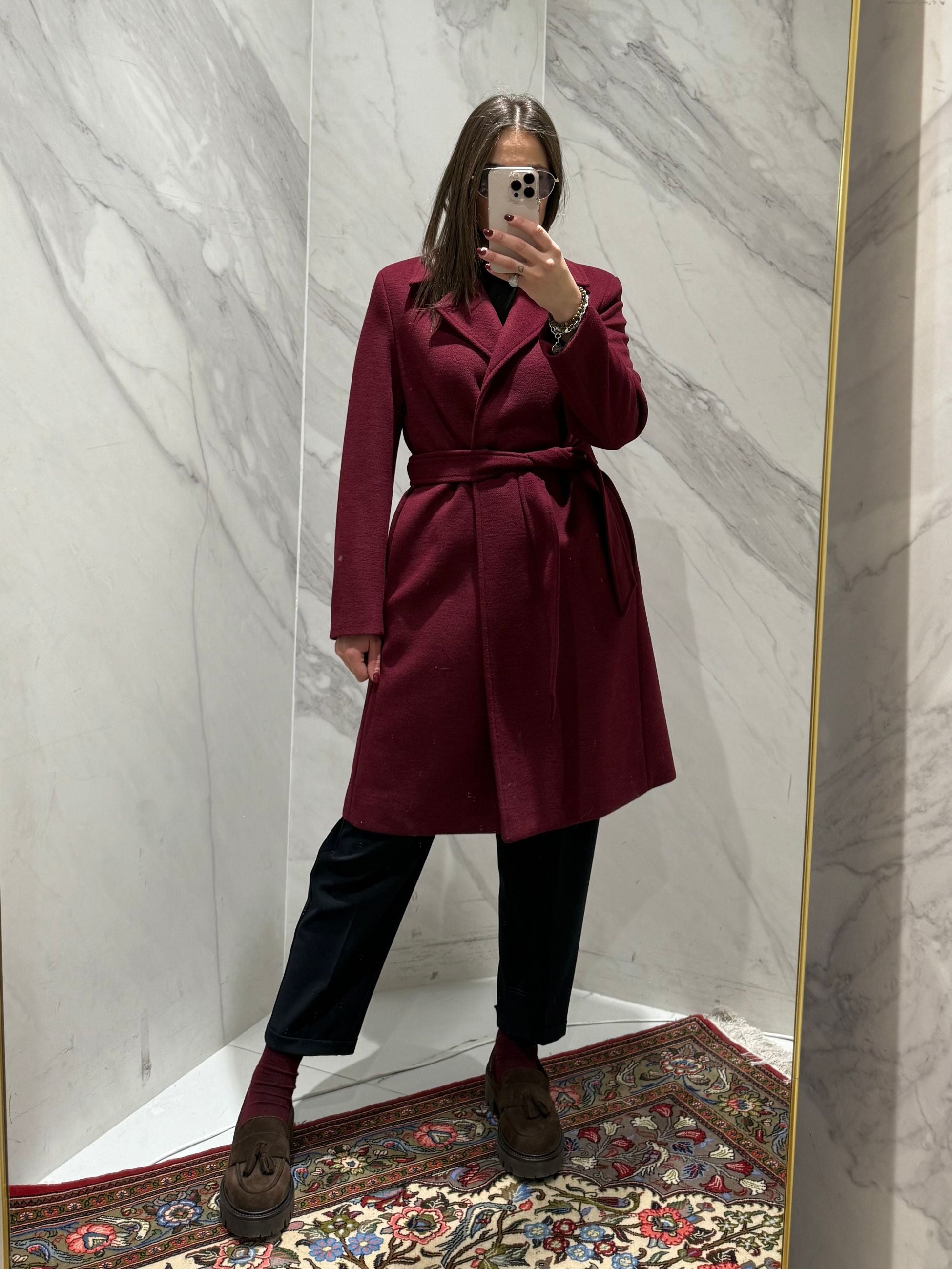 CAPPOTTO DOPPIO PETTO CON CINTURA IN VITA, LUNGHEZZA MEDIA.