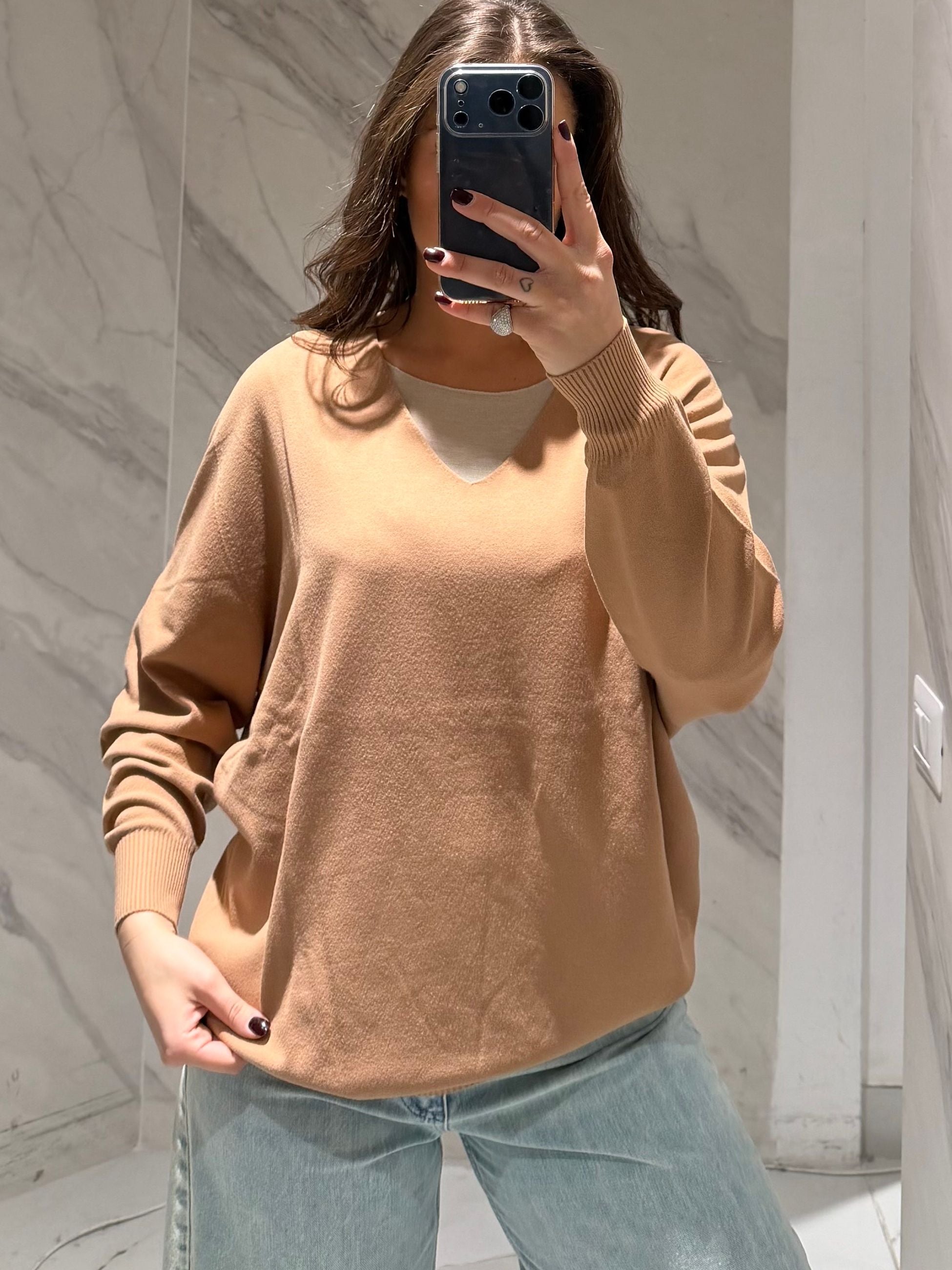 MAGLIA CON SCOLLO V MODELLO OVER.