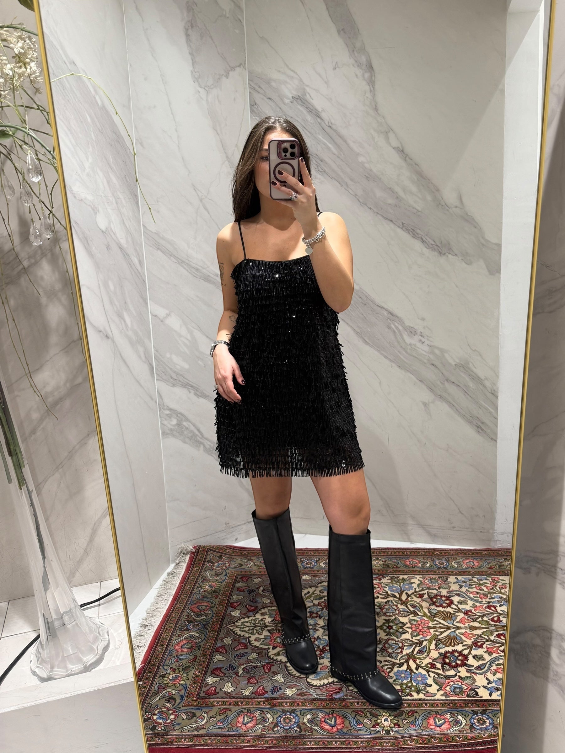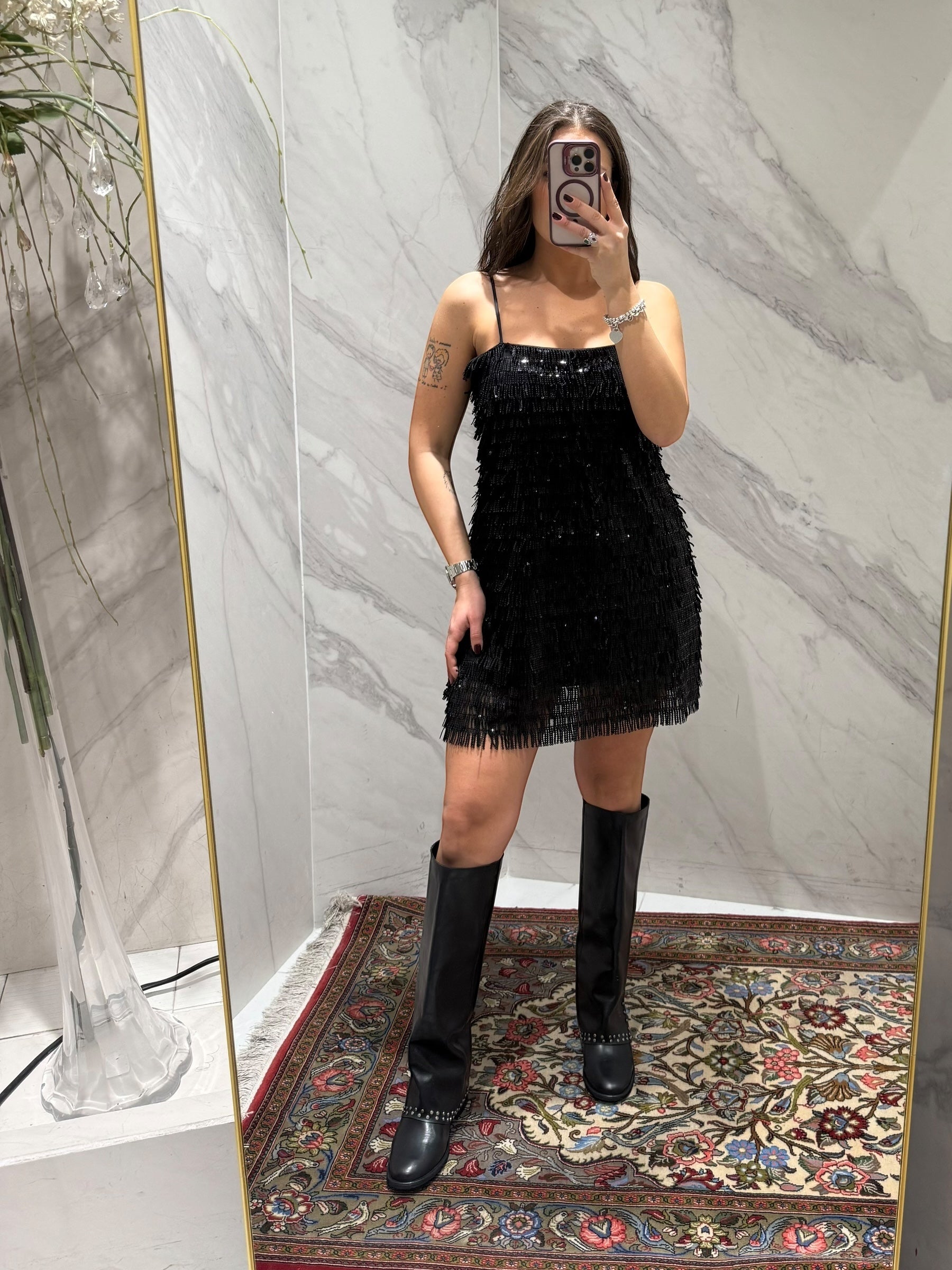 ABITO CORTO KONTATTO CON FRANGE IN PAILETTES