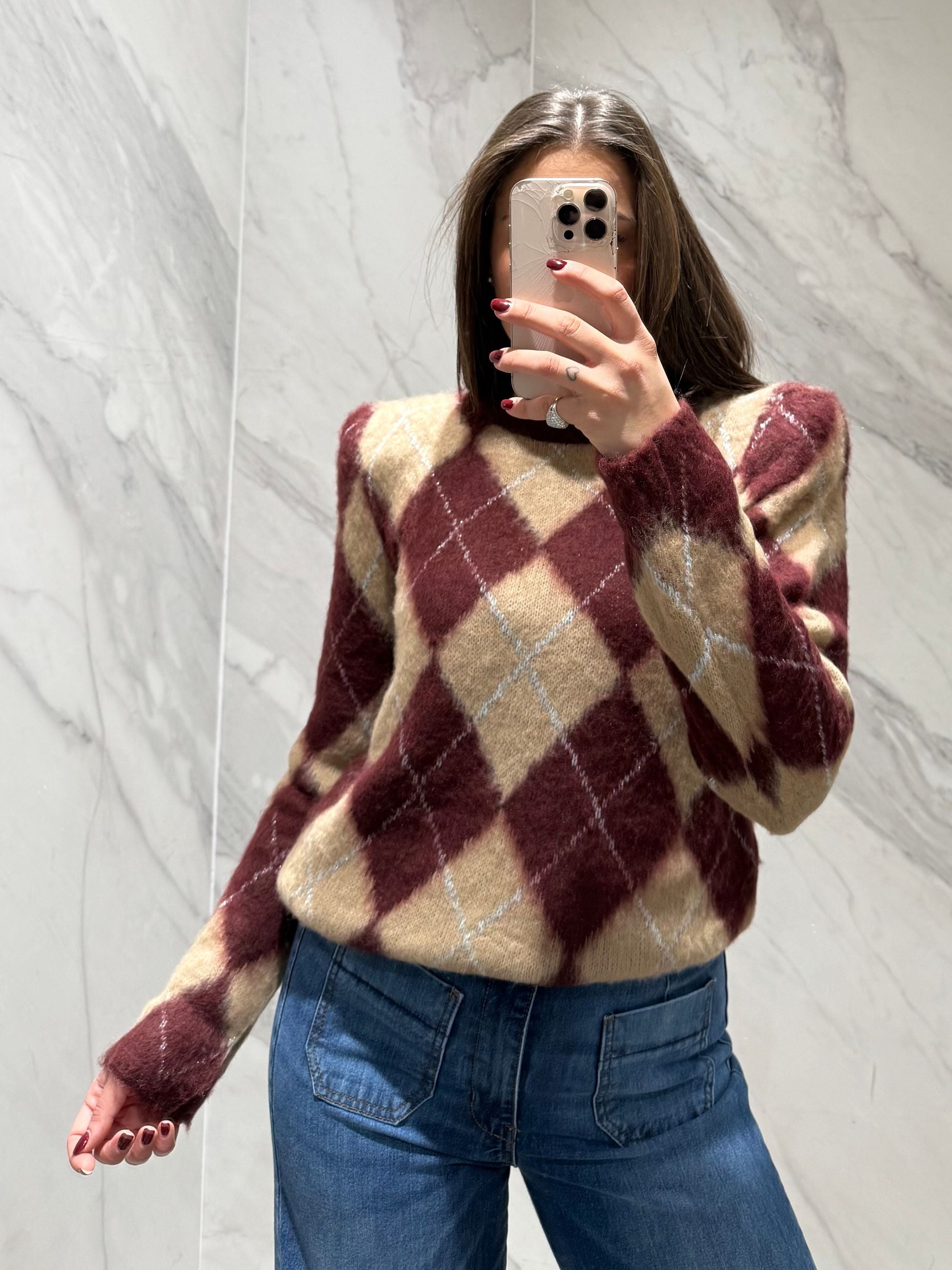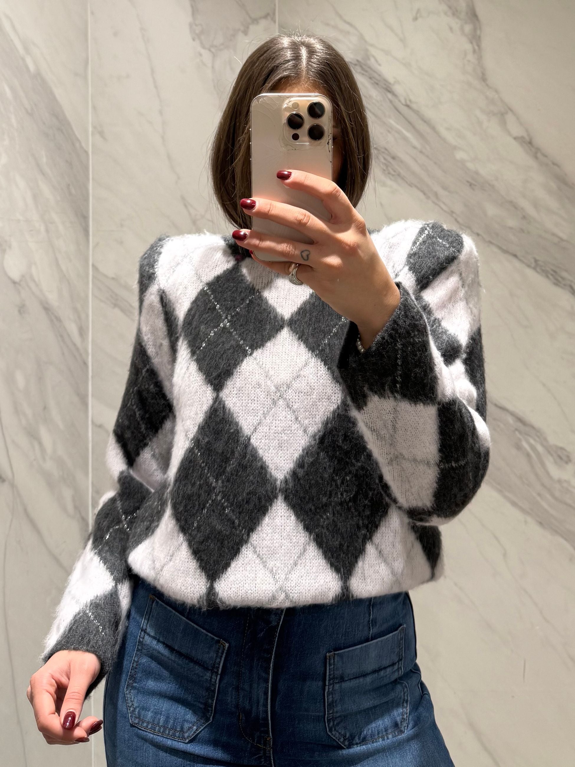 MAGLIONCINO A ROMBI CON SPALLINE IMBOTTITE CON FILO IN LUREX.