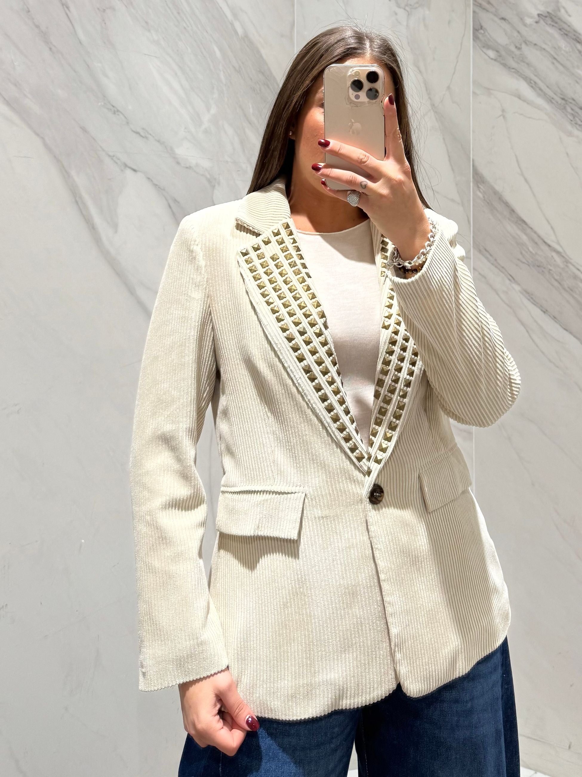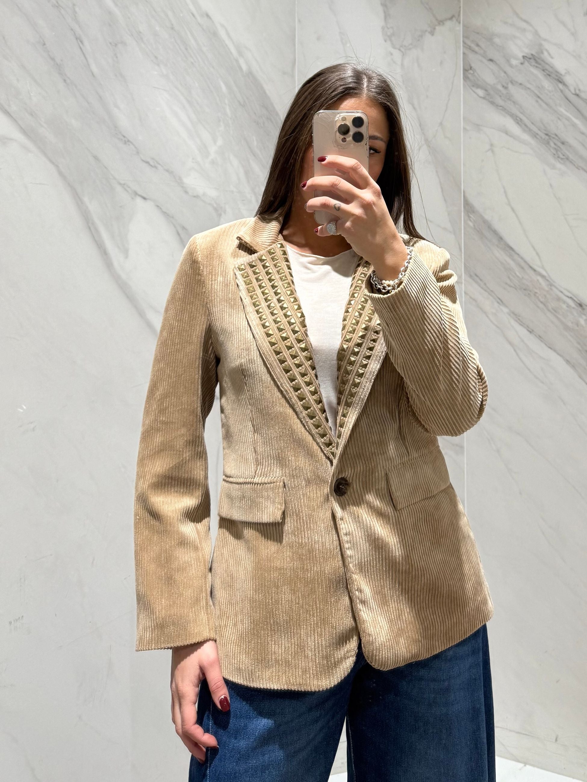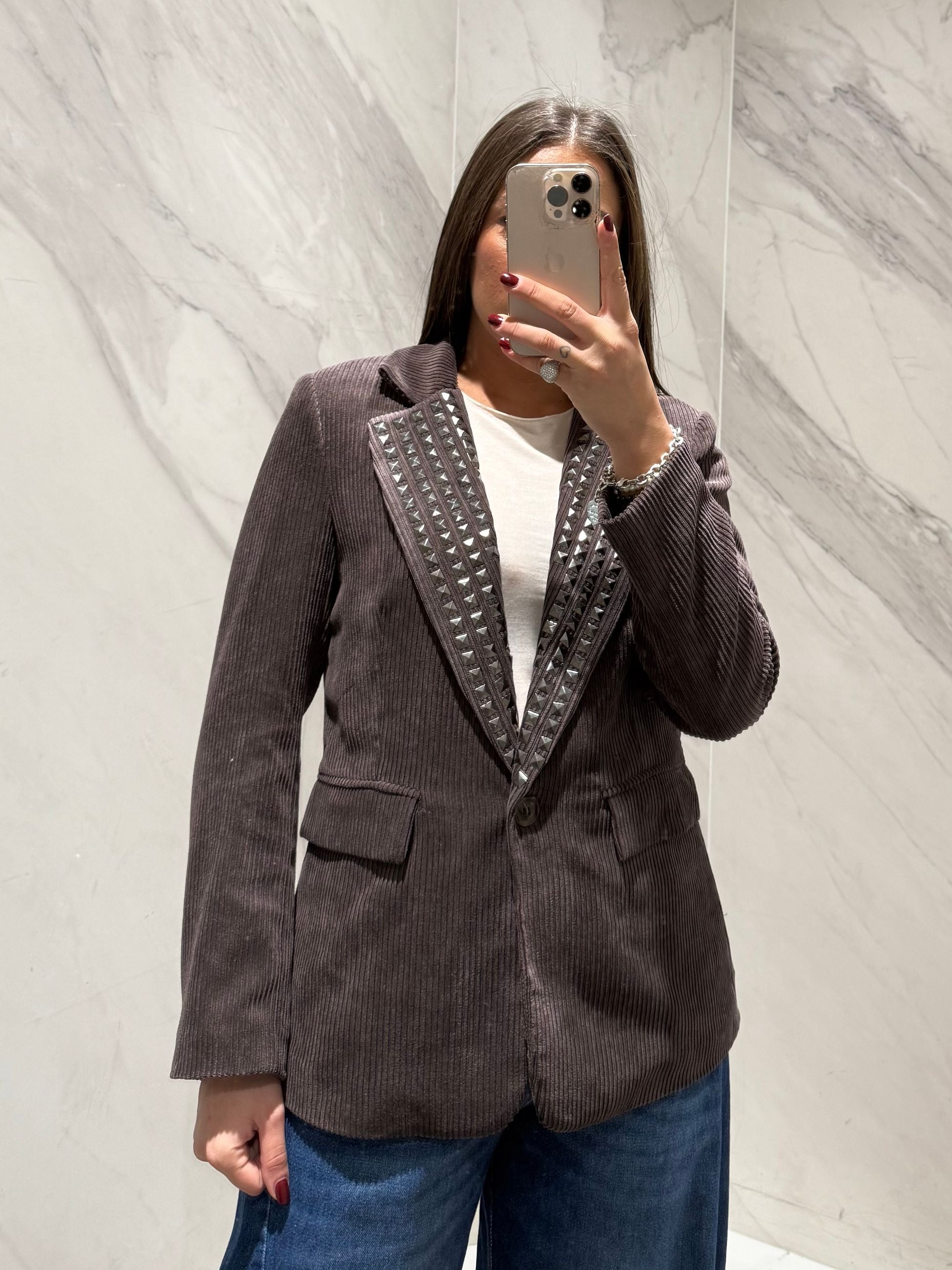 GIACCA MONOPETTO IN VELLUTO CON REVER CON BORCHIE.