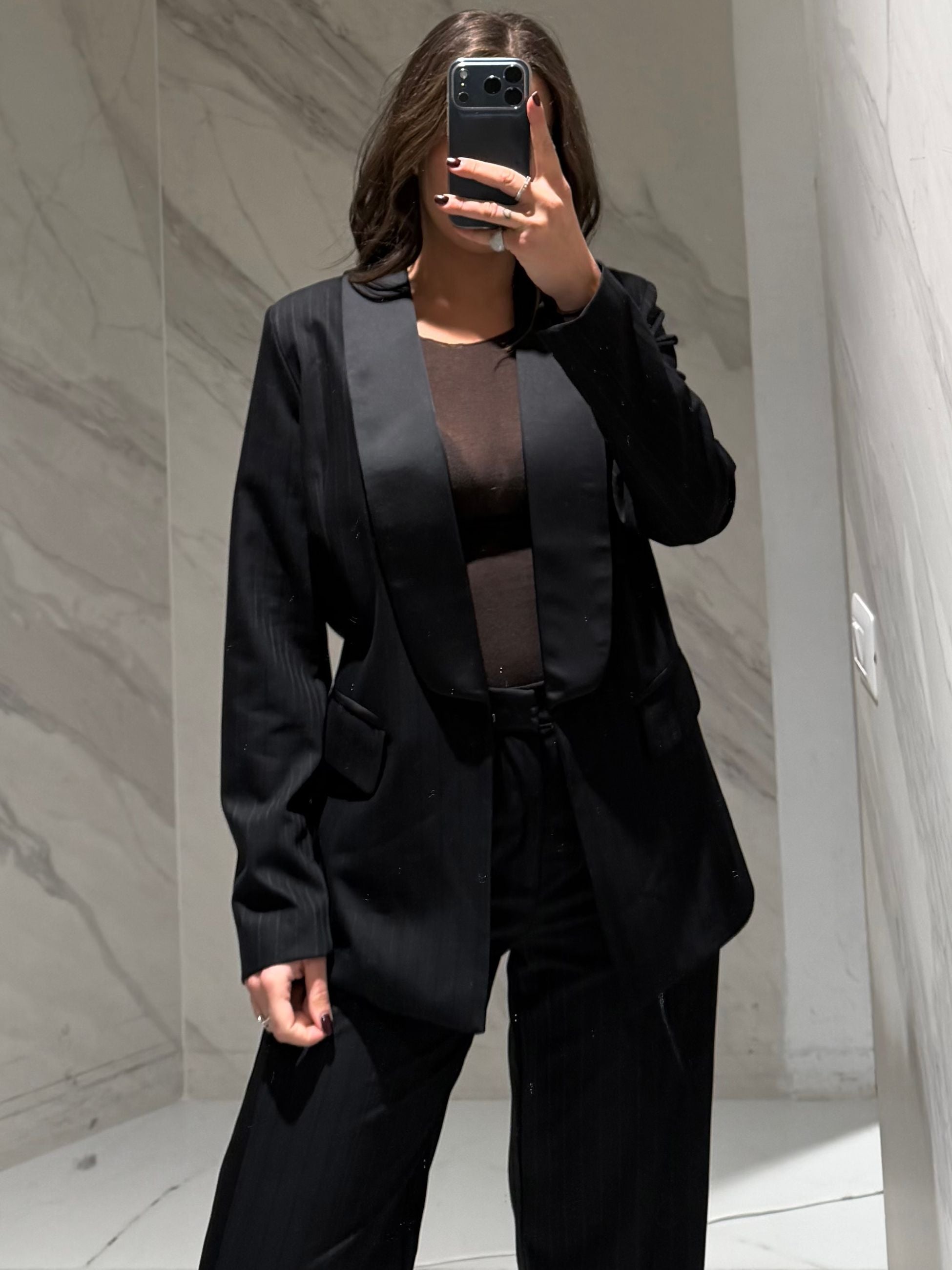 GIACCA NERA GESSATA CON REVER IN RASO.
