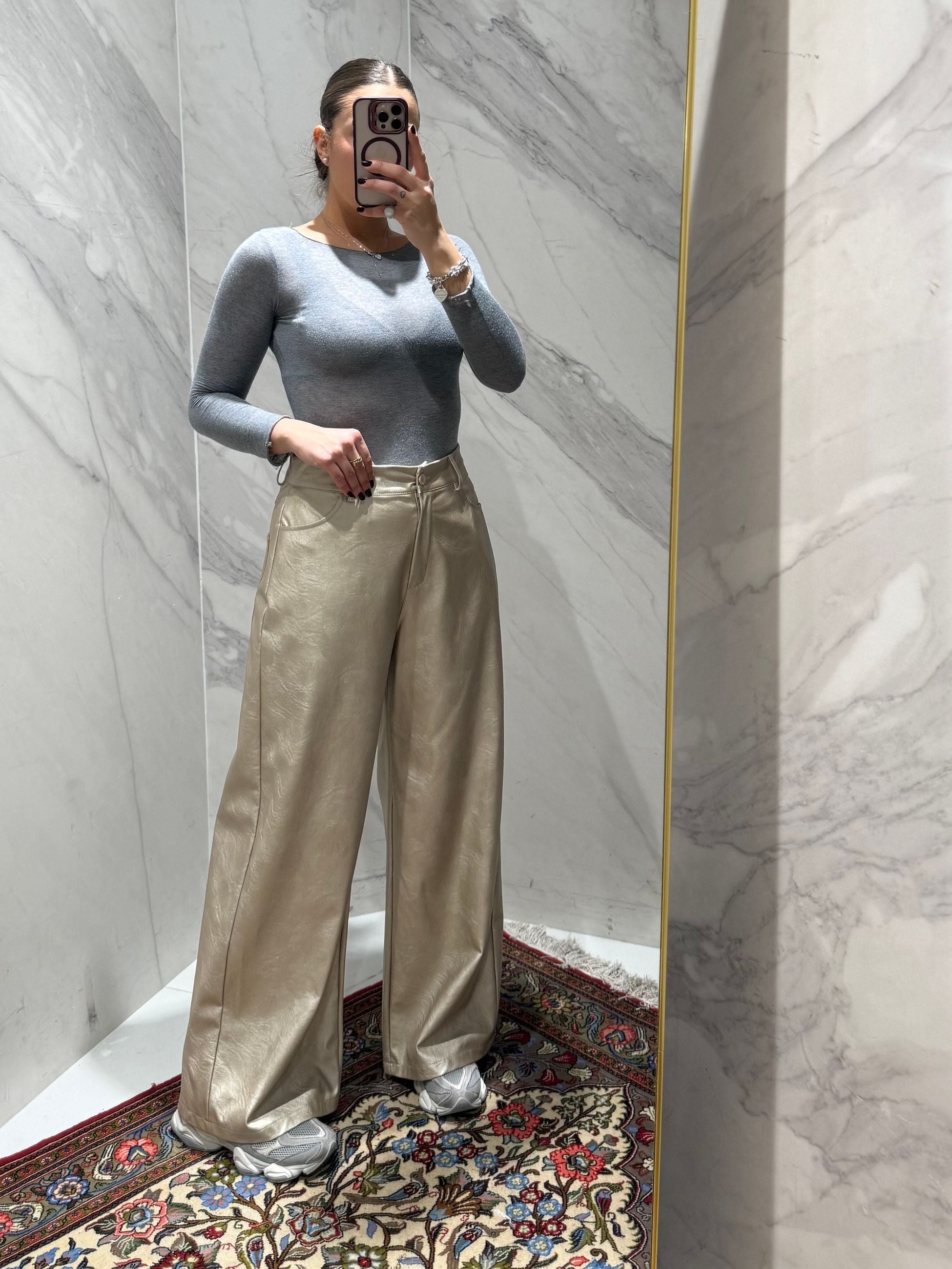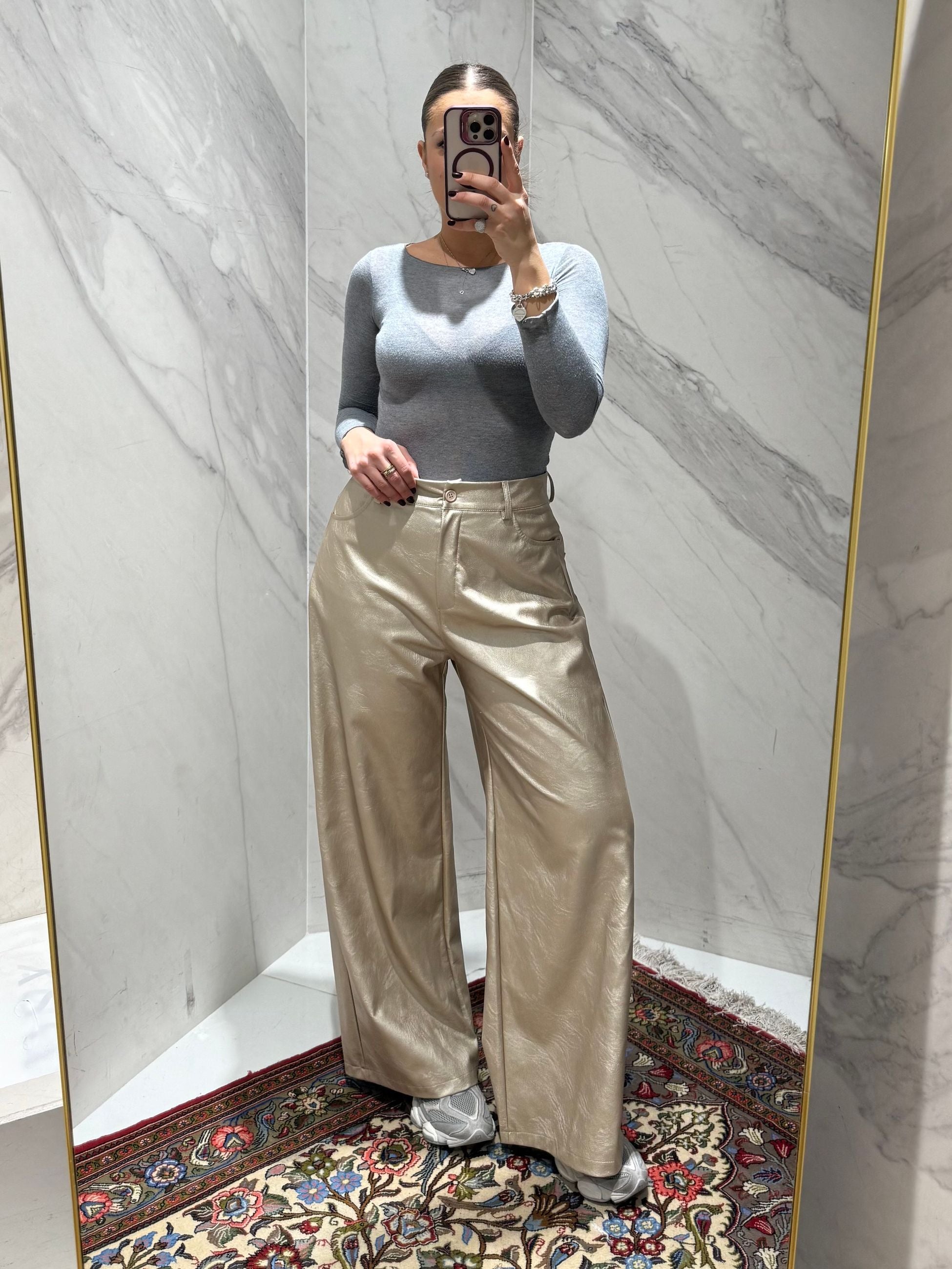 PANTALONE IN ECOPELLE TENSIONE IN A GAMBA DRITTA CON TASCHE SUL RETRO