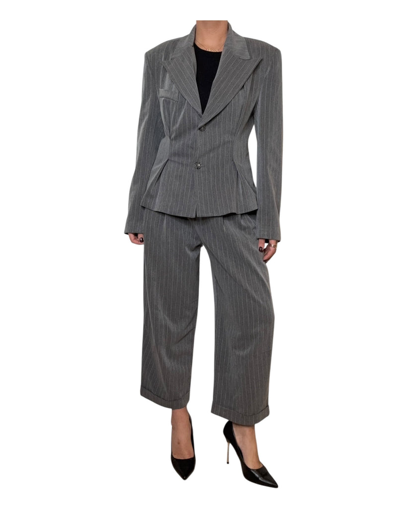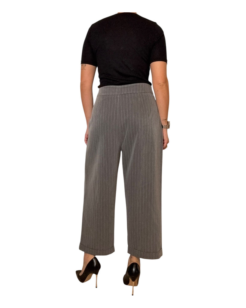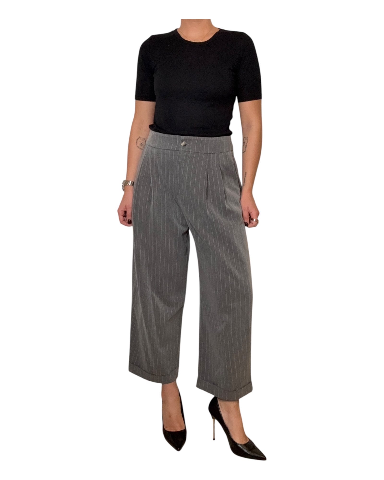 PANTALONE GESSATO CON PENCE SUL DAVAMTI E SVOLTINO.