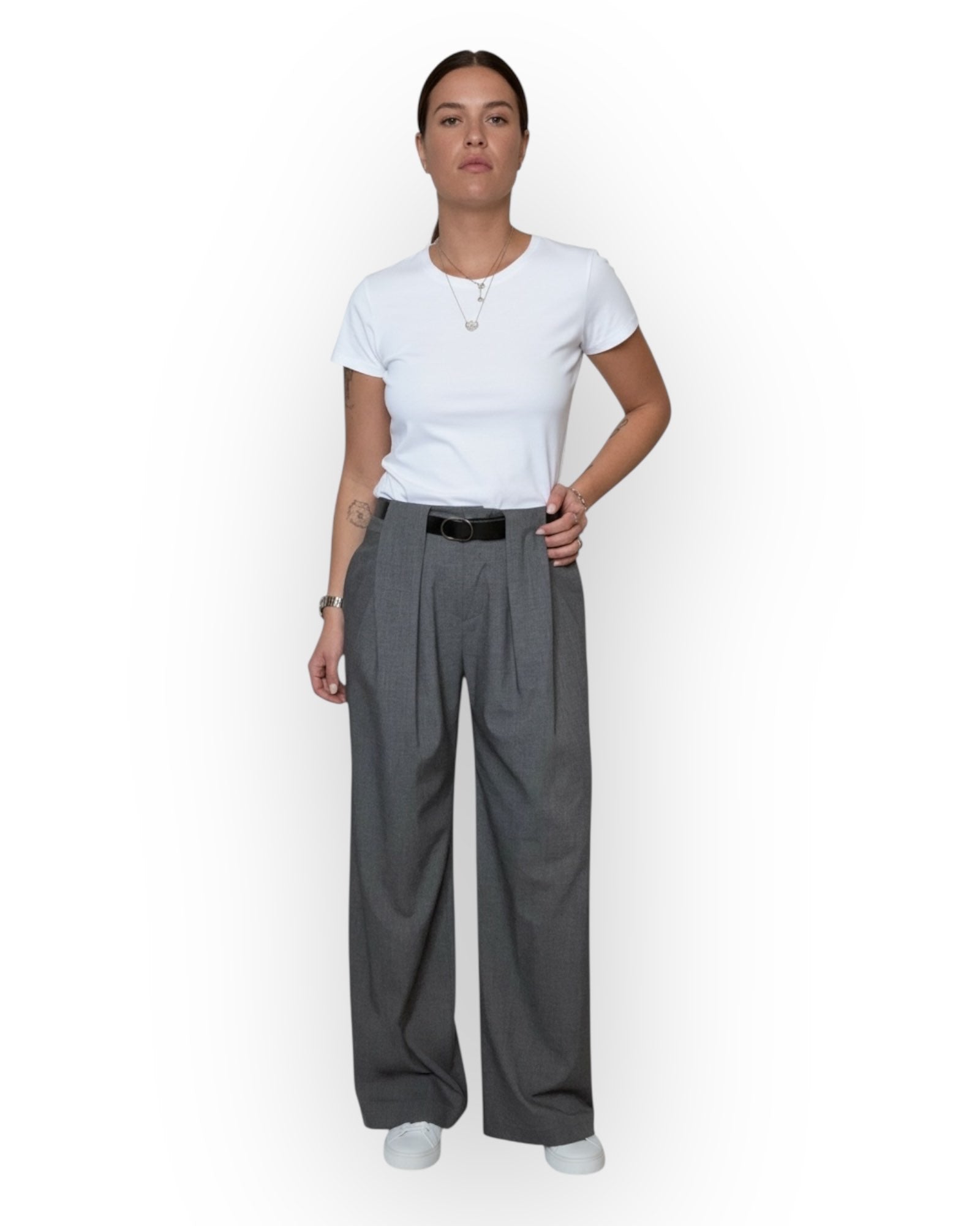 PANTALONE TENSIONE IN CON PENCES E CINTURA IN VITA