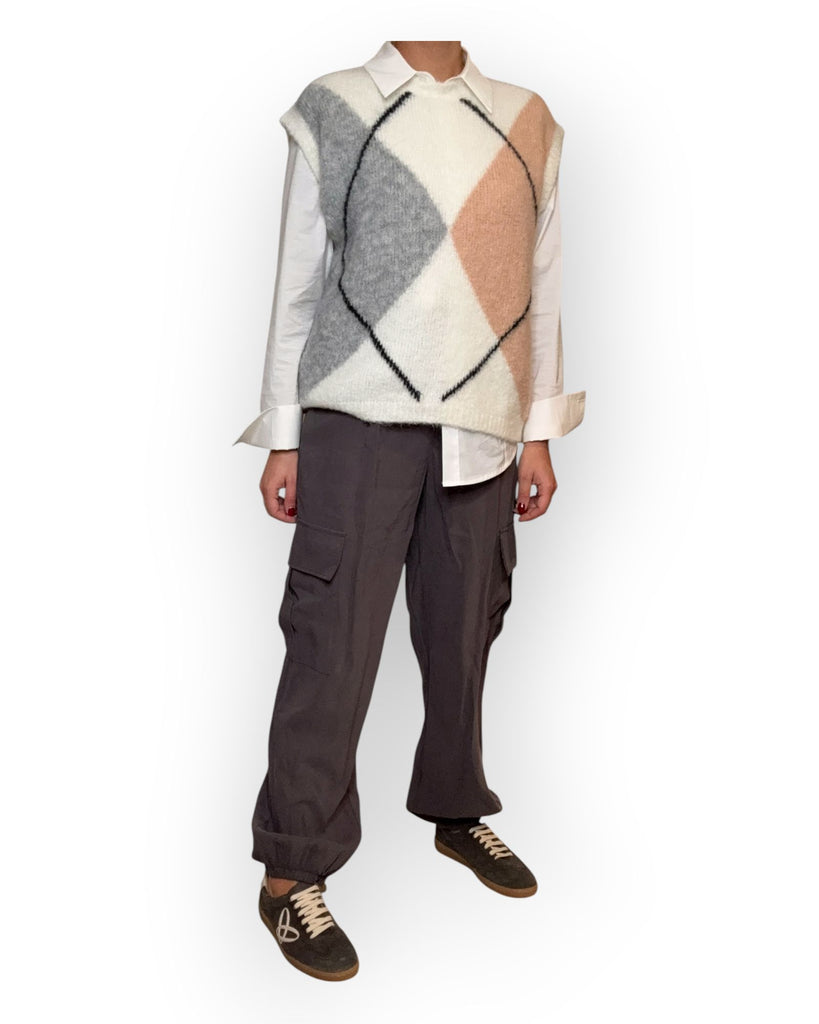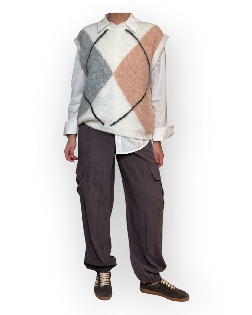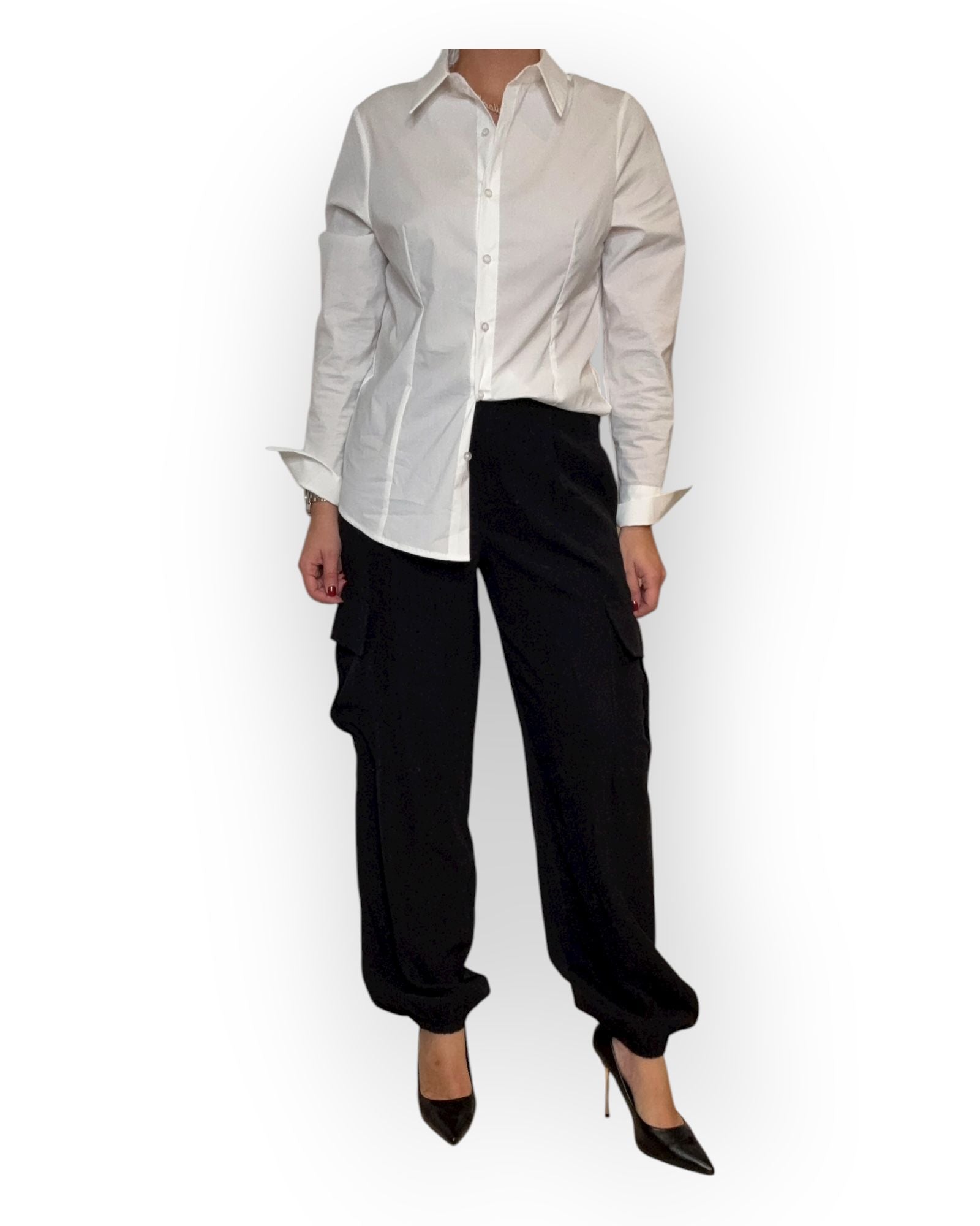 PANTALONE CARGO CON ELASTICO IN VITA E POLISINO.