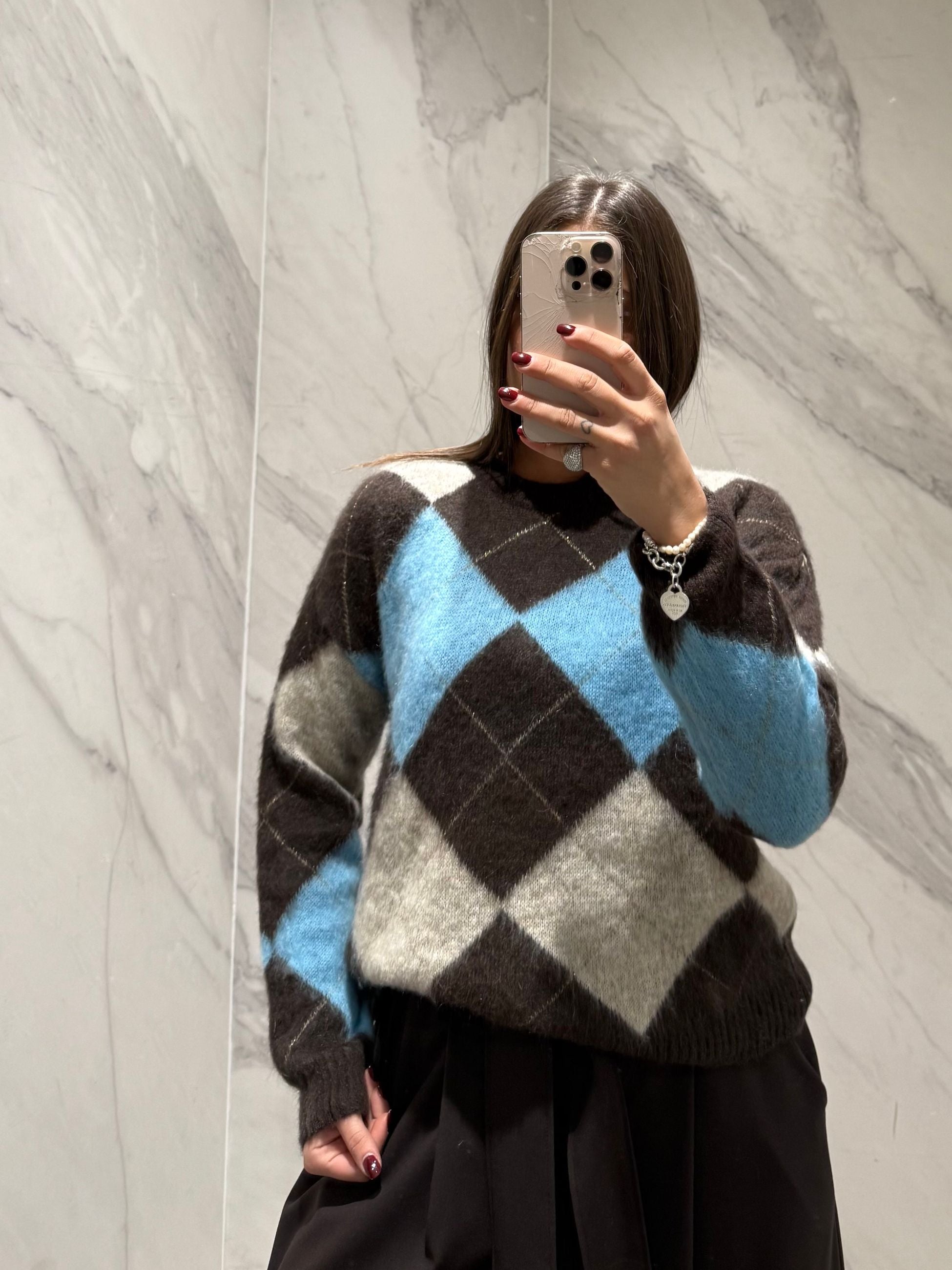 MAGLIONE GIROCOLLO A ROMBI TENSIONE IN