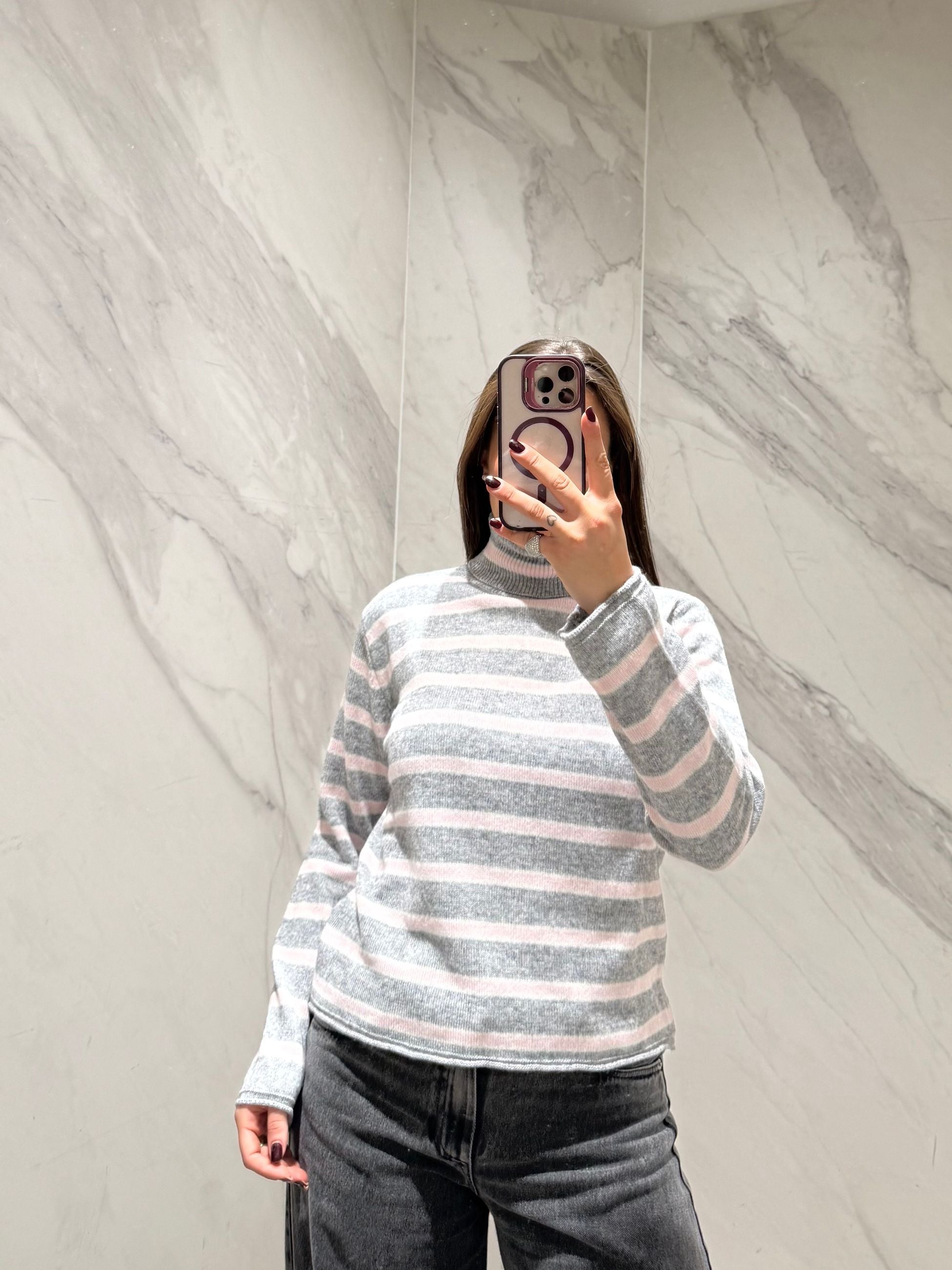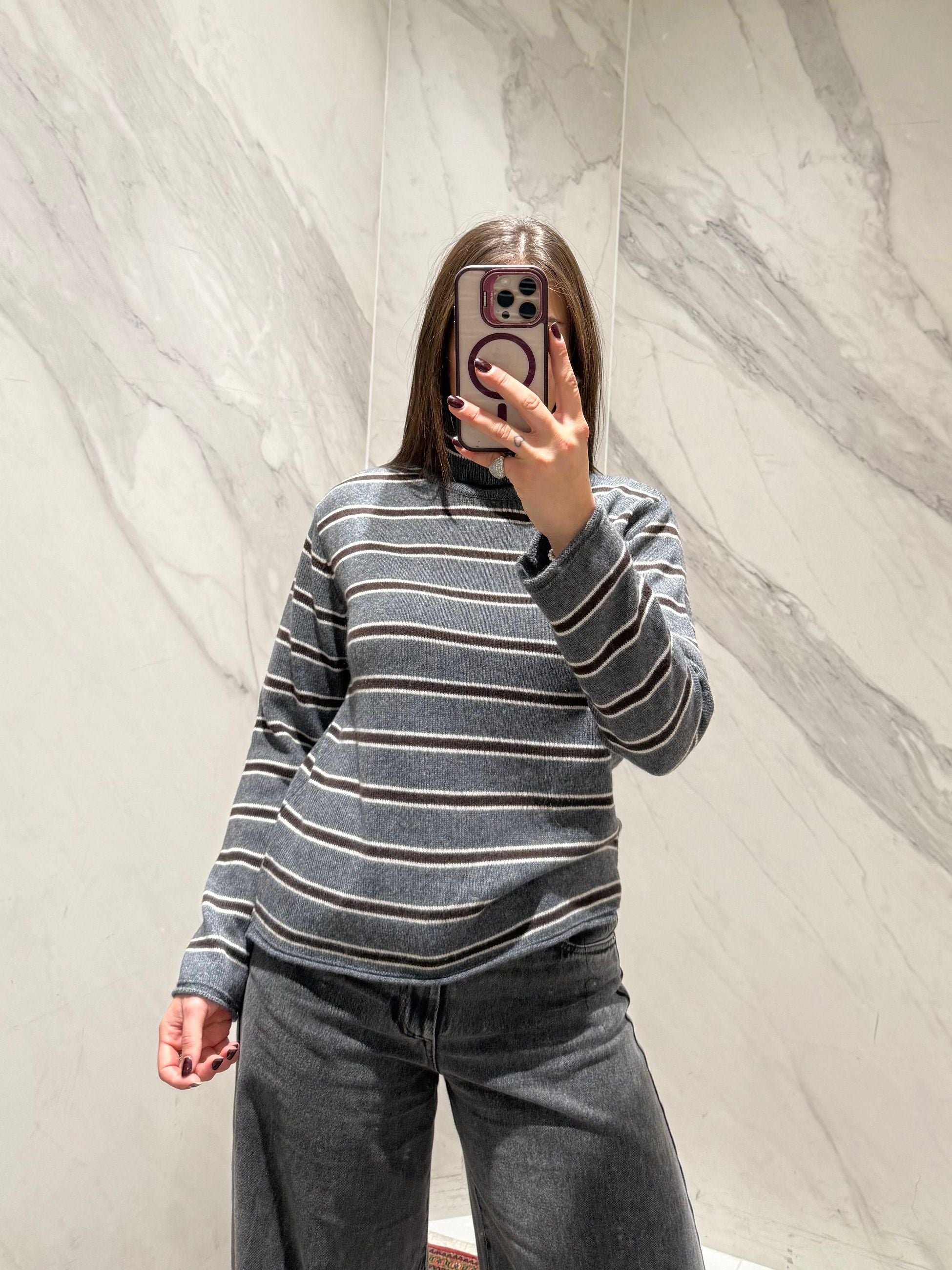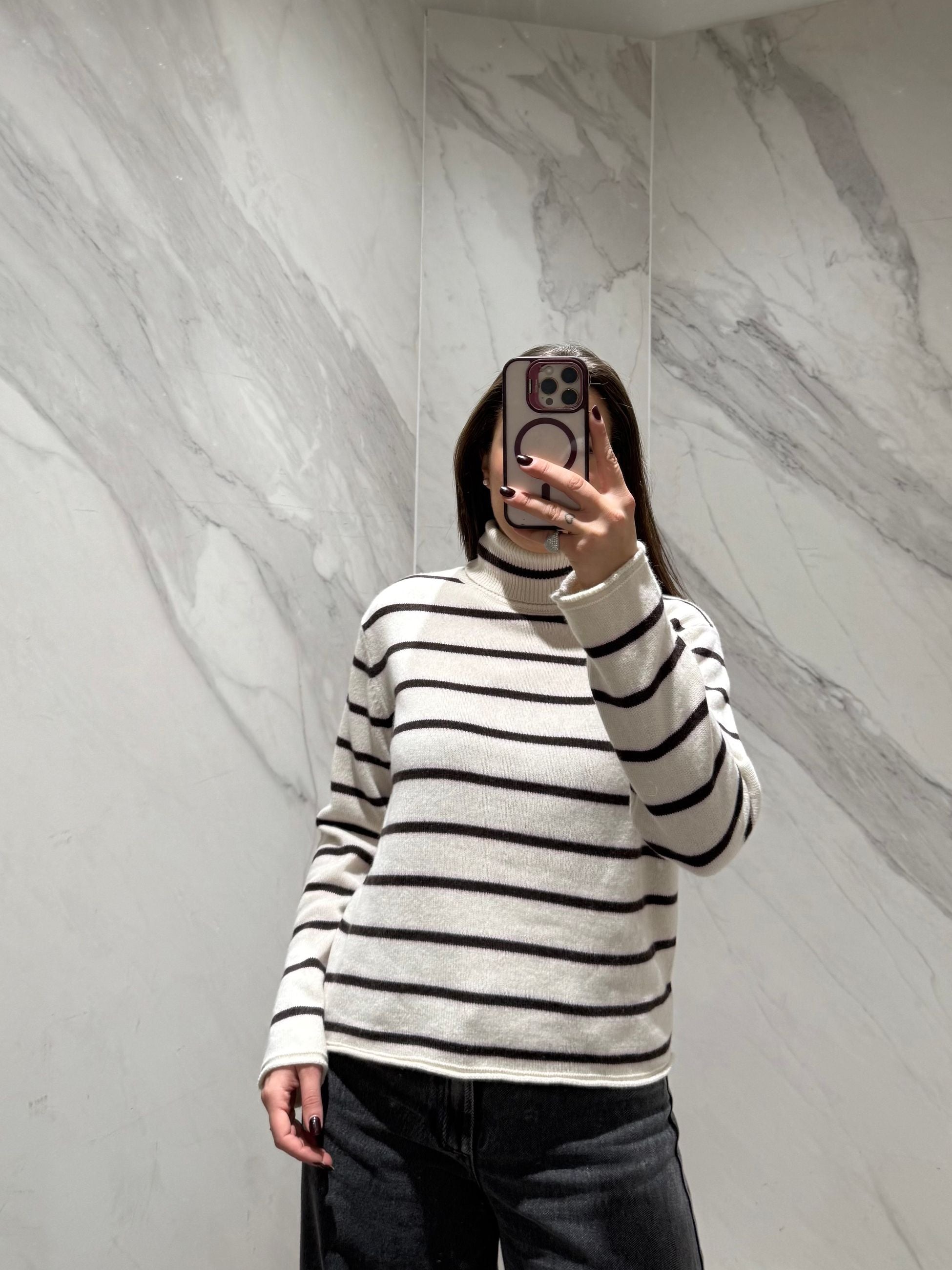 Maglionciono righe dolcevita, modello scatoletta