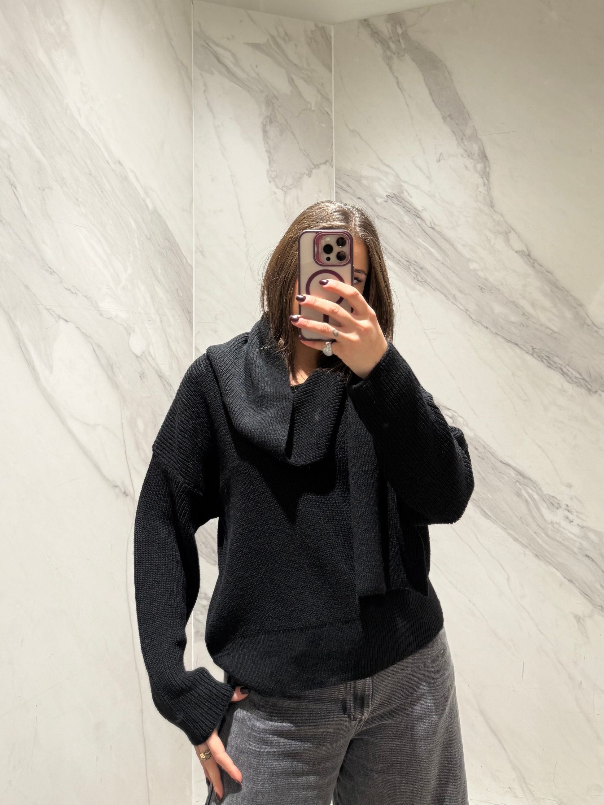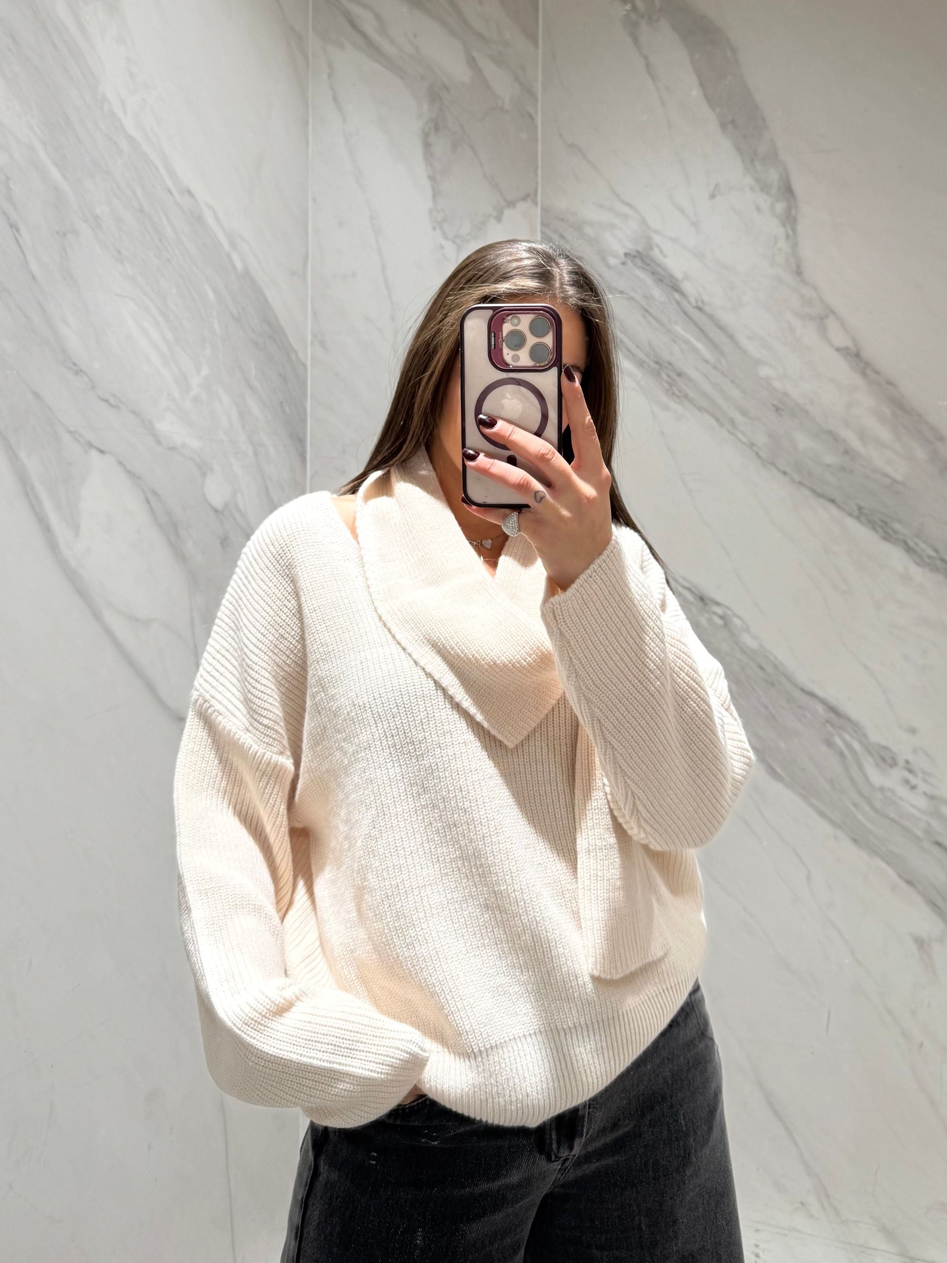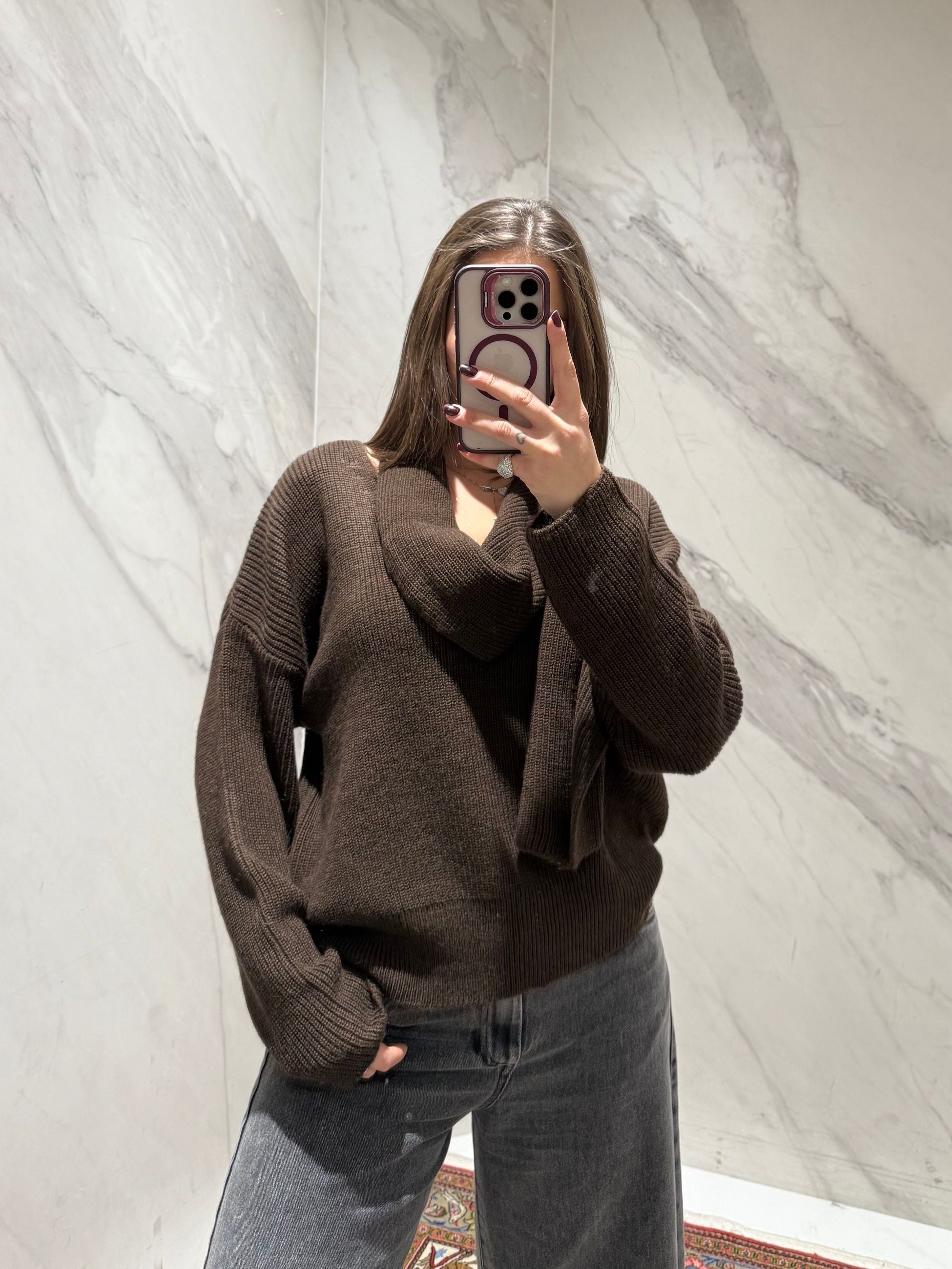 Maglioncino con scollo a v, con sciarpa incorporata