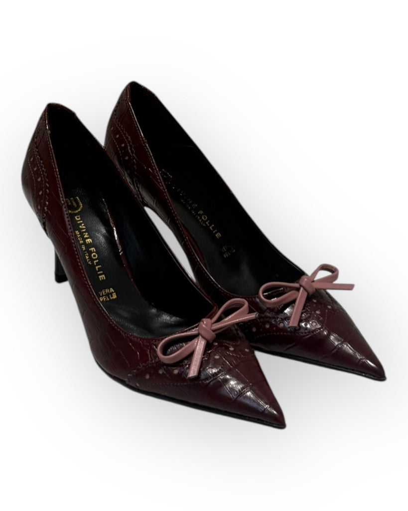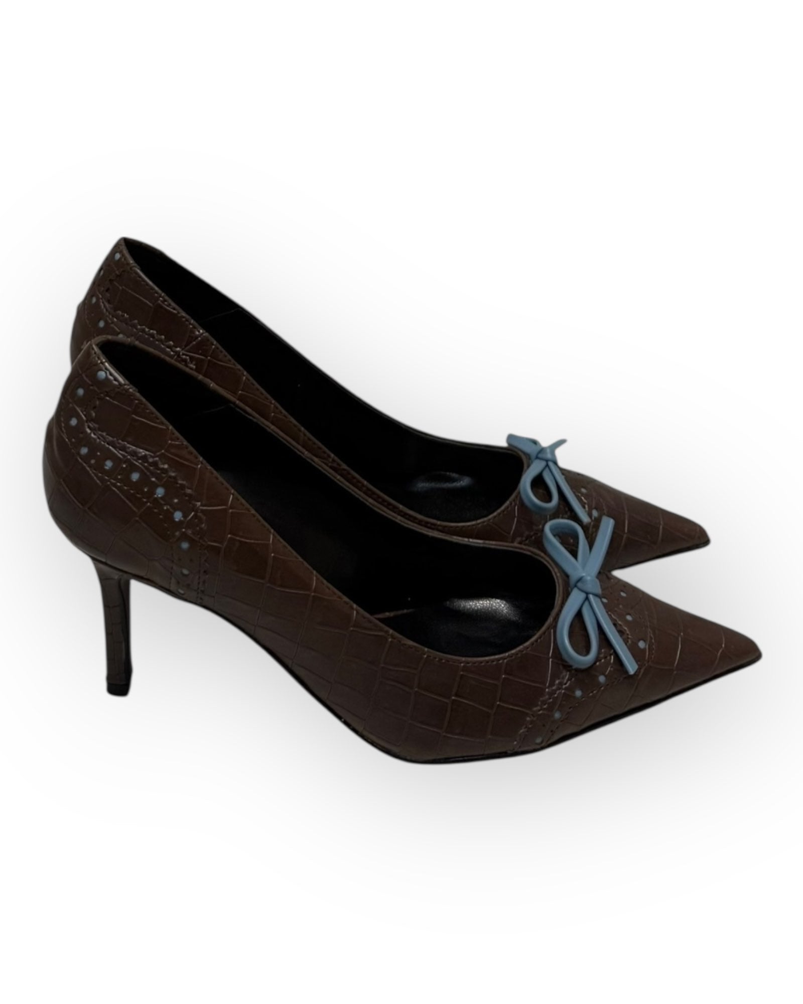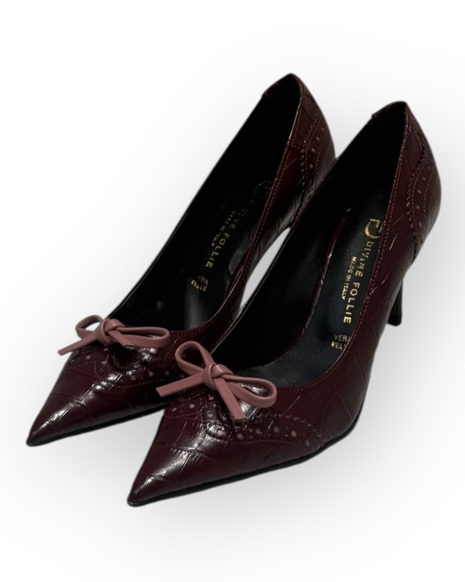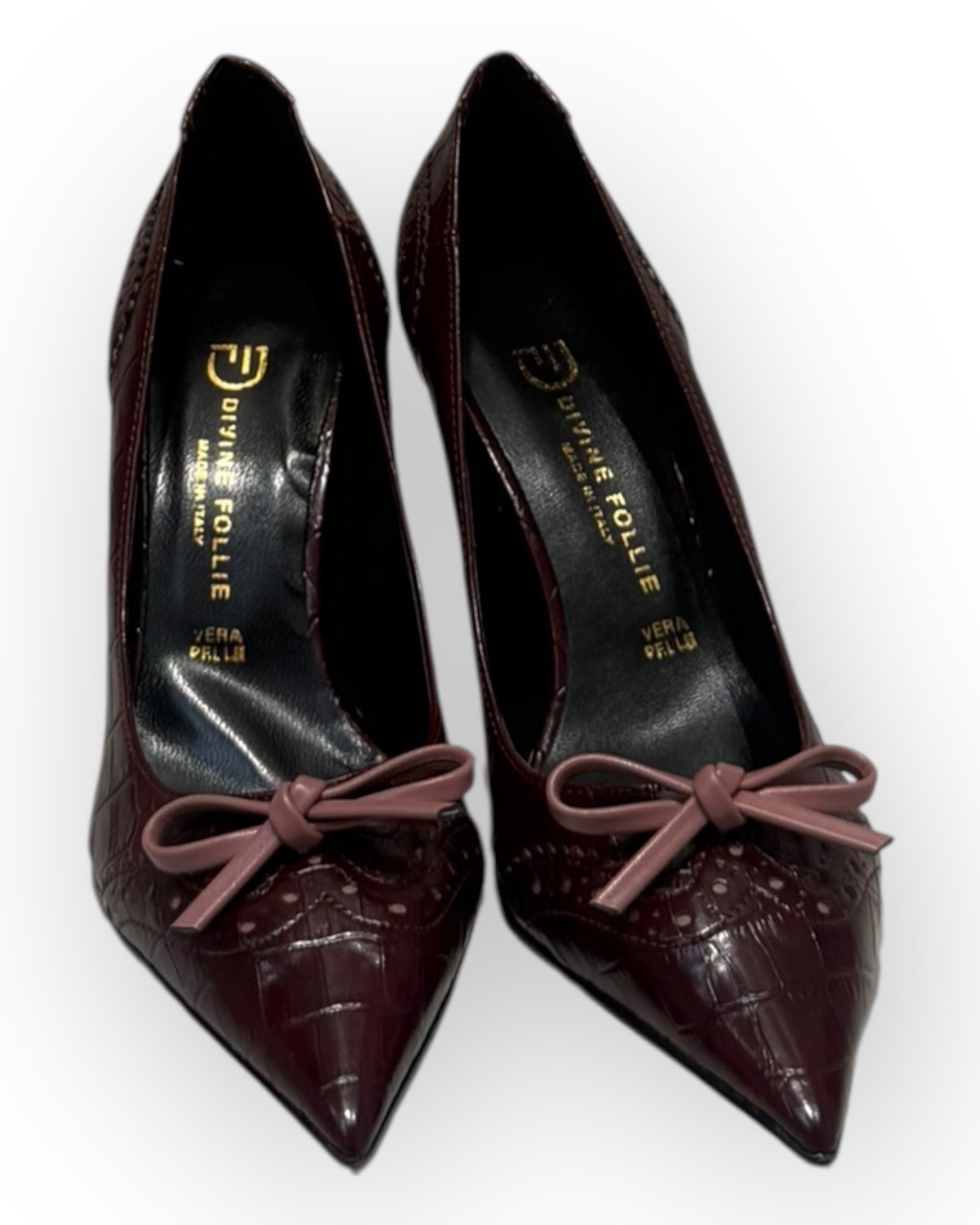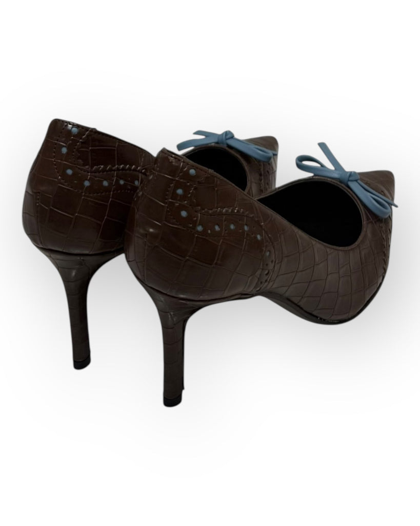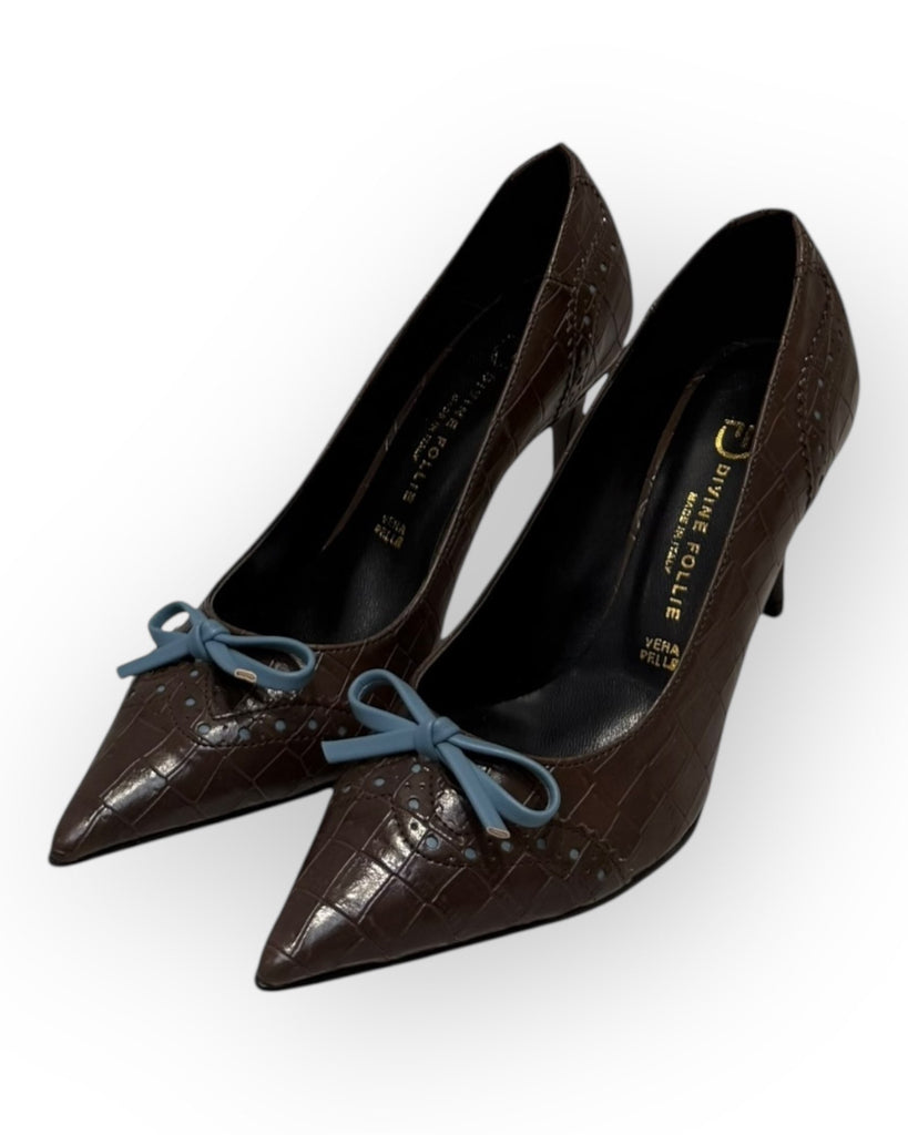 TACCO CON FIOCCO SUL DAVANTI, MARTELLATA, BICOLOR ,IN VERA PELLE.