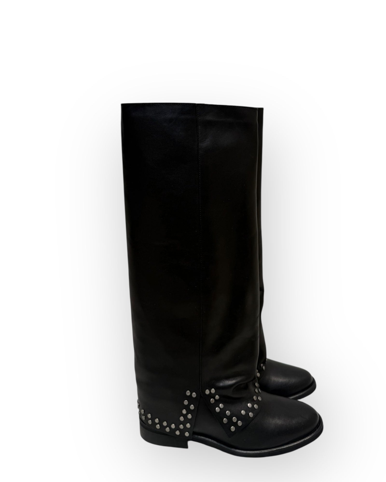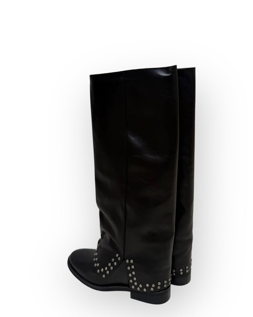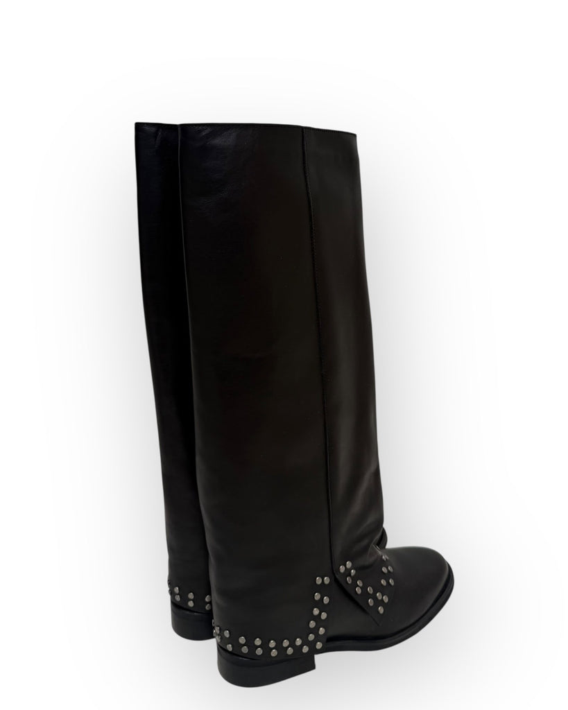STIVALE CON SVOLTONE, E BORCHIE,ALTEZZA POLPACCIO IN VERA PELLE ALTEZZA TACCO:3,5