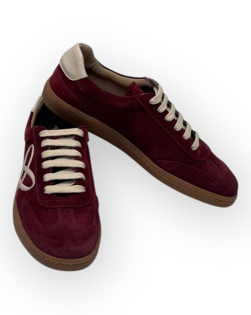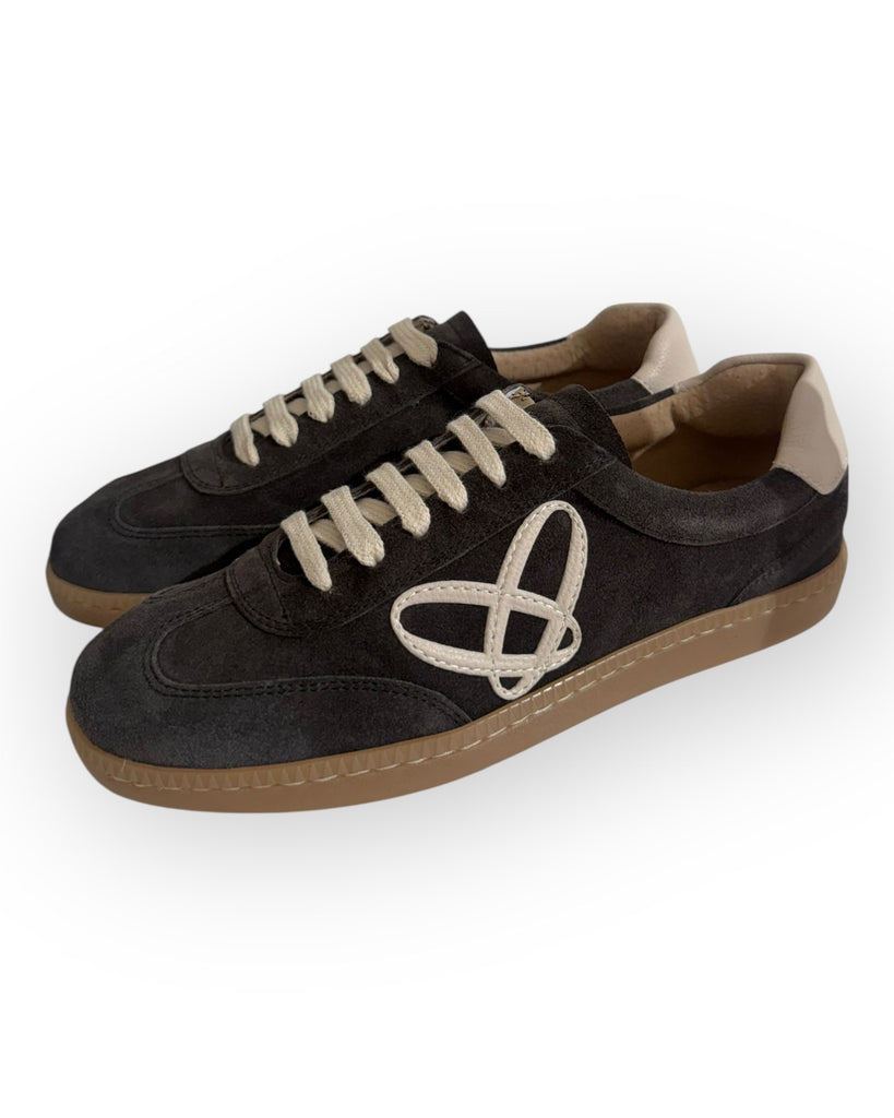 Sneakers in camoscio, modello con suola in gomma e logo laterale. Chiusura con lacci beige. Calzata regolare.
