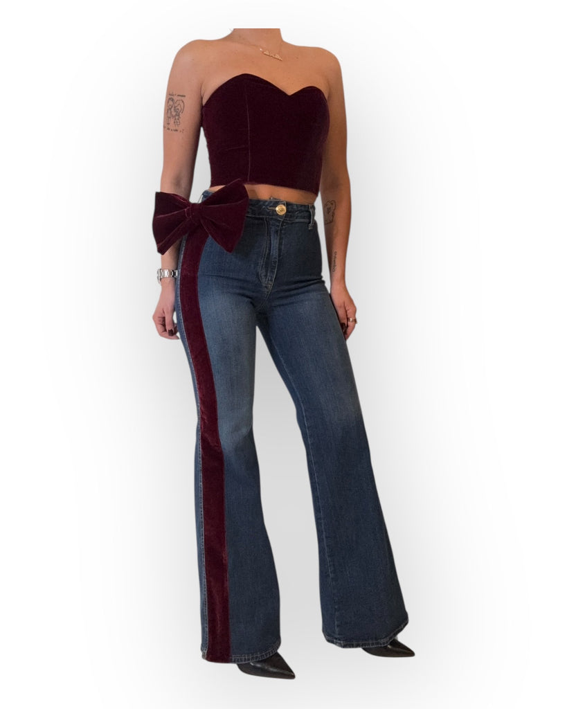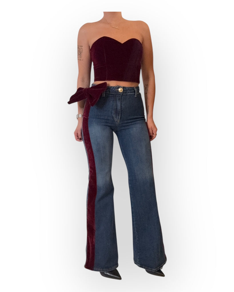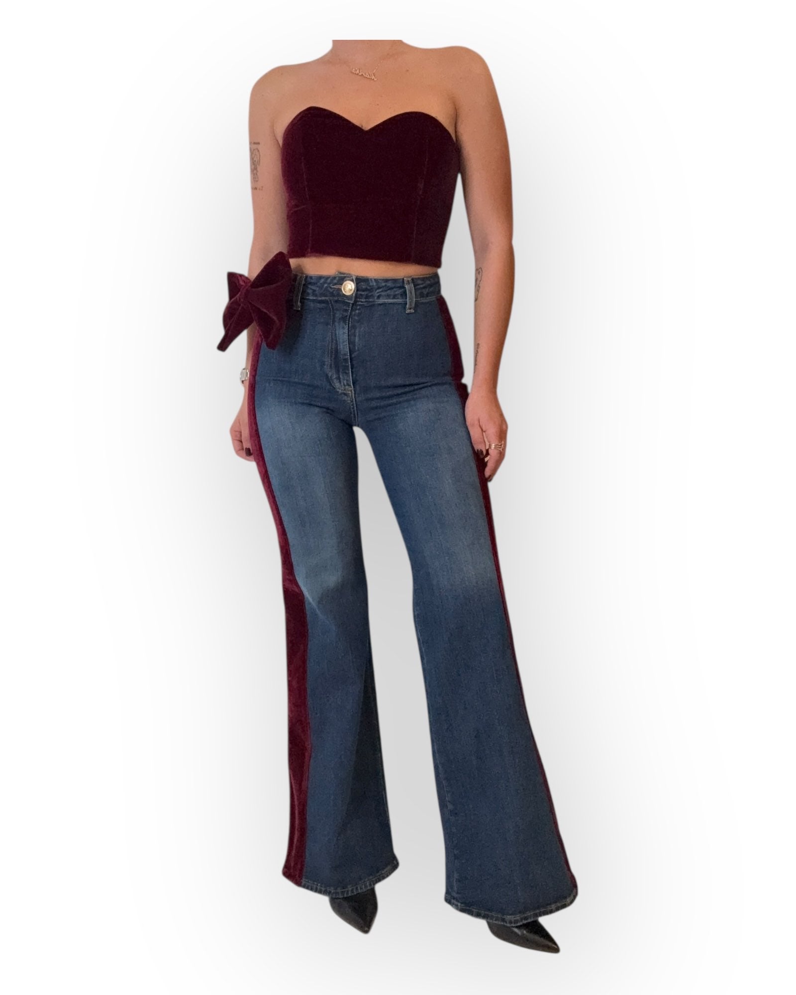 JEANS CON BANDE IN VELLUTO E FICCO.