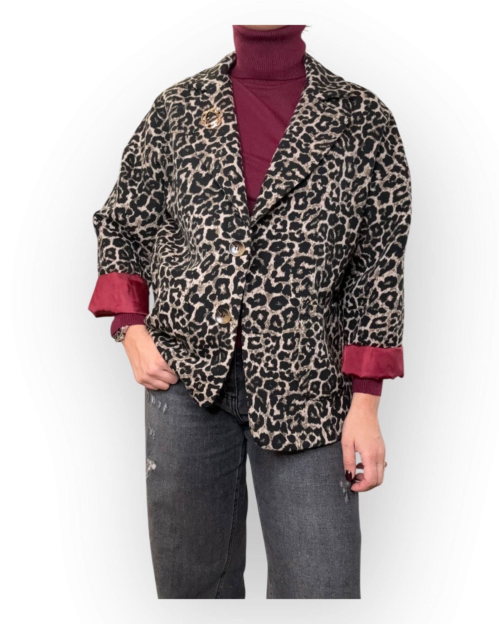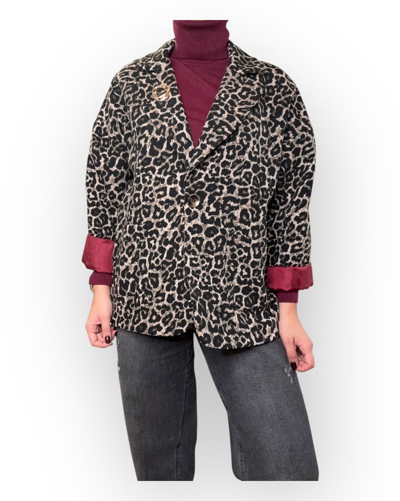 GIACCA OVER SUSY MIX MACULATA CON FODERA INTERNA IN CONTRASTO